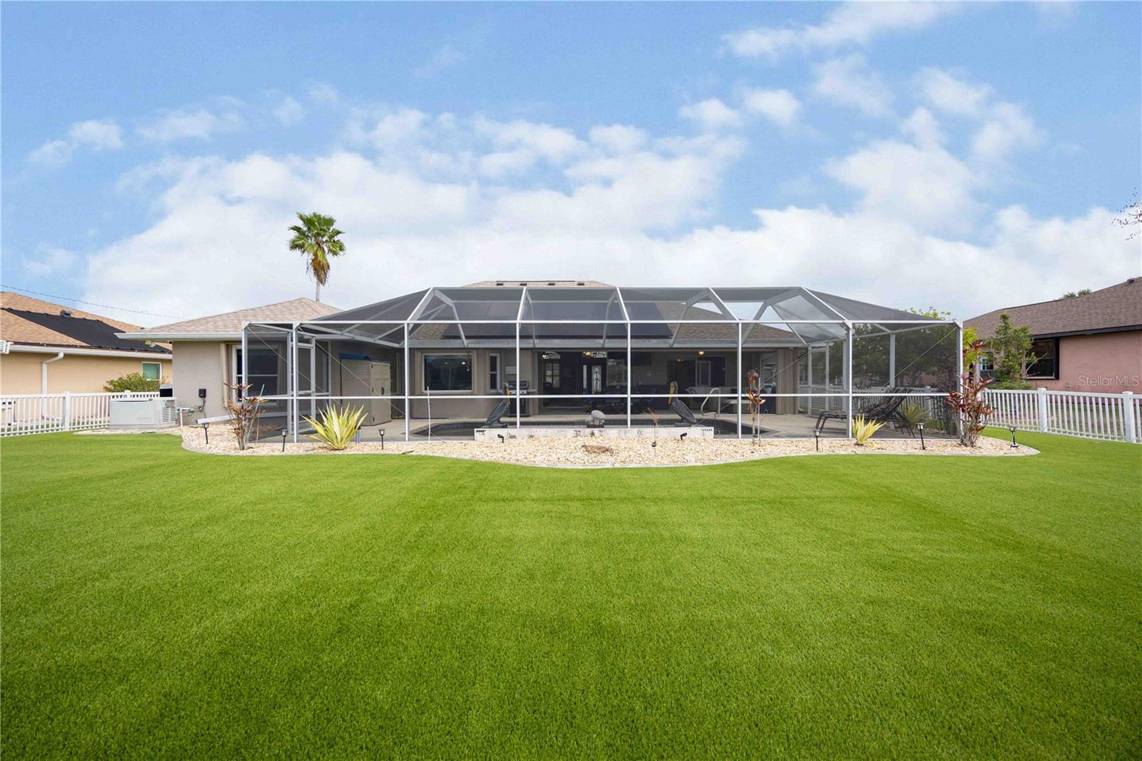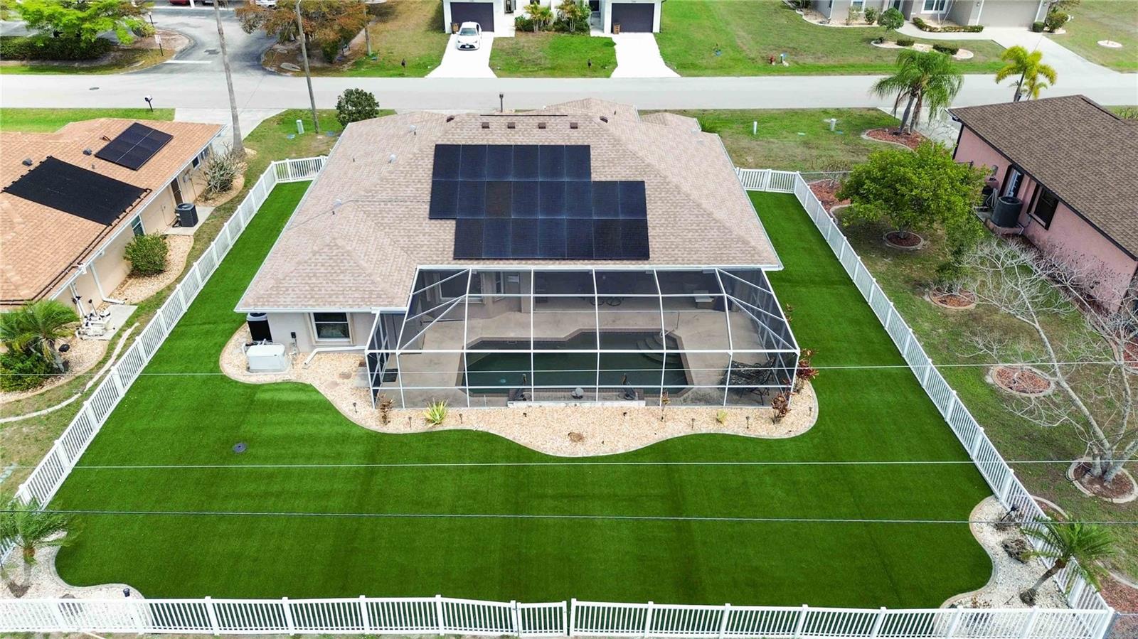 This beautifully upgraded 3-bedroom, 2-bath home in the highly desirable Burnt Store Meadows community offers the perfect blend of comfort, convenience, and privacy—please read on so you don’t miss all the amazing upgrades it has! The home features 13-foot ceilings, an open split floor plan, and new luxury vinyl flooring throughout, creating a bright and spacious feel from the moment you walk in. Major updates provide peace of mind and modern functionality, including a NEW ROOF (2023), UPDATED ENERGY EFFICIENT WINDOWS, the whole home is SOLAR POWERED which offers a huge savings over electric costs with a low monthly payment of only $124(that will never go up over the next 30 years), a WHOLE HOUSE GENERATOR (22kW Generac generator), and ACCORDION STYLE STORM SHUTTERS protecting all windows and doors, including the lanai. With the addition of the fact that it’s connected to public water and sewer and also in a NO FLOOD ZONE, this is an amazing home all around. The kitchen is well appointed with granite countertops and flows seamlessly into the living and dining spaces with plenty of seating, making it ideal for both entertaining and everyday living. The large primary suite offers two walk-in closets with custom shelving, a spacious master bath with garden tub, and direct access to the lanai and pool area. Step outside to your private backyard retreat featuring a HEATED SALT WATER POOL with fountain, a spacious lanai, and BRAND NEW ARTIFICIAL SOD installed in 2026 for a clean, low-maintenance yard. The property backs up to a large protected greenbelt that cannot be built on, providing exceptional privacy and peaceful views. Additional features include a WHOLE HOUSE SOUND SYTEM with speakers extending to the lanai and six exterior security cameras with a full security system. This home combines thoughtful upgrades, modern design, and privacy in a fantastic location close to shopping, dining, and everyday amenities. We invite you to come by for a no-obligation tour to see for yourself if this is the perfect home for you.