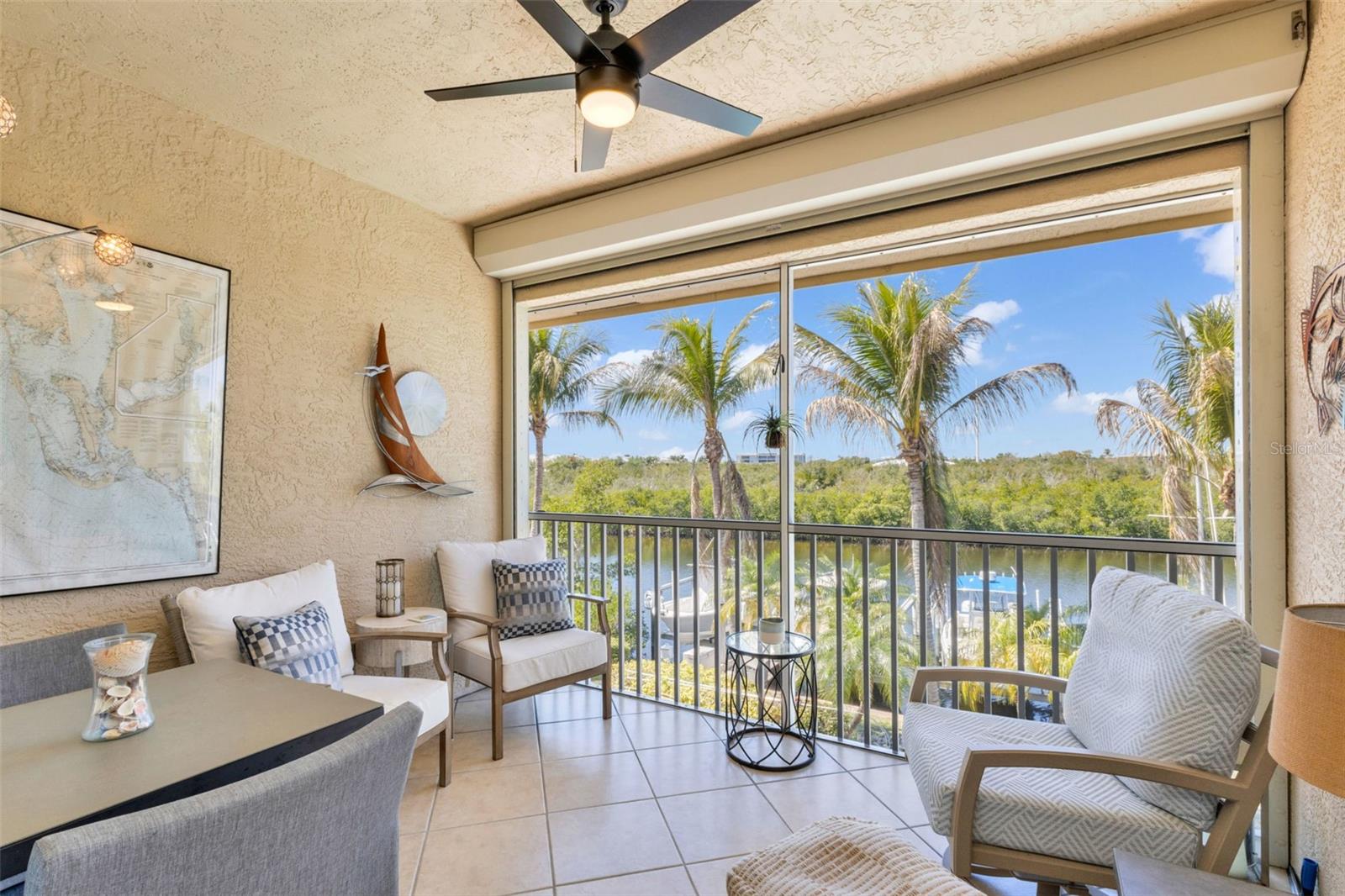 Waterfront condo with garage and boat lift in Punta Gorda Isles with low HOA fees! If you’ve been dreaming about having your boat right outside your door, this one makes it easy. This 2nd-floor, 2-bedroom, 2-bath + flex room condo includes a deeded dock with a 10,000 lb lift, giving you access to Charlotte Harbor through Buckley’s Pass. Whether it’s a morning cruise or a sunset ride, you’re ready to go. Inside, an open layout, freshly painted neutral tones, and natural light create a comfortable, inviting feel. Granite countertops, solid wood cabinetry, stainless steel appliances, and a breakfast bar make the kitchen both functional and easy to enjoy. Just beyond, the dining area connects to the family room, where a coffered ceiling adds a touch of character. A split-bedroom design gives everyone their own space, while a flexible bonus room, currently set up as a third bedroom, works well for guests, a home office, or whatever you need. In the primary suite, you’ll find a tray ceiling with crown detail, dual sinks, a walk-in tiled shower, and two closets, one built-in and one walk-in. The guest bedroom and bath are well-sized and thoughtfully placed. Open the sliding doors to the lanai and take in the peaceful water views. Western exposure brings in beautiful sunsets, and with a nature preserve across the water, the setting stays peaceful and private. Hurricane protection is already in place with accordion shutters and an electric shutter on the lanai, and a one-car garage adds extra convenience. HVAC & Hot Water Heater were replaced in 2017. The complex also features a new roof (2025), and the pool was resurfaced in 2026. This is a SMOKE-FREE community that allows one small pet. Set within Punta Gorda Isles, known for its winding canals and easy boating access, you’ll enjoy that laid-back coastal feel the area is loved for. Spend the day on the water, then head just minutes away to waterfront dining, Fishermen’s Village, local shops, or the weekly farmer’s market. Easy access to I-75 makes getting to Sarasota or Fort Myers simple when you need it. Morning coffee on the lanai, and sunsets that never get old, this is the kind of place that makes it feel like you’re on vacation every day!