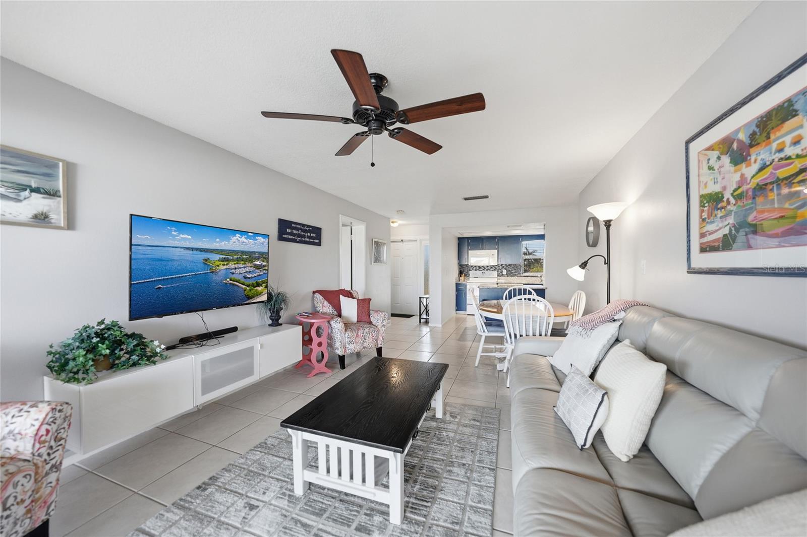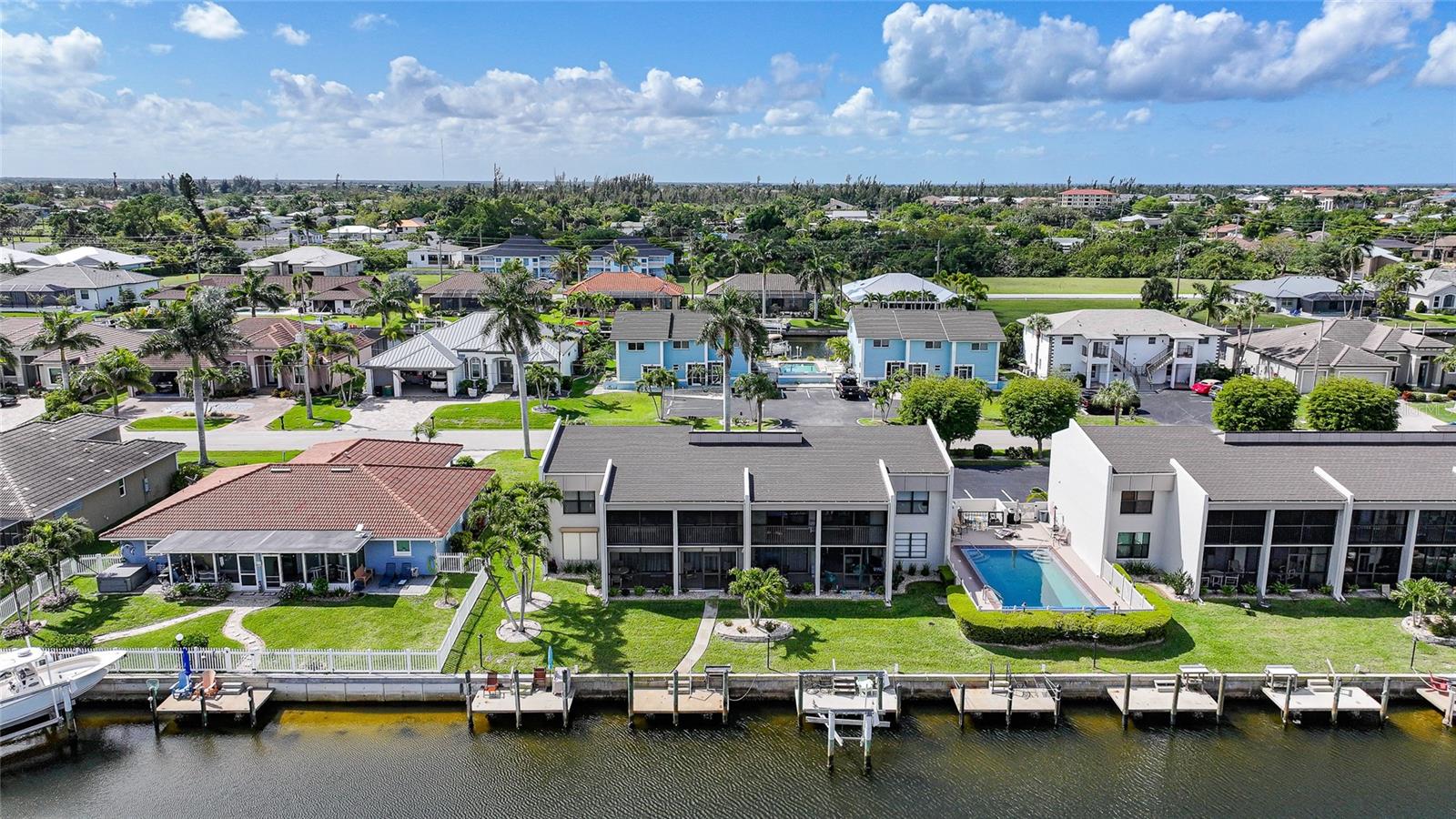 Welcome to the desirable deed restricted community of Punta Gorda Isles! This TURNKEY TOP FLOOR 2 bedroom 2 bath condo comes with your own private, deeded dock, with a 6,000 lb boat lift, perfect for embracing the Florida boating lifestyle. Inside, you’ll find a bright, open floor plan with tile and vinyl flooring throughout. The spacious living room flows seamlessly onto an oversized screened lanai, creating the ideal space for indoor-outdoor living while enjoying peaceful canal views. The kitchen is both functional and inviting, featuring granite countertops, tile backsplash, white appliances, and a breakfast bar—perfect for casual dining or entertaining. Designed with privacy in mind, the split floor plan offers a comfortable retreat for both owners and guests. The primary suite includes two built-in closets, an en-suite bathroom with a walk-in shower, and private access to the lanai with beautiful water views. The large guest bedroom also features two built-in closets and is located near the guest bathroom, which includes a tub/shower combination. A hallway linen closet adds extra storage convenience. Step outside to your screened lanai overlooking the canal—an ideal spot for morning coffee or evening relaxation. Boating enthusiasts will appreciate direct access to Charlotte Harbor and the Gulf of Mexico right from the private dock and lift. Additional highlights include: New water heater (2025), 2024 metal roof, 2024 building exterior paint, and two assigned parking spaces come with the condo! Situated on a quiet cul-de-sac street, this well maintained complex offers a large heated community pool and offers convenient access to shopping, dining, medical, entertainment, Fishermen's Village, community parks, and so much more.