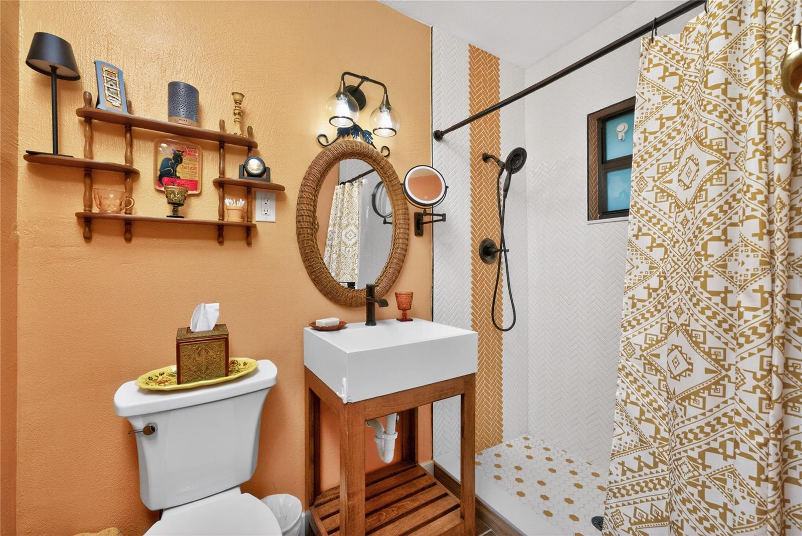 This charming cottage is nestled in the alluring Historic District of Punta Gorda, which offers the kind of walkable, coastal lifestyle that defines Southwest Florida living. Just a short stroll or bike ride takes you to downtown or Fishermans village, where you will discover great local restaurants, boutiques, vibrant farmers markets, and the scenic waterfront at Gilchrist Park. Here you can enjoy pickleball, tennis, fishing, playgrounds, and sunset walks along the harborfront esplanade. From the moment you arrive you will be embraced by the pleasing mature landscape that envelopes the home and the thoughtfully designed eco-friendly landscape, complete with decorative rock and curbing for low-maintenance appeal. Located on an oversized corner lot with nearly a quarter acre of land, there is plenty of space to create your outdoor sanctuary. This block home boasts a freshly painted exterior, newer impact glass windows, new entry doors, A/C, water heater, new electrical & complete pex repipe throughout ( 2023- including main line to meter). Inside, the home feels warm and cohesive with handsome wood-look plank tile flooring throughout. Abundant windows help fill the space with natural light, enhancing the bright, airy feel in every room. The kitchen is both functional and inviting, featuring stone countertops and complimentary backsplash, newer appliances, white cabinetry, and a window overlooking the private backyard. A breakfast bar opens seamlessly to the dining area, creating an easy flow for everyday living or casual entertaining. The primary suite features a stylish barn door leading to an updated ensuite bath with a freestanding vanity and a walk-in shower finished with striking herringbone tile. The second bedroom is filled with natural light from an expansive window overlooking the majestic tree in the front yard, while the guest bathroom continues the home’s updated aesthetic with its own freestanding vanity and beautifully tiled tub. Out back, the fenced yard provides a private retreat with plenty of room to relax or entertain. The carport has been screened-in and transformed into a comfortable sitting area, offering flexible living space and can be converted back to a car port. An expansive storage room provides great storage and space for the tinkerer, and the utility area is conveniently located just beyond. A transferable group insurance flood policy is available through the end of 2027, with coverage of $87,200.