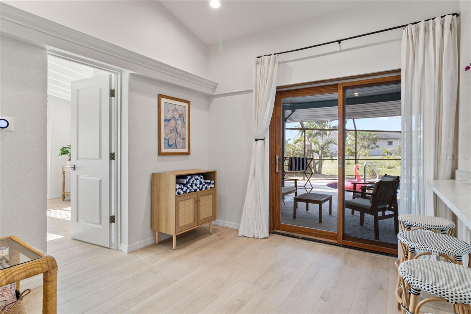 Under contract-accepting backup offers. Located just minutes from the heart of Punta Gorda, this beautifully remodeled 3-bedroom, 2-bath pool home sits on an oversized lot and blends comfort, style, and peace of mind, complete with a newer roof. Enjoy access to a private boat ramp just seconds away (small fee required) perfect for getting on the water with ease. The bright, open split-floor plan showcases soaring ceilings, abundant natural light, neutral finishes, and tile flooring throughout, creating a clean and airy feel. The kitchen features shaker-style wood cabinetry, ample counter space, and convenient bar seating, ideal for casual dining or entertaining. The spacious primary suite is a true retreat, offering multiple windows and a private en-suite bath highlighted by a stunning stained-glass window. Two additional bedrooms are thoughtfully positioned on the opposite side of the home, providing privacy for guests along with a full bath and large walk-in shower. Step outside to your own backyard oasis. The covered lanai and screened pool area create the perfect setting to relax or host gatherings year-round. Additional features include an indoor laundry room, newer washer and dryer, and a newer pool heater for added efficiency. Enjoy close proximity to St. Andrews South Golf Club, Fishermen’s Village, and Punta Gorda Yacht Club, along with nearby waterfront access for kayaking, paddleboarding, and boating. With easy access to the historic district, waterfront parks, dining, festivals, fishing, and Southwest Florida’s Gulf beaches, this home delivers the lifestyle you’ve been looking for.