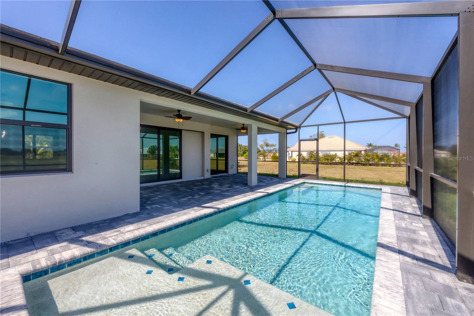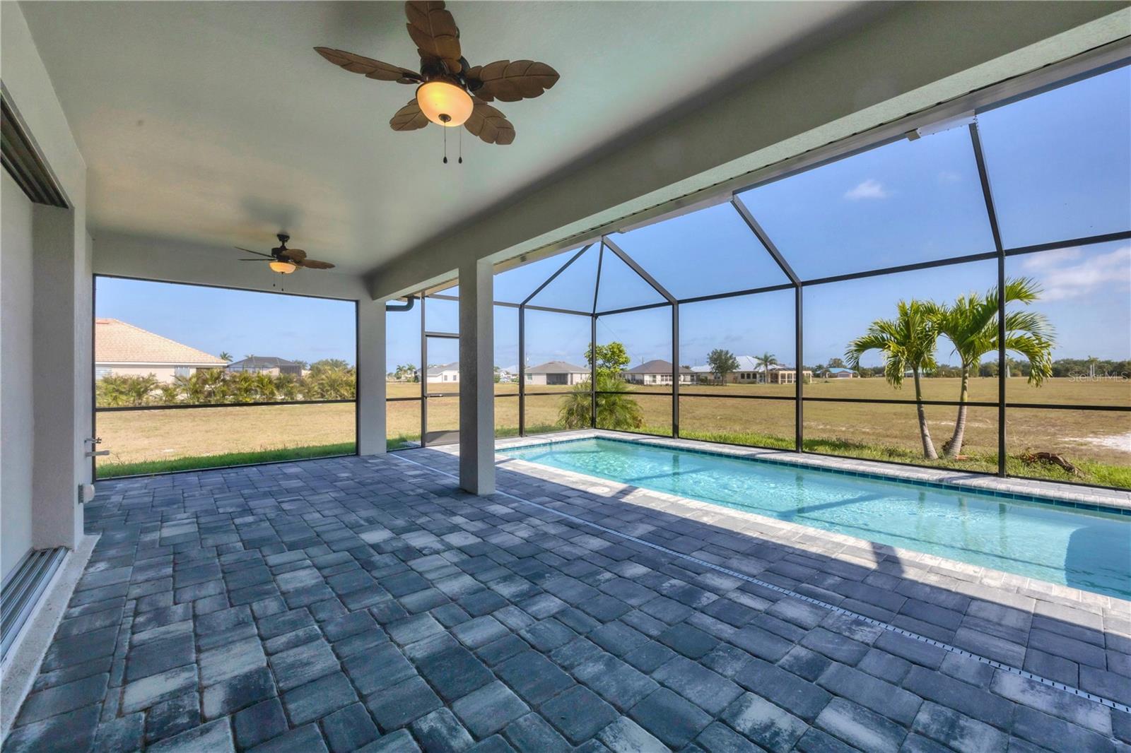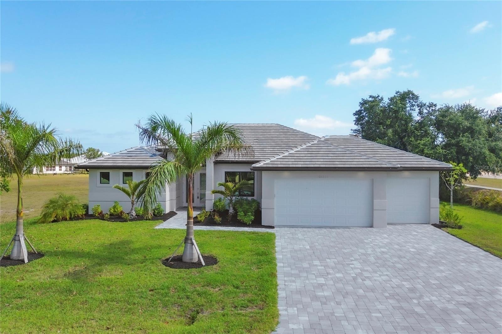 Ready to move in pool home on an oversized X & D zone corner lot, offers 2,112 sq. ft of living area, with 3 bedrooms, den, large master bath, a pool bath & 3 car garage. 9’-4’’ high ceilings throughout the home with 10’-4’’ in the living, kitchen, and den. Tray ceilings in the master bedroom, din-ing room and the living room with accent beams, porcelain tile floor 8 feet doors throughout the house. Wood cabinets with soft closing doors & drawers, 42” wall cabinets in the kitchen, quartz countertops, stainless-steel kitchen appliance package. Two large guest bed-rooms, a master suite with a large walk-in closet and a sliding glass door into the pool area. Master bath with double sink, private water closet & a large shower. Tile roof, impact windows and doors, paver driveway & Lush landscape with irrigation system. It is in the prestigious Burnt Store Lakes community, surrounded by lakes, it has a park, picnic pavilion, & a kayak launch to Charlotte Harbor. It is next to the famous Burnt Store Marina that offers a safe harbor marina, golf & dining.