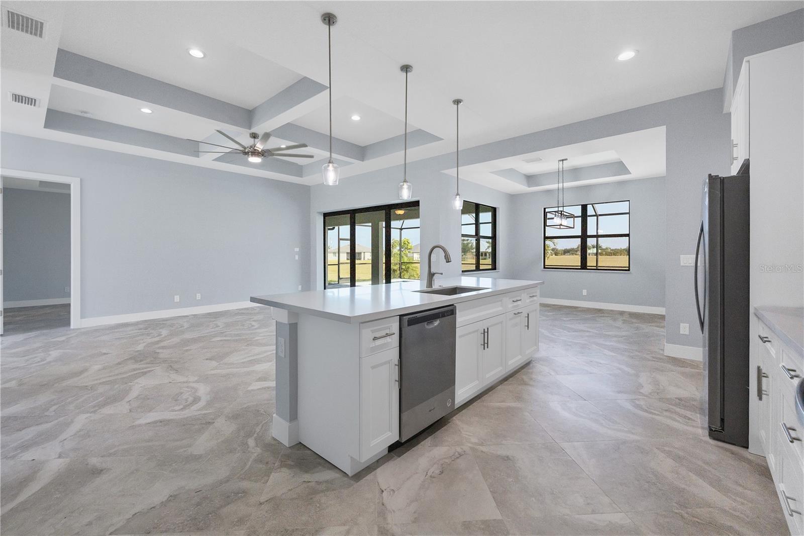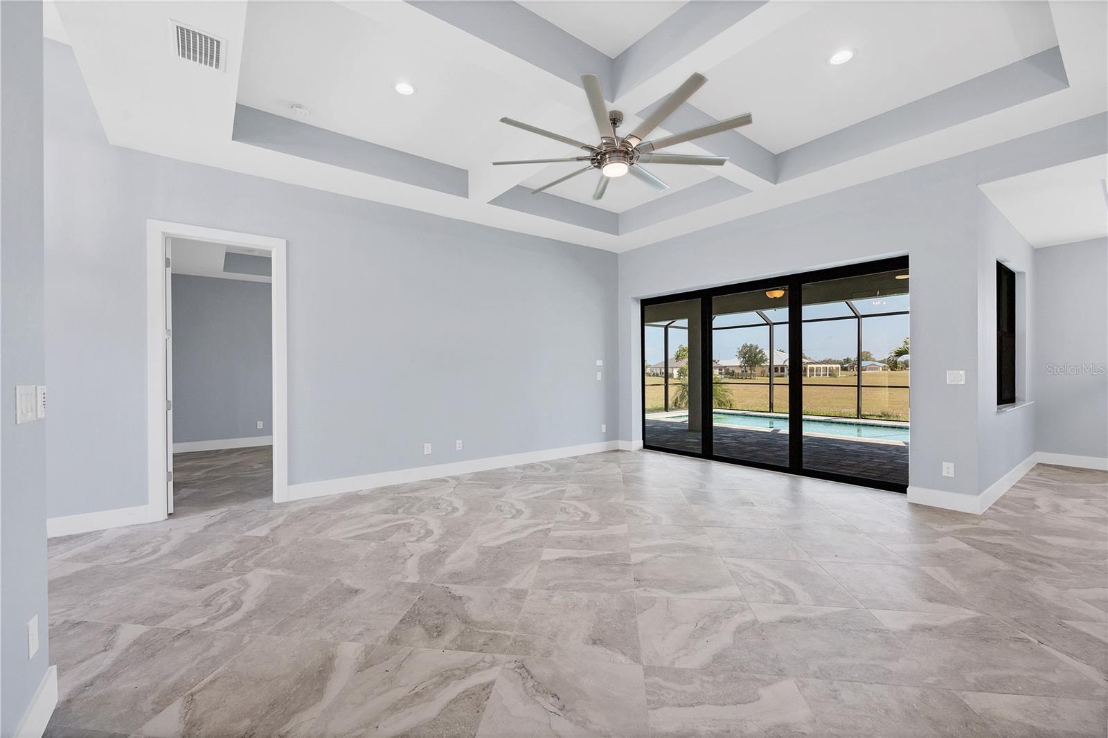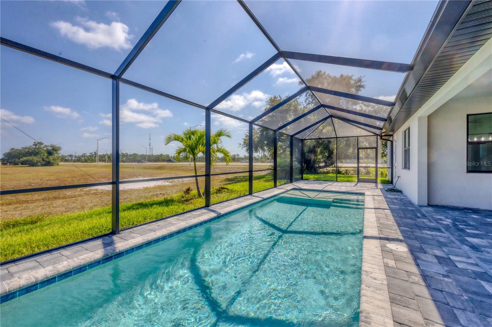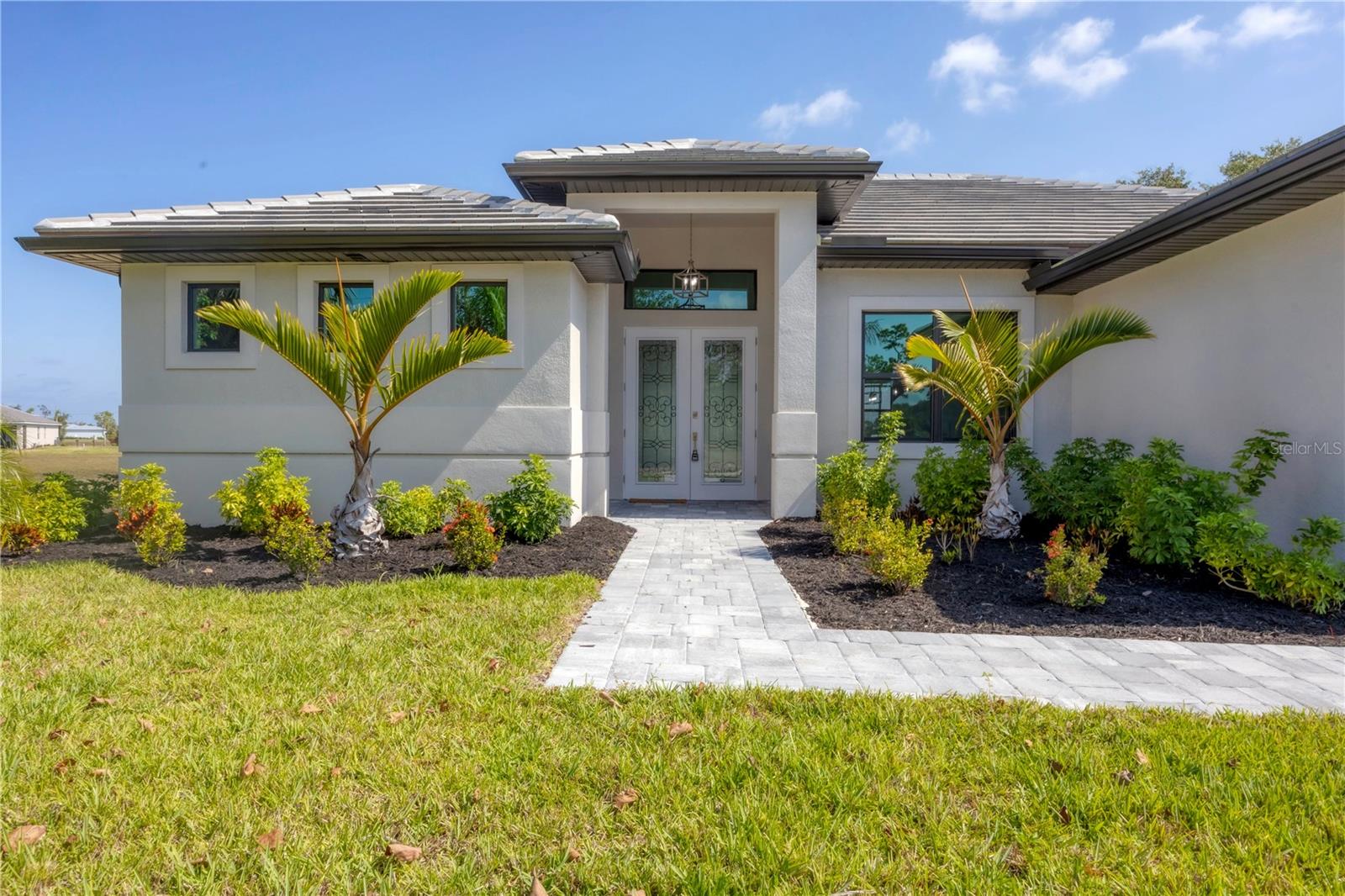 Ready to move in pool home on an oversized X & D zone corner lot, offers 2,112 sq. ft of living area, with 3 bedrooms, den, large master bath, a pool bath & 3 car garage. 9’-4’’ high ceilings throughout the home with 10’-4’’ in the living, kitchen, and den. Tray ceilings in the master bedroom, din-ing room and the living room with accent beams, porcelain tile floor 8 feet doors throughout the house. Wood cabinets with soft closing doors & drawers, 42” wall cabinets in the kitchen, quartz countertops, stainless-steel kitchen appliance package. Two large guest bed-rooms, a master suite with a large walk-in closet and a sliding glass door into the pool area. Master bath with double sink, private water closet & a large shower. Tile roof, impact windows and doors, paver driveway & Lush landscape with irrigation system. It is in the prestigious Burnt Store Lakes community, surrounded by lakes, it has a park, picnic pavilion, & a kayak launch to Charlotte Harbor. It is next to the famous Burnt Store Marina that offers a safe harbor marina, golf & dining.