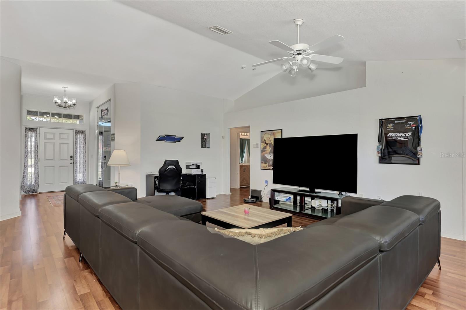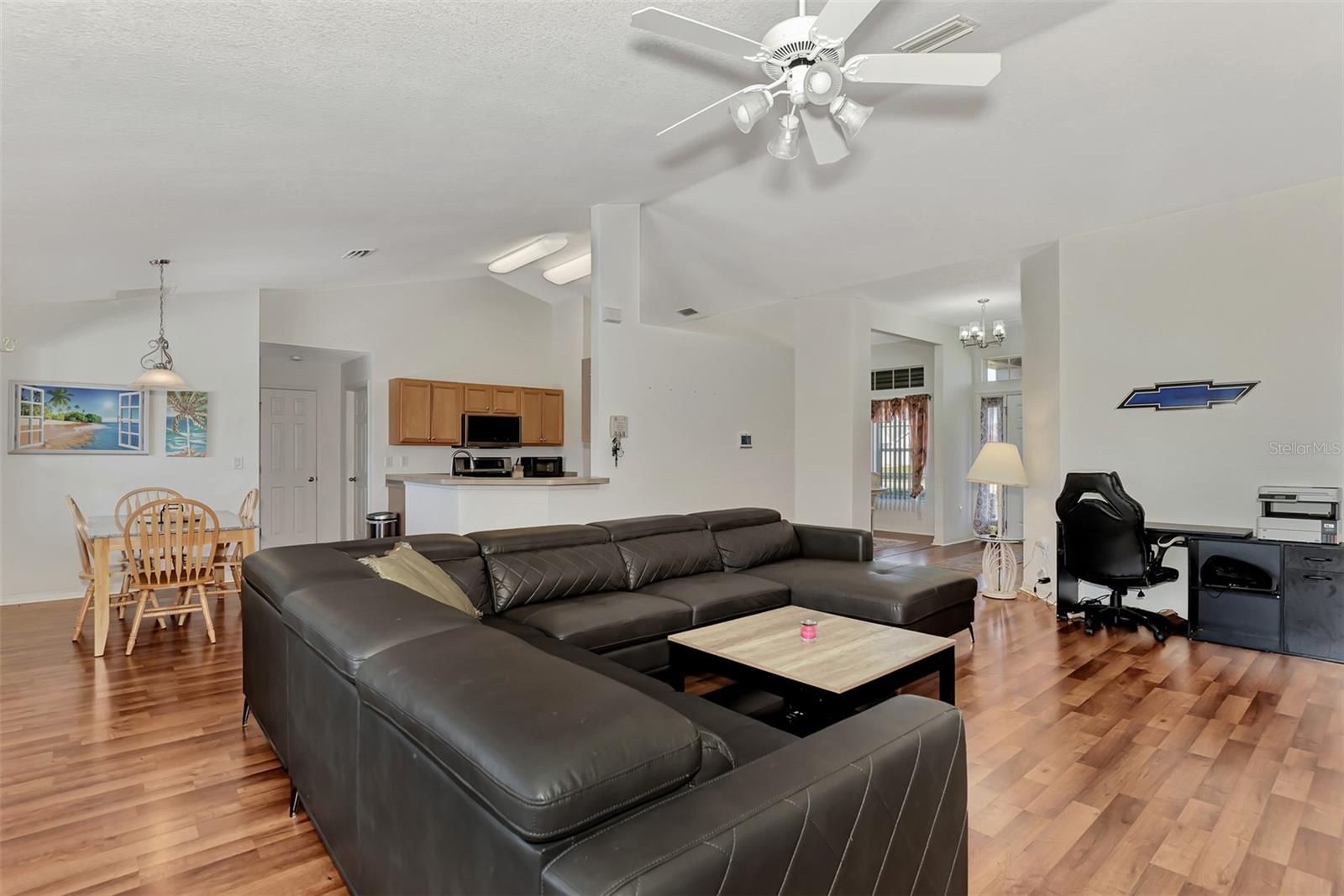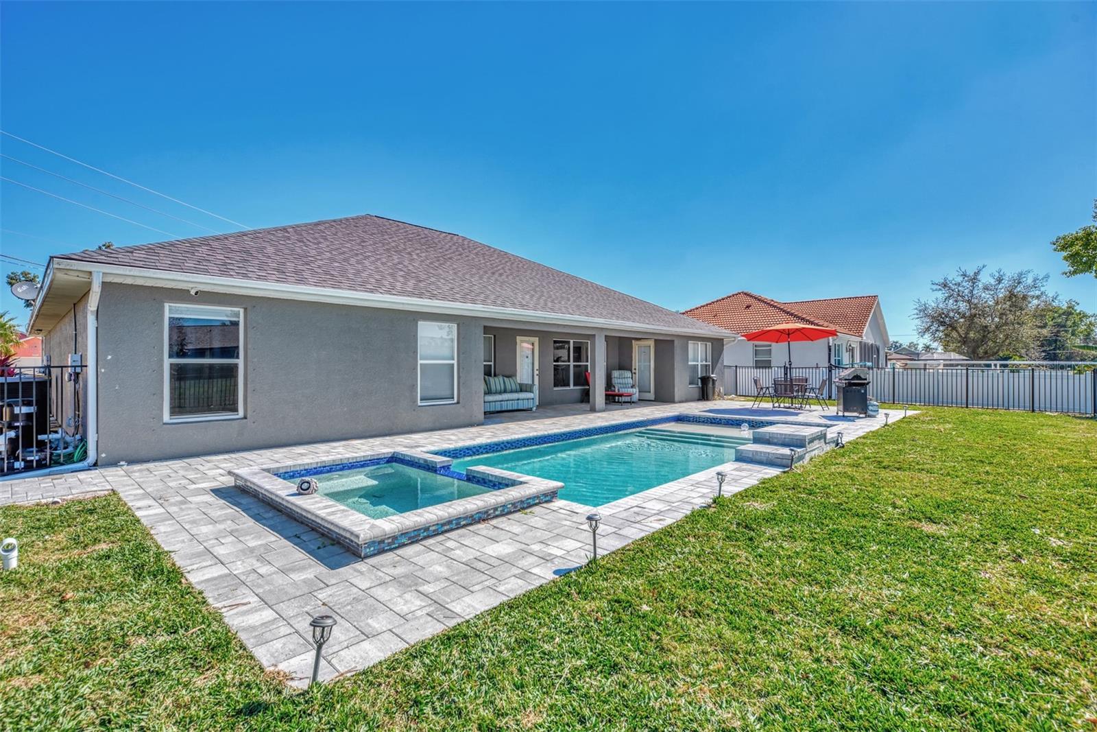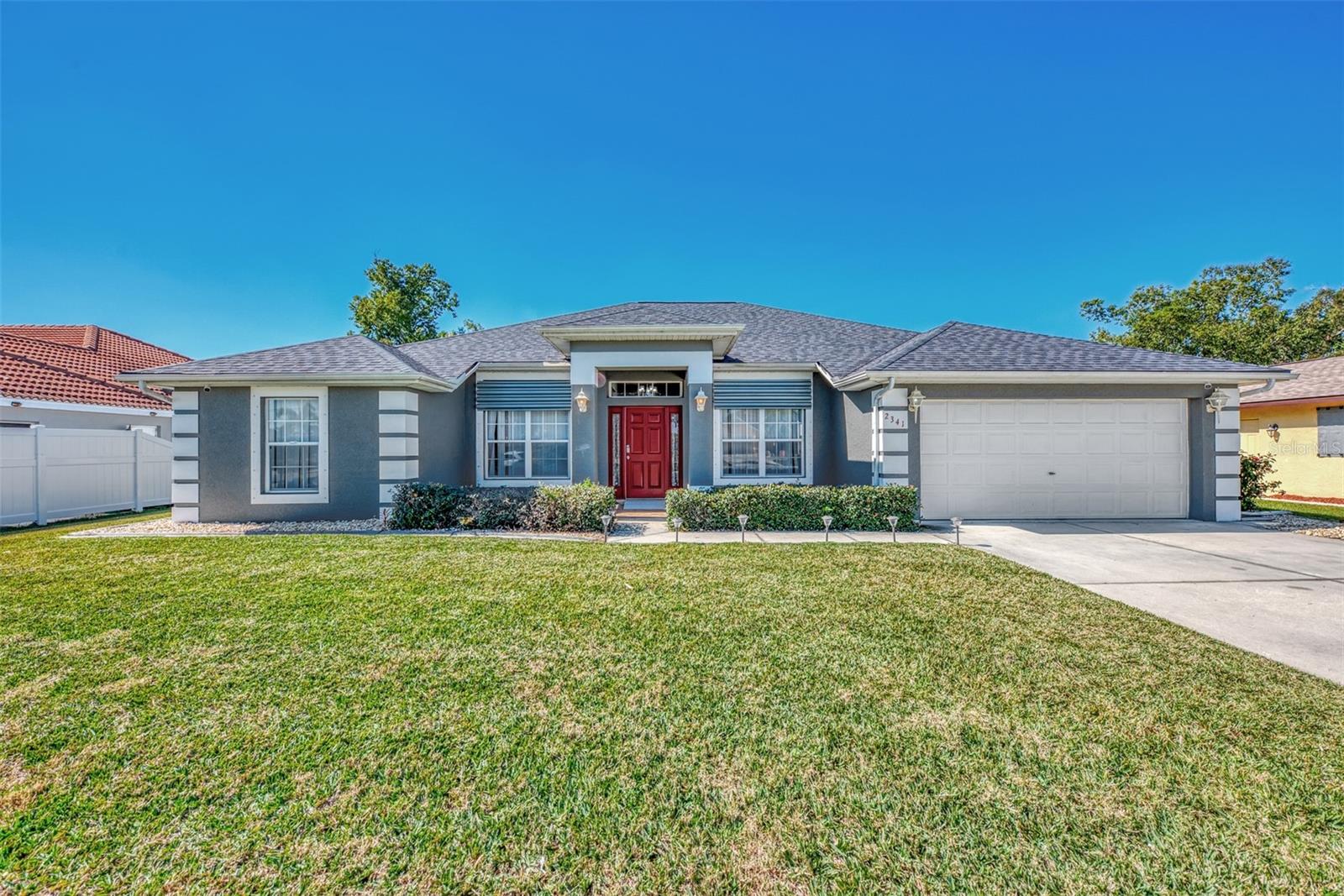 **Lowest Priced 4 Bedroom Pool Home Built After 2000 in Deep Creek ** This expansive, Beautiful, highly desirable, 4-bedroom plus Den, 2-bathroom, split floor plan home offers the perfect blend of comfort and endless entertainment options. As you step through the front door, you're greeted by a spacious open floor plan that seamlessly connects the living, dining, and kitchen areas. The high ceilings and large windows flood the space with natural light, creating an inviting atmosphere for gatherings and everyday living. The heart of this home is a large well appointed kitchen, outfitted with brand new stainless steel appliances, warm oak colored cabinets that are accented with perfectly matching countertops and a raised peninsula with bar seating for cooking and entertaining. Adjacent to the kitchen is a large family room providing ample space. Make sure to take note of the gorgeous brand new wood plank like flooring that flows through the main living spaces. A highlight of this home is the dedicated office/den/movie area, Equipped with seamless glass french doors, this space is sure to be the envy of all your friends. Tucked away to the right side of the home is a large master suite, featuring a spacious bedroom with private access to the pool, a great en-suite bathroom with dual vanities and two walk-in closets. To the left side of the home you will find three additional bedrooms offering plenty of space for family or guests, while another stylish bathroom ensures convenience for all. When you are ready to just get away from it all simply step outside into your own private paradise. Here an amazing, sparkling heated pool and luxurious spa await your entrance. Surrounded by an expansive lanai and pavered deck with lush landscaping, this completely fenced backyard oasis is a dream for outdoor entertaining and enjoying the beautiful Florida weather year-round. So don't let your dream home become someone else's address. Setup your showing today!