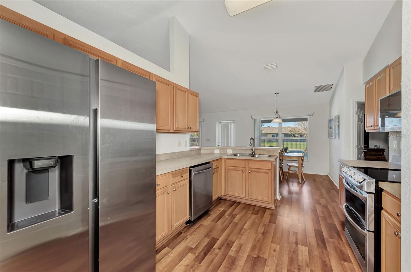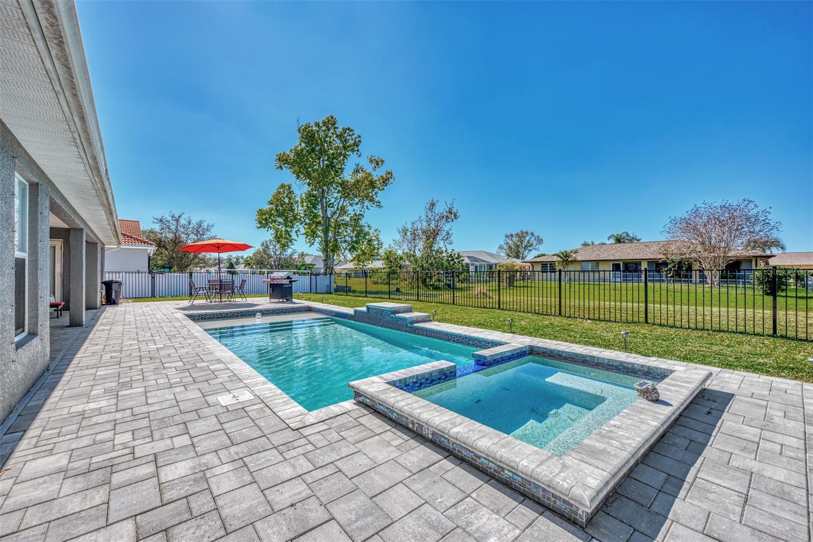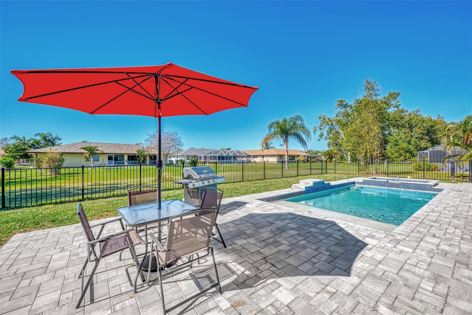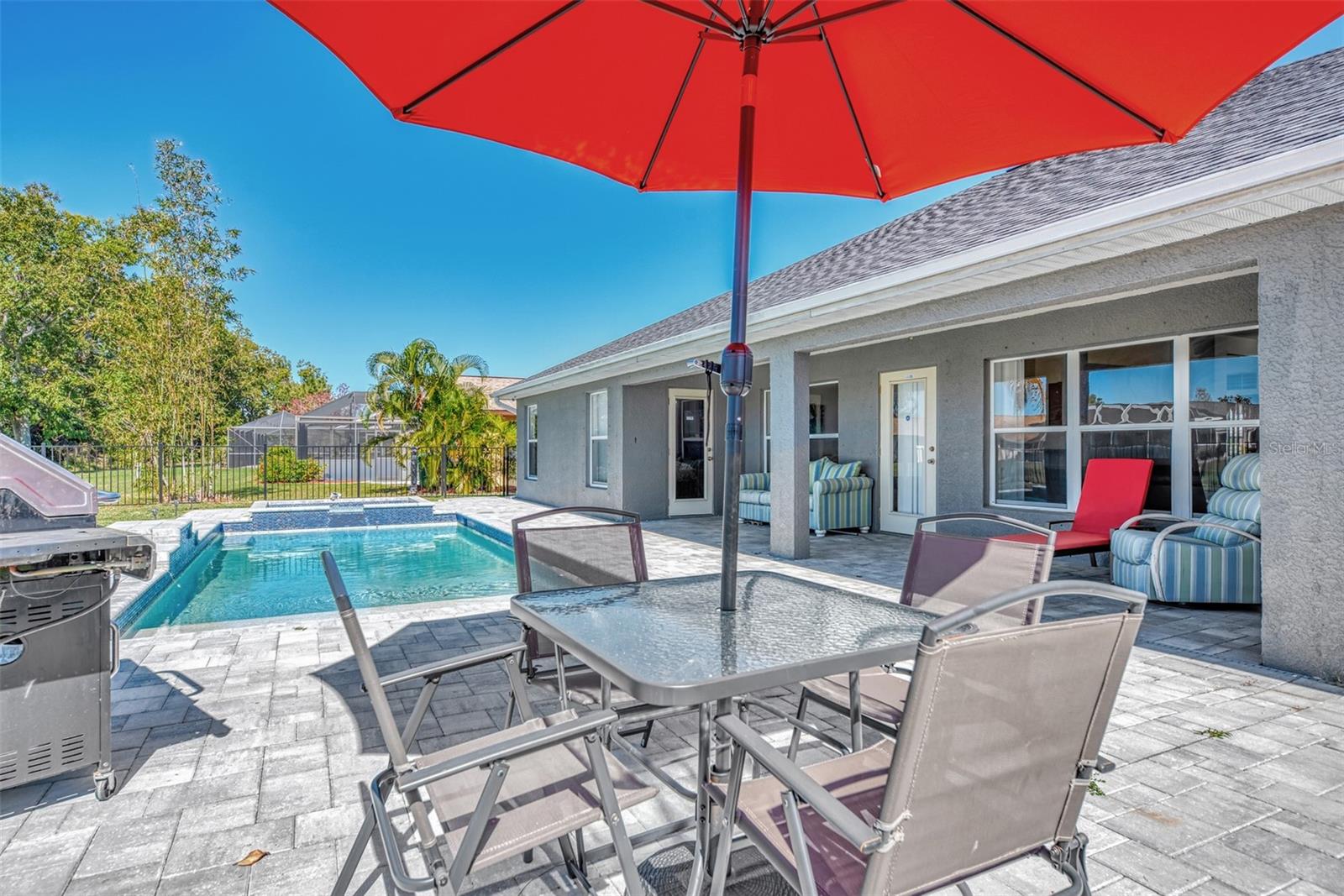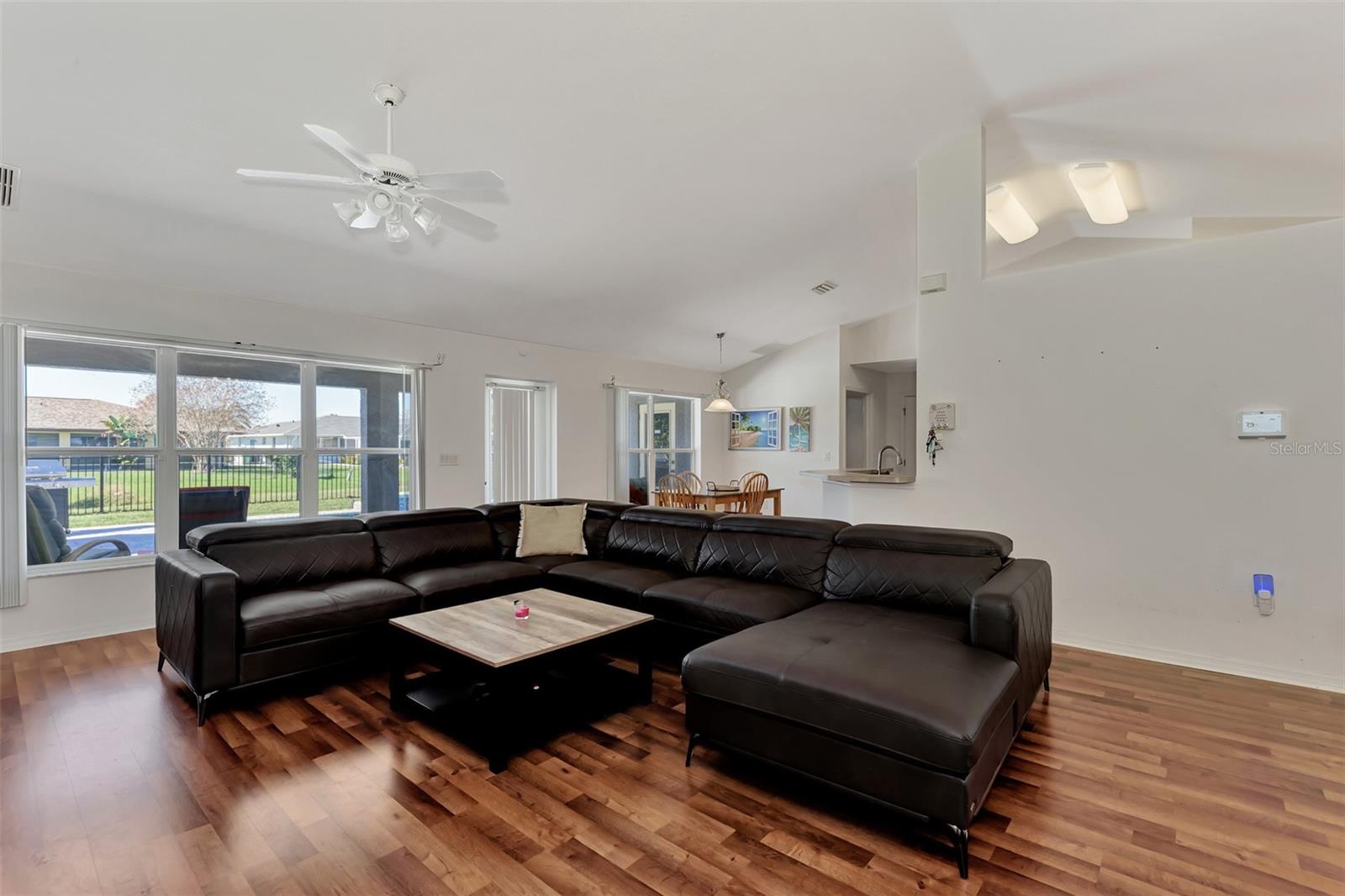 **Lowest Priced 4 Bedroom Pool Home Built After 2000 in Deep Creek ** This expansive, Beautiful, highly desirable, 4-bedroom plus Den, 2-bathroom, split floor plan home offers the perfect blend of comfort and endless entertainment options. As you step through the front door, you're greeted by a spacious open floor plan that seamlessly connects the living, dining, and kitchen areas. The high ceilings and large windows flood the space with natural light, creating an inviting atmosphere for gatherings and everyday living. The heart of this home is a large well appointed kitchen, outfitted with brand new stainless steel appliances, warm oak colored cabinets that are accented with perfectly matching countertops and a raised peninsula with bar seating for cooking and entertaining. Adjacent to the kitchen is a large family room providing ample space. Make sure to take note of the gorgeous brand new wood plank like flooring that flows through the main living spaces. A highlight of this home is the dedicated office/den/movie area, Equipped with seamless glass french doors, this space is sure to be the envy of all your friends. Tucked away to the right side of the home is a large master suite, featuring a spacious bedroom with private access to the pool, a great en-suite bathroom with dual vanities and two walk-in closets. To the left side of the home you will find three additional bedrooms offering plenty of space for family or guests, while another stylish bathroom ensures convenience for all. When you are ready to just get away from it all simply step outside into your own private paradise. Here an amazing, sparkling heated pool and luxurious spa await your entrance. Surrounded by an expansive lanai and pavered deck with lush landscaping, this completely fenced backyard oasis is a dream for outdoor entertaining and enjoying the beautiful Florida weather year-round. So don't let your dream home become someone else's address. Setup your showing today!