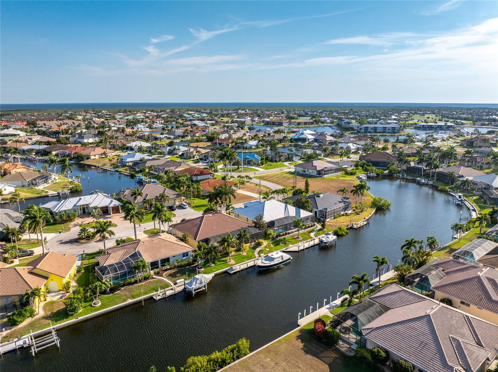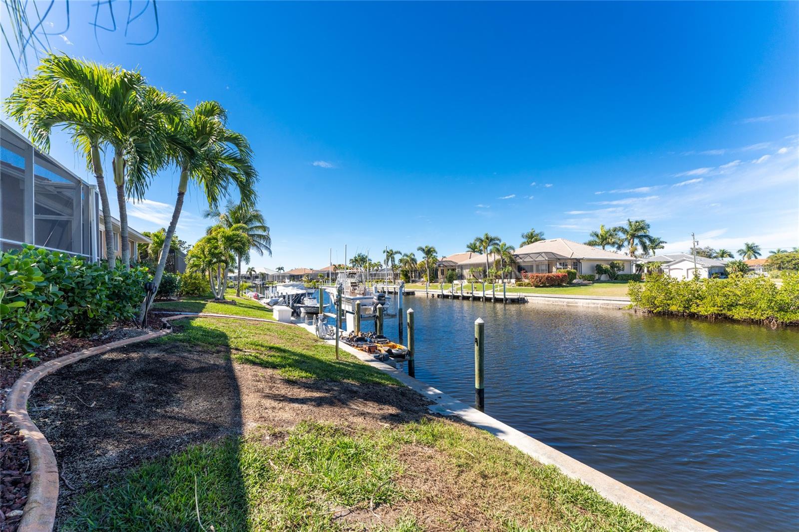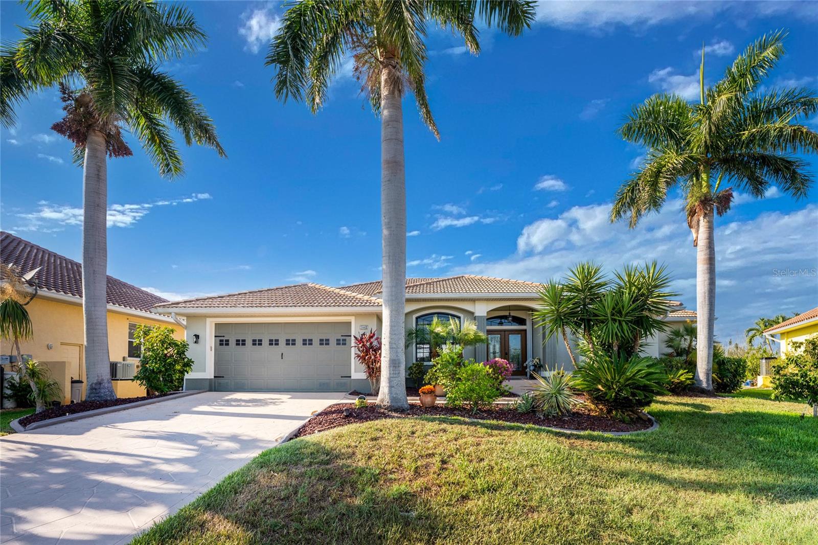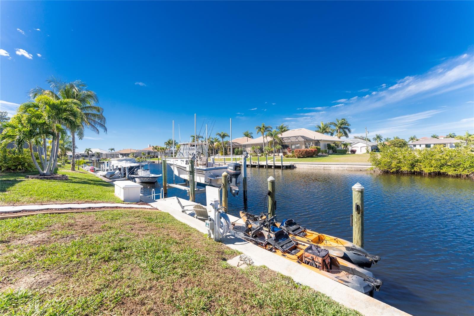 Welcome to your own piece of paradise in Punta Gorda, Florida! This stunning waterfront property offers direct sailboat access to Charlotte Harbor, boasting 109 feet of water frontage, a concrete dock complete with water and electric connections, and a 12,000 lbs boat lift. As you step into the house through the expansive glass doors, you're greeted by high ceilings and a well-designed open floor plan. The spacious living area leads you seamlessly to a large zero corner door, inviting you to the covered veranda and saltwater pool overlooking the canal. The kitchen is a chef's dream, featuring a Professional series Wolf Subzero Stainless-Steel refrigerator and gas range. Its aesthetic appeal is enhanced by granite countertops, a tiled backsplash, and Kraftmade soft-close wood cabinets. This home is designed for both functionality and style, with a split floor plan providing privacy. The generous master suite is filled with natural light and offers a walk-in closet. The ensuite bathroom is equipped with a double vanity, walk-in shower, and a large soaking tub. Two guest bedrooms and a second bath with access to the veranda/pool area ensure comfort for both residents and guests. Entertain effortlessly with a spacious dining area, a breakfast nook, and a well-appointed laundry room featuring a high-capacity Manitowoc Ice maker. The lanai, finished with stamped concrete, includes a saltwater pool, a piped-in gas line, a grill station, and a veranda with Nautilus electric roll-down hurricane shutters. Additional features include a Kohler whole-house backup generator, a 1,000 lbs propane tank, a 30 Amp RV outdoor plug, a water purification system, and a water softener. Enjoy a scenic boat ride through the beautiful canals, reaching Charlotte Harbor in approximately twenty minutes. This property is not just a home; it's a waterfront haven equipped with all the amenities for a luxurious Florida lifestyle.