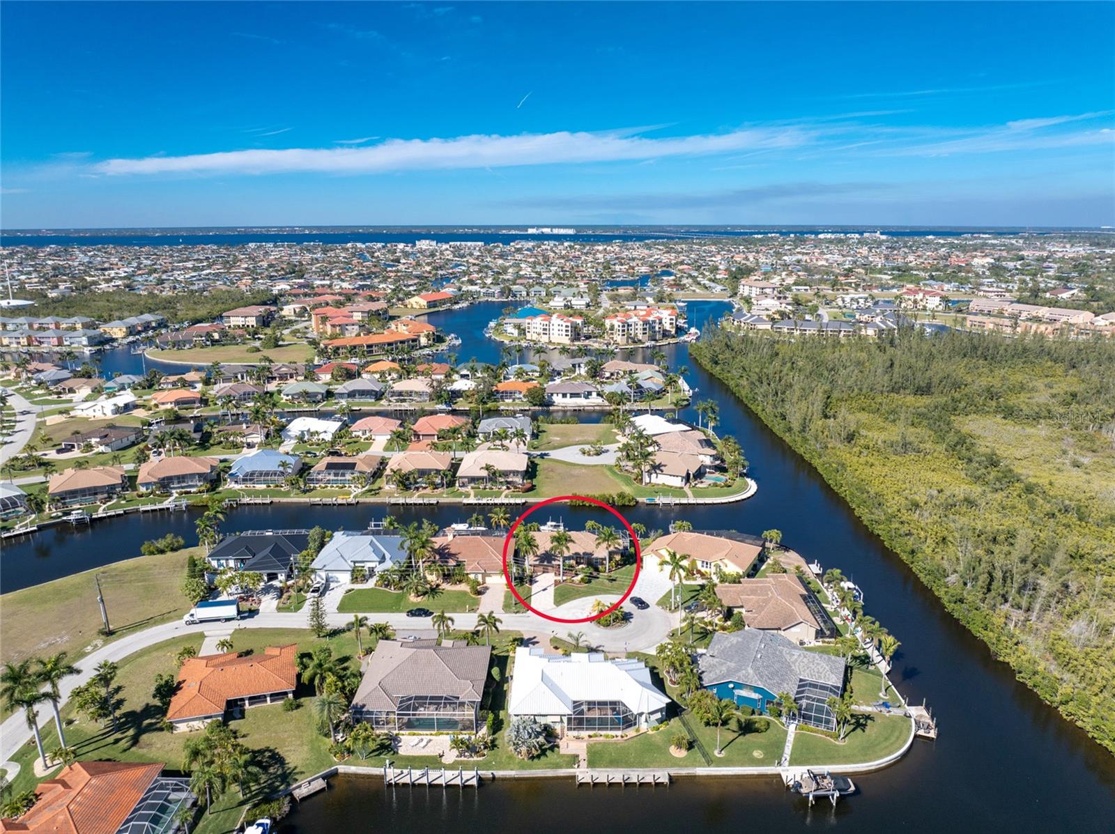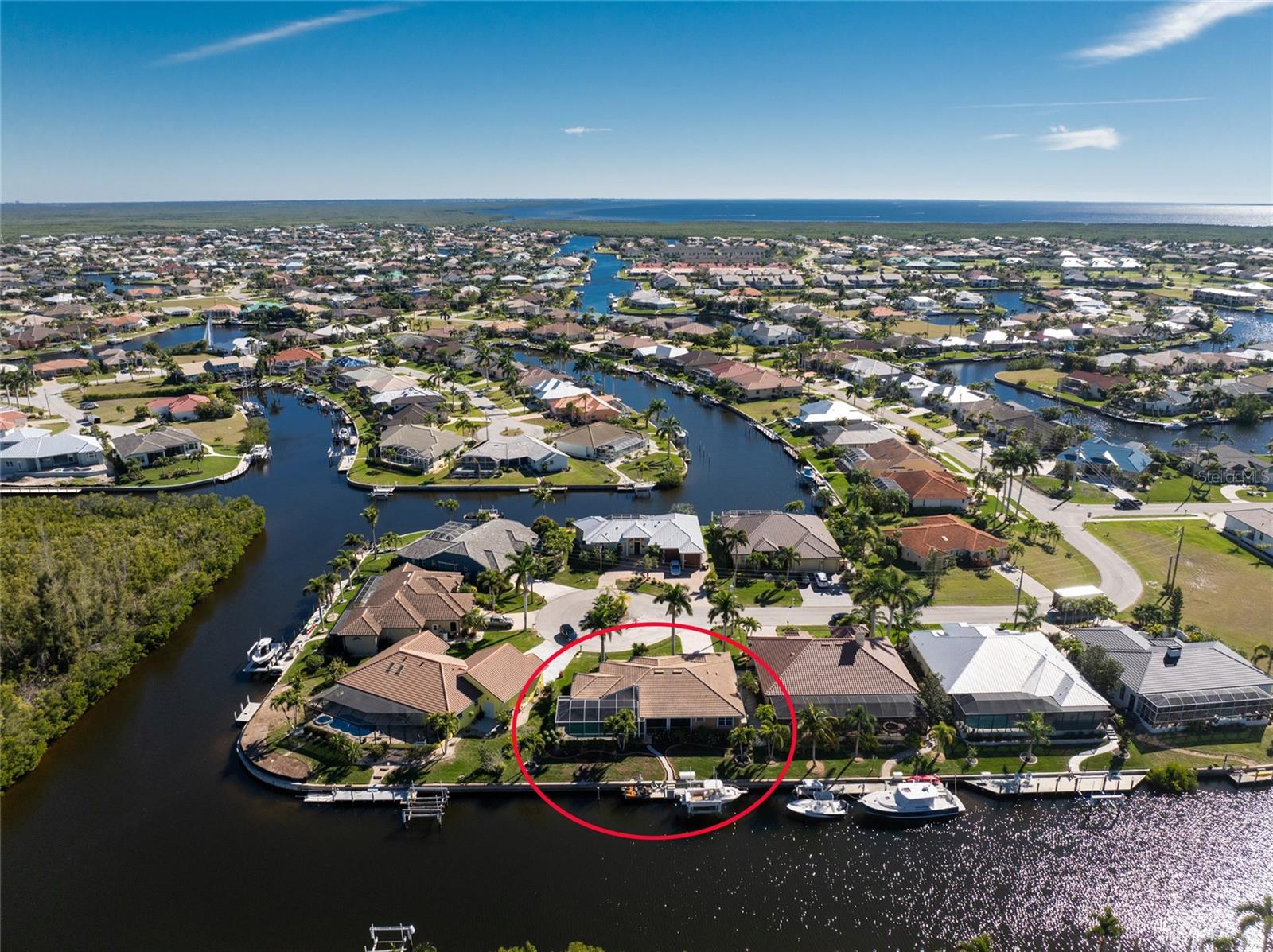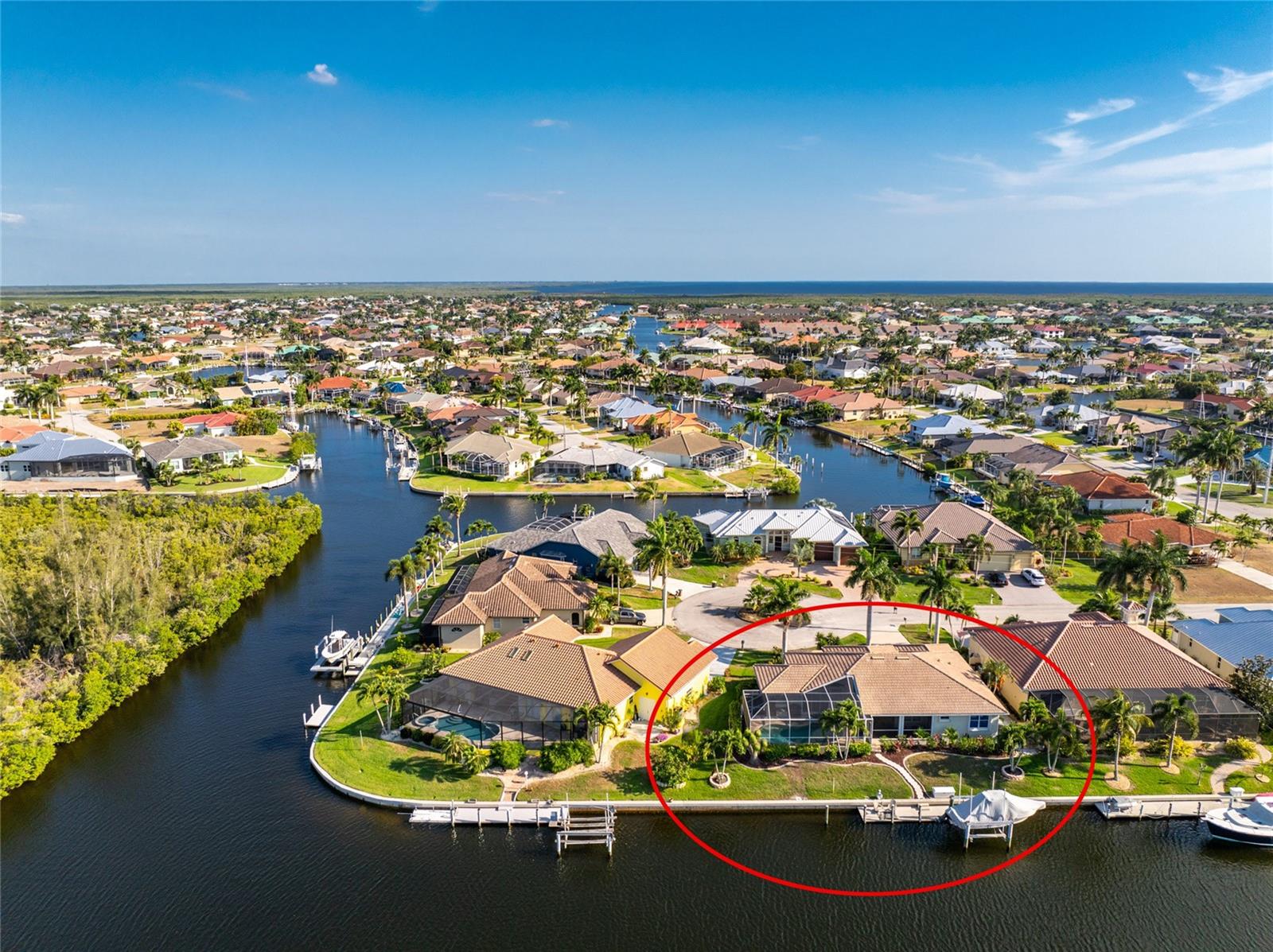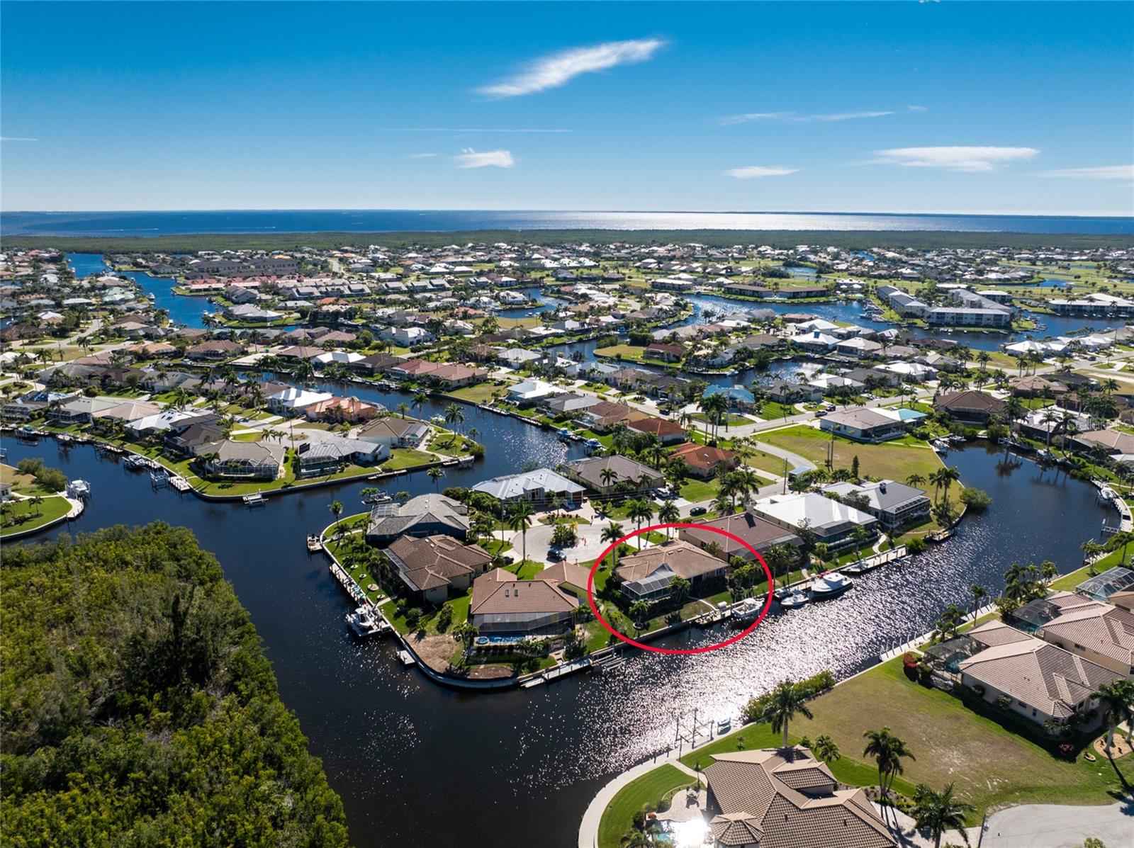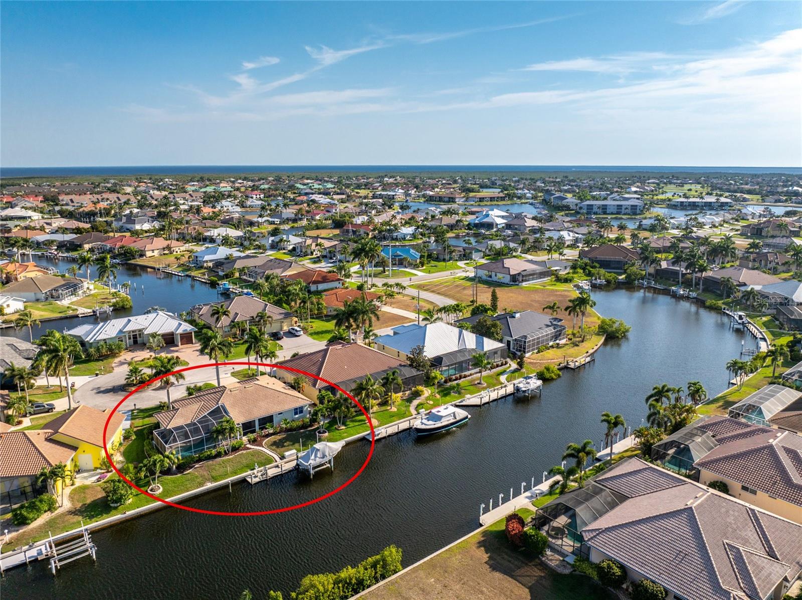 Welcome to your own piece of paradise in Punta Gorda, Florida! This stunning waterfront property offers direct sailboat access to Charlotte Harbor, boasting 109 feet of water frontage, a concrete dock complete with water and electric connections, and a 12,000 lbs boat lift. As you step into the house through the expansive glass doors, you're greeted by high ceilings and a well-designed open floor plan. The spacious living area leads you seamlessly to a large zero corner door, inviting you to the covered veranda and saltwater pool overlooking the canal. The kitchen is a chef's dream, featuring a Professional series Wolf Subzero Stainless-Steel refrigerator and gas range. Its aesthetic appeal is enhanced by granite countertops, a tiled backsplash, and Kraftmade soft-close wood cabinets. This home is designed for both functionality and style, with a split floor plan providing privacy. The generous master suite is filled with natural light and offers a walk-in closet. The ensuite bathroom is equipped with a double vanity, walk-in shower, and a large soaking tub. Two guest bedrooms and a second bath with access to the veranda/pool area ensure comfort for both residents and guests. Entertain effortlessly with a spacious dining area, a breakfast nook, and a well-appointed laundry room featuring a high-capacity Manitowoc Ice maker. The lanai, finished with stamped concrete, includes a saltwater pool, a piped-in gas line, a grill station, and a veranda with Nautilus electric roll-down hurricane shutters. Additional features include a Kohler whole-house backup generator, a 1,000 lbs propane tank, a 30 Amp RV outdoor plug, a water purification system, and a water softener. Enjoy a scenic boat ride through the beautiful canals, reaching Charlotte Harbor in approximately twenty minutes. This property is not just a home; it's a waterfront haven equipped with all the amenities for a luxurious Florida lifestyle.