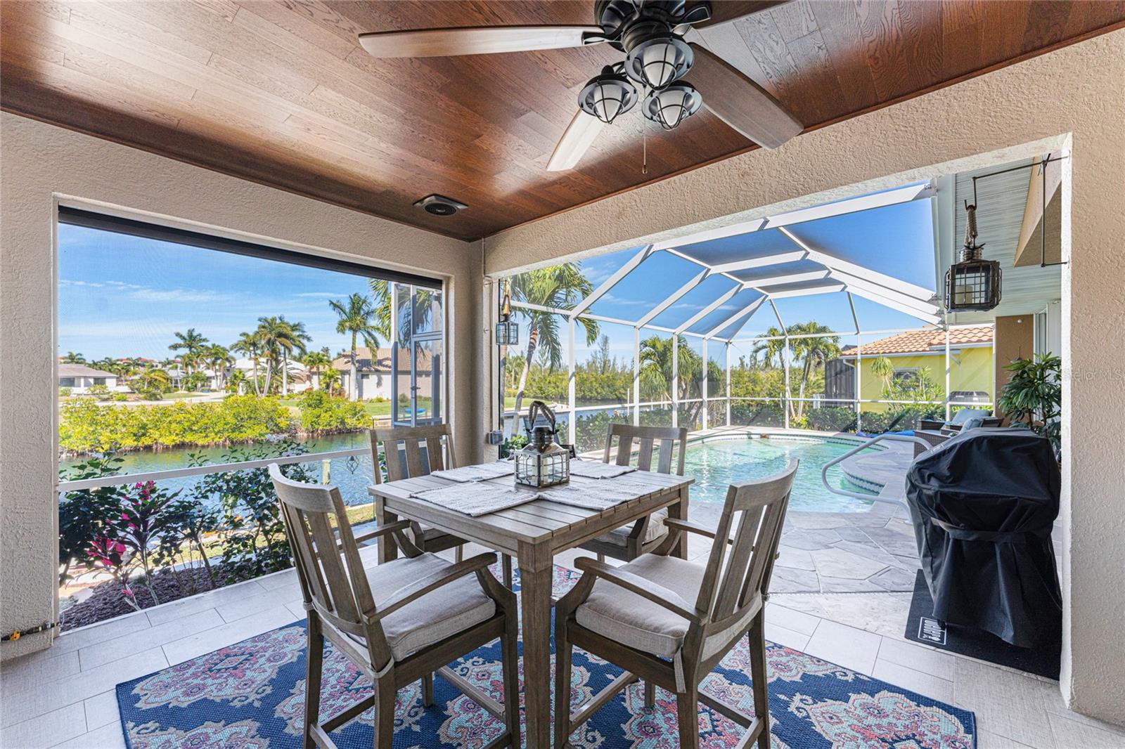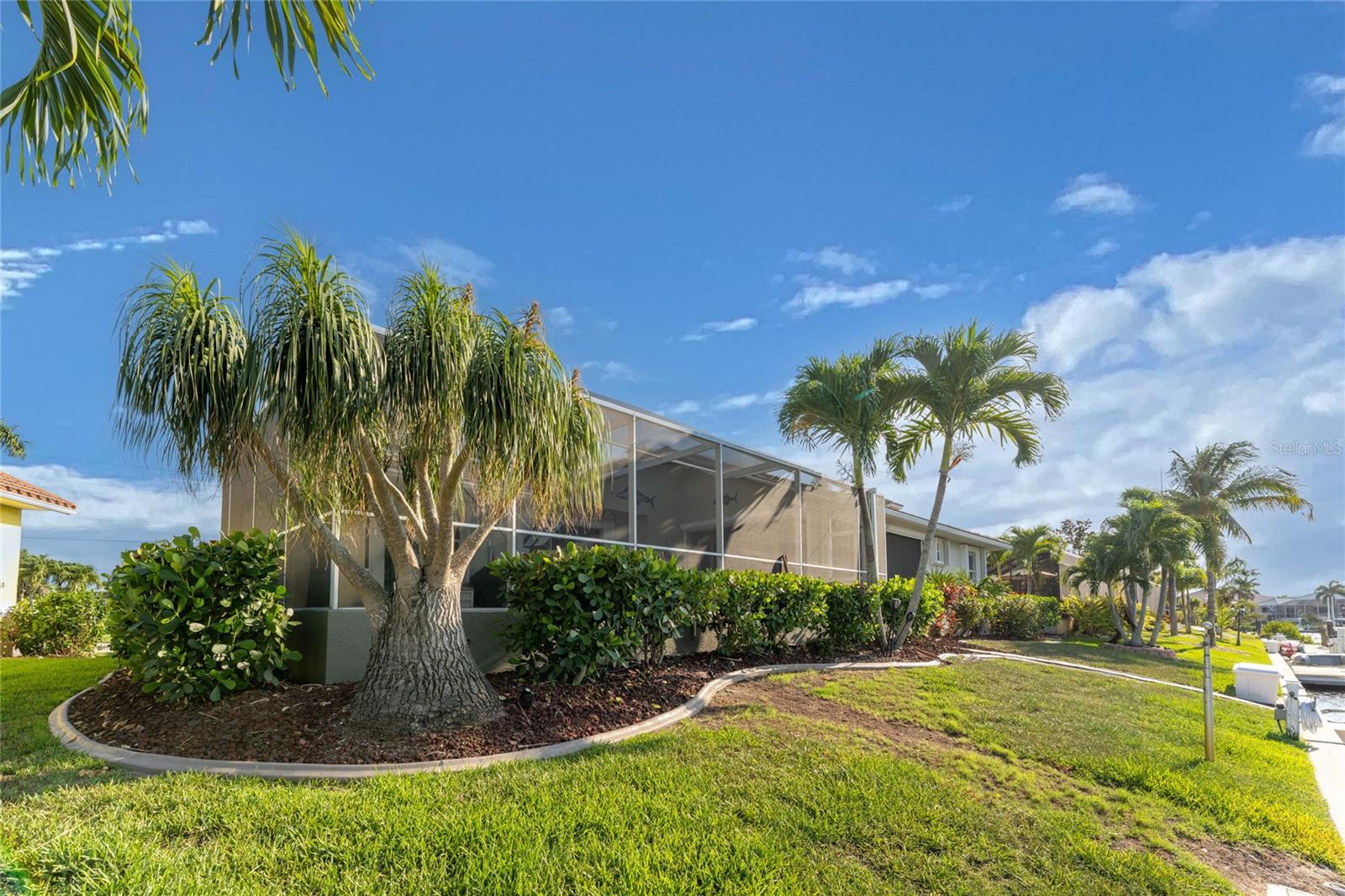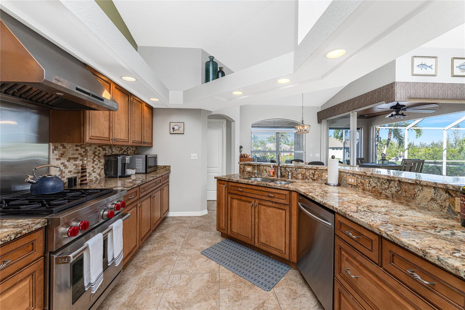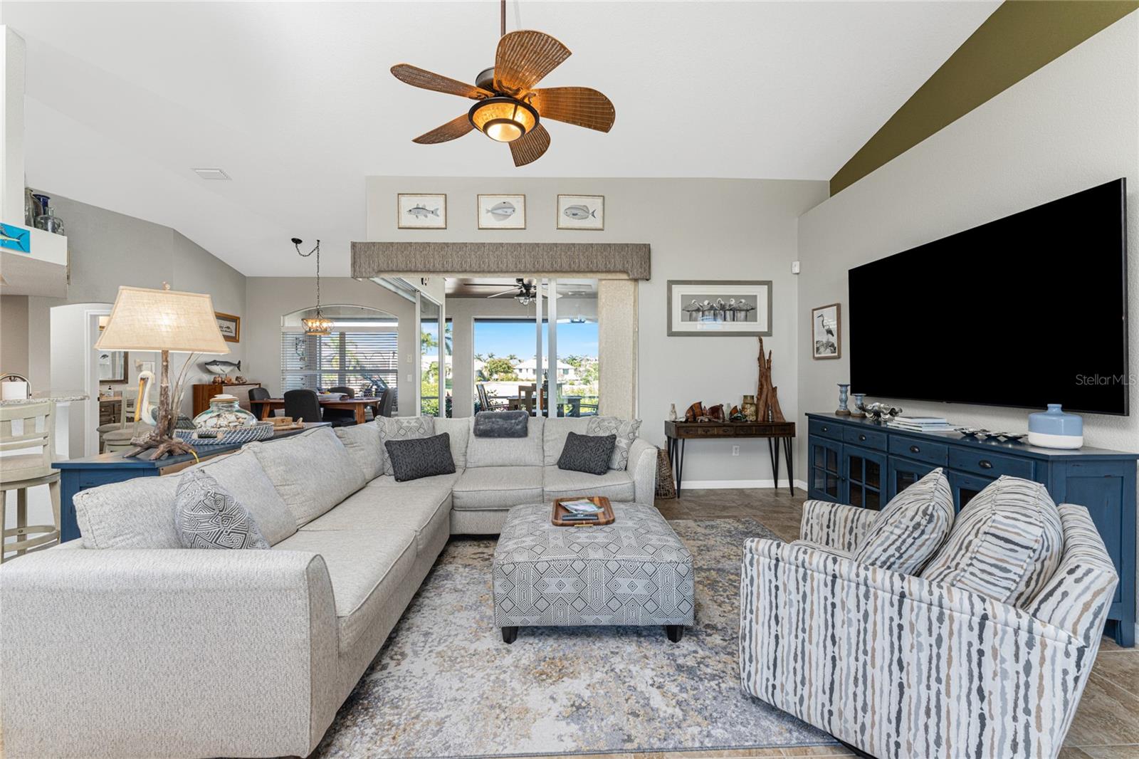 Welcome to your own piece of paradise in Punta Gorda, Florida! This stunning waterfront property offers direct sailboat access to Charlotte Harbor, boasting 109 feet of water frontage, a concrete dock complete with water and electric connections, and a 12,000 lbs boat lift. As you step into the house through the expansive glass doors, you're greeted by high ceilings and a well-designed open floor plan. The spacious living area leads you seamlessly to a large zero corner door, inviting you to the covered veranda and saltwater pool overlooking the canal. The kitchen is a chef's dream, featuring a Professional series Wolf Subzero Stainless-Steel refrigerator and gas range. Its aesthetic appeal is enhanced by granite countertops, a tiled backsplash, and Kraftmade soft-close wood cabinets. This home is designed for both functionality and style, with a split floor plan providing privacy. The generous master suite is filled with natural light and offers a walk-in closet. The ensuite bathroom is equipped with a double vanity, walk-in shower, and a large soaking tub. Two guest bedrooms and a second bath with access to the veranda/pool area ensure comfort for both residents and guests. Entertain effortlessly with a spacious dining area, a breakfast nook, and a well-appointed laundry room featuring a high-capacity Manitowoc Ice maker. The lanai, finished with stamped concrete, includes a saltwater pool, a piped-in gas line, a grill station, and a veranda with Nautilus electric roll-down hurricane shutters. Additional features include a Kohler whole-house backup generator, a 1,000 lbs propane tank, a 30 Amp RV outdoor plug, a water purification system, and a water softener. Enjoy a scenic boat ride through the beautiful canals, reaching Charlotte Harbor in approximately twenty minutes. This property is not just a home; it's a waterfront haven equipped with all the amenities for a luxurious Florida lifestyle.