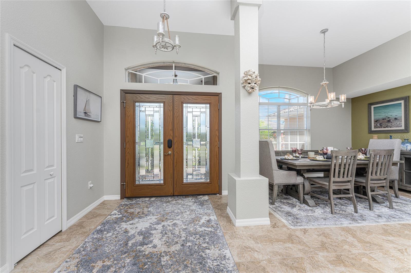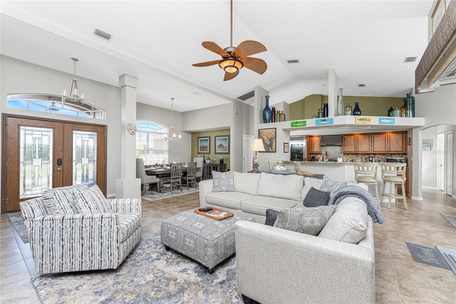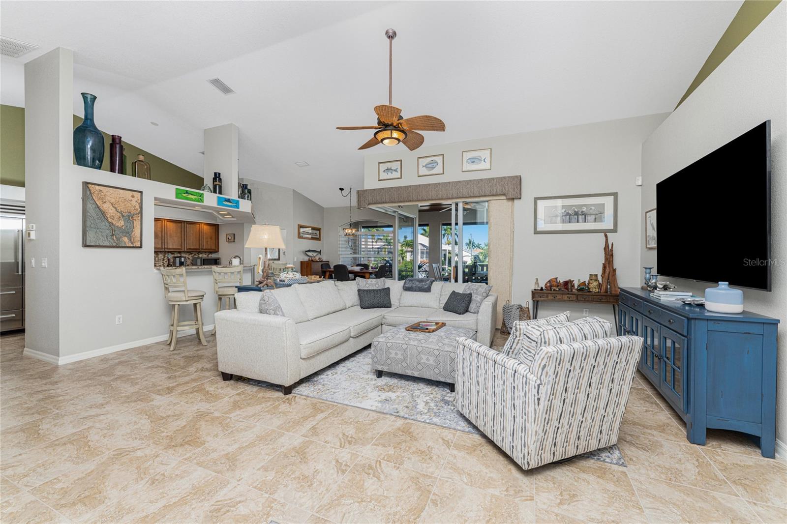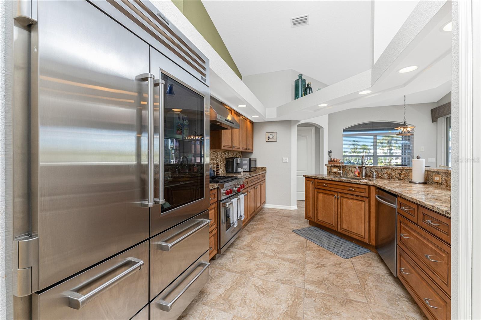 Welcome to your own piece of paradise in Punta Gorda, Florida! This stunning waterfront property offers direct sailboat access to Charlotte Harbor, boasting 109 feet of water frontage, a concrete dock complete with water and electric connections, and a 12,000 lbs boat lift. As you step into the house through the expansive glass doors, you're greeted by high ceilings and a well-designed open floor plan. The spacious living area leads you seamlessly to a large zero corner door, inviting you to the covered veranda and saltwater pool overlooking the canal. The kitchen is a chef's dream, featuring a Professional series Wolf Subzero Stainless-Steel refrigerator and gas range. Its aesthetic appeal is enhanced by granite countertops, a tiled backsplash, and Kraftmade soft-close wood cabinets. This home is designed for both functionality and style, with a split floor plan providing privacy. The generous master suite is filled with natural light and offers a walk-in closet. The ensuite bathroom is equipped with a double vanity, walk-in shower, and a large soaking tub. Two guest bedrooms and a second bath with access to the veranda/pool area ensure comfort for both residents and guests. Entertain effortlessly with a spacious dining area, a breakfast nook, and a well-appointed laundry room featuring a high-capacity Manitowoc Ice maker. The lanai, finished with stamped concrete, includes a saltwater pool, a piped-in gas line, a grill station, and a veranda with Nautilus electric roll-down hurricane shutters. Additional features include a Kohler whole-house backup generator, a 1,000 lbs propane tank, a 30 Amp RV outdoor plug, a water purification system, and a water softener. Enjoy a scenic boat ride through the beautiful canals, reaching Charlotte Harbor in approximately twenty minutes. This property is not just a home; it's a waterfront haven equipped with all the amenities for a luxurious Florida lifestyle.