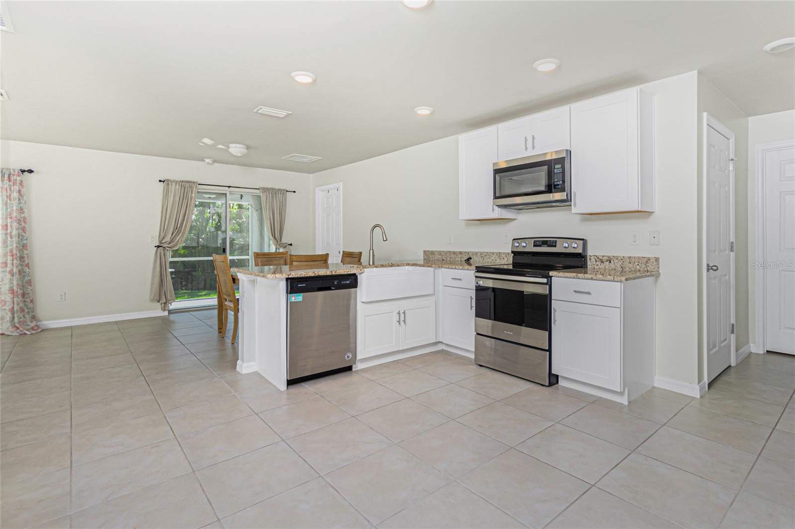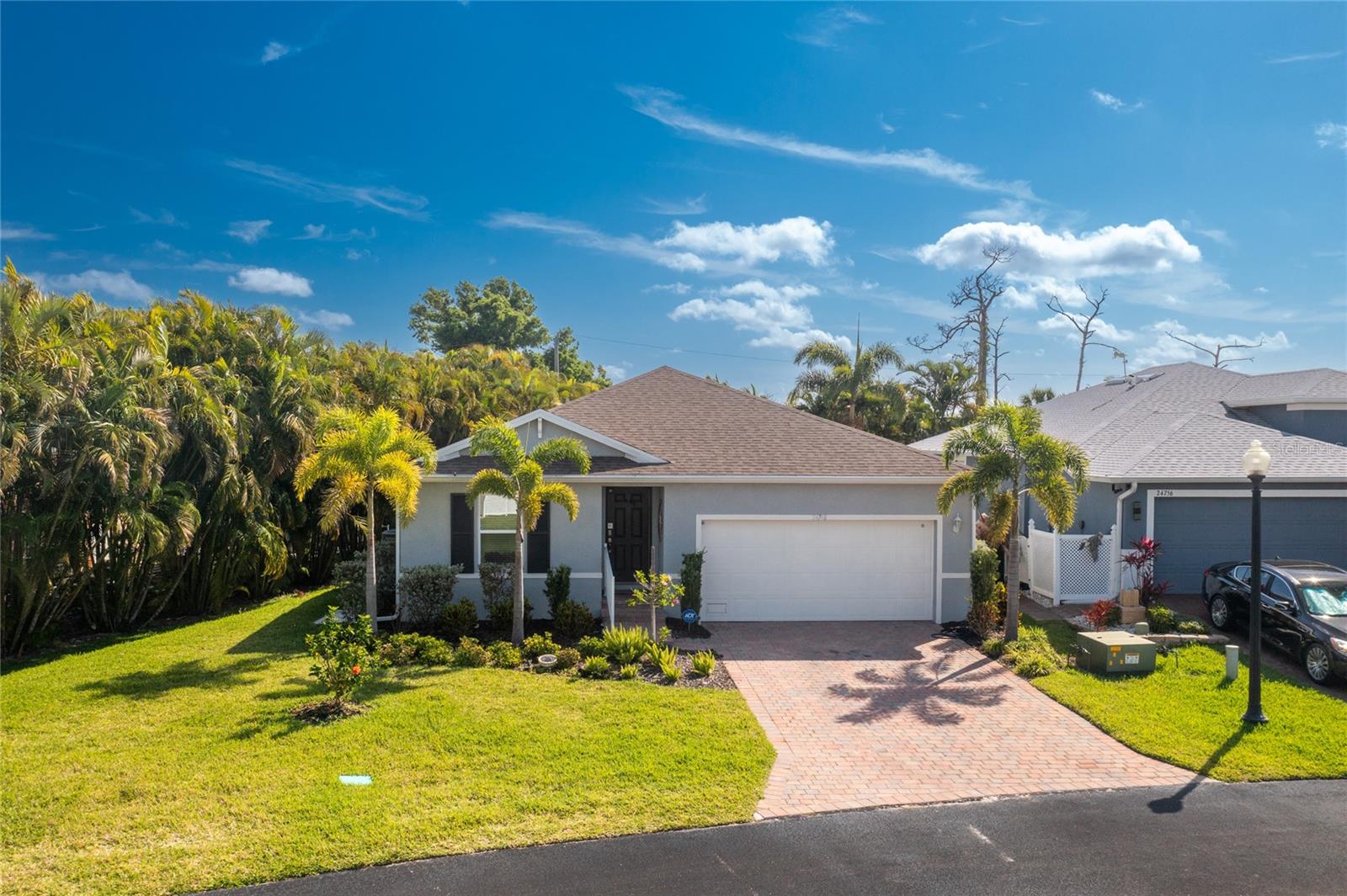 NO STORM DAMAGE!!! This one is perfect and ready to move into! Welcome to your slice of paradise in the desirable 55+ gated community of Rio Villa Lakes! Nestled on a spacious corner lot, with impressive curb appeal and a paved driveway surrounded by mature palms, this immaculate, meticulously crafted 2021 home boasts a perfect blend of modern elegance and resort-style active living. Step inside this bright and open floor plan featuring 3 bedrooms and 2 bathrooms. The primary bedroom and bathroom are situated on the opposite side of the home, offering privacy and convenience. Enjoy tile flooring throughout the main living areas, complemented by fresh new interior paint. The home is pristine, featuring fan fixtures adding to its appeal and comfortable living space. In the heart of the home lies the newly renovated kitchen, where culinary dreams come to life amidst the gleaming granite countertops and a charming extra-large farmer's sink. Prepare gourmet meals with ease using your stainless-steel appliances and enjoy the convenience of ample storage in the pantry. Tile floors add a touch of refinement to the space, whether you're hosting intimate gatherings, family dinners, or simply enjoying a quiet breakfast. Three spacious bedrooms provides plenty of room for relaxation and rejuvenation, each adorned with plush carpeting and abundant natural light entering the large windows. The primary suite with a large closet complete with an en-suite bath boasts nice finishes and a rejuvenating shower. The second bedroom can serve as an office or den, providing plenty of room for guests along with ample closet space, storage, and privacy. Step outside through the large glass slider to the screened lanai, featuring a ceiling fan for added comfort. From there, you can venture out to the new paved outdoor patio in the expansive yard with plush grass and the privacy of mature palms. With an efficient irrigation system in place, you can bask in the Florida sunshine, barbecue, and entertain in the tropical climate. This is the perfect space to host an outdoor get together with friends and family or simply unwind and read a book while you admire the lush landscaping that surrounds you. The home offers a spacious 2-car garage, complete with ample storage space and a designated laundry area equipped with shelving, a washer, and a dryer. This well-designed space offers both practicality and ease, organization, and efficiency for all your household needs. As a resident of the gated Rio Villa Lakes, you'll enjoy access to a wealth of amenities designed to enhance your active lifestyle. Take a refreshing dip in the community pool, challenge friends to a friendly game of tennis on the courts, or simply stroll along the pet-friendly neighborhood. This quiet community is conveniently located near parks, scenic walking trails, beaches, and marinas. Additionally, it’s just a short distance from beautiful downtown Punta Gorda, where you can enjoy the vibrant weekend farmers market or explore the quaint shops and dining options offered in Fisherman’s Village, all while taking in a breathtaking sunset cruise. On top of all that, this is a perfect location with close access to I-75 and all the things you need and want to do. This beautiful home has something for everyone whether you're an avid boater or simply seeking a tranquil retreat, making it the perfect place to call home. Call today to schedule a private showing today! Come live where others vacation!