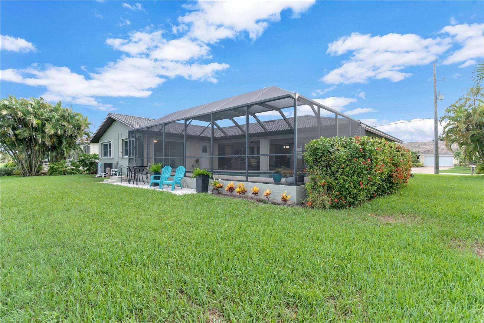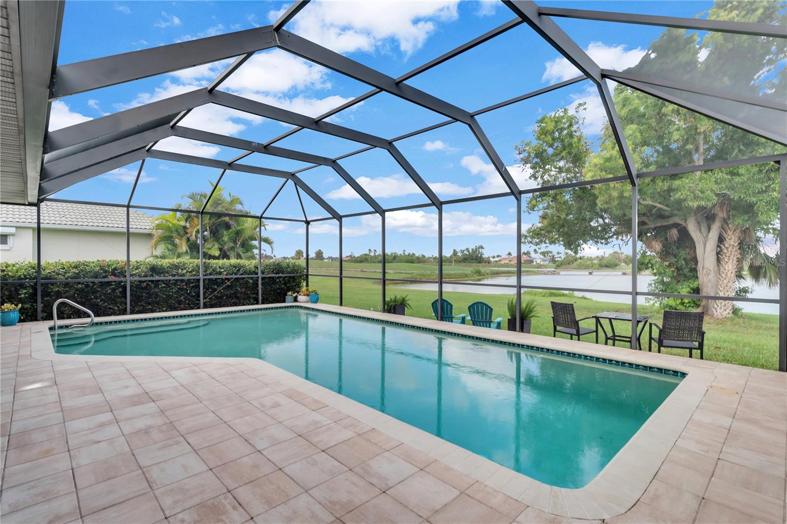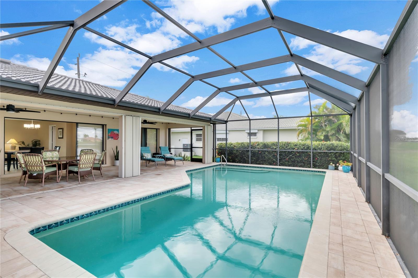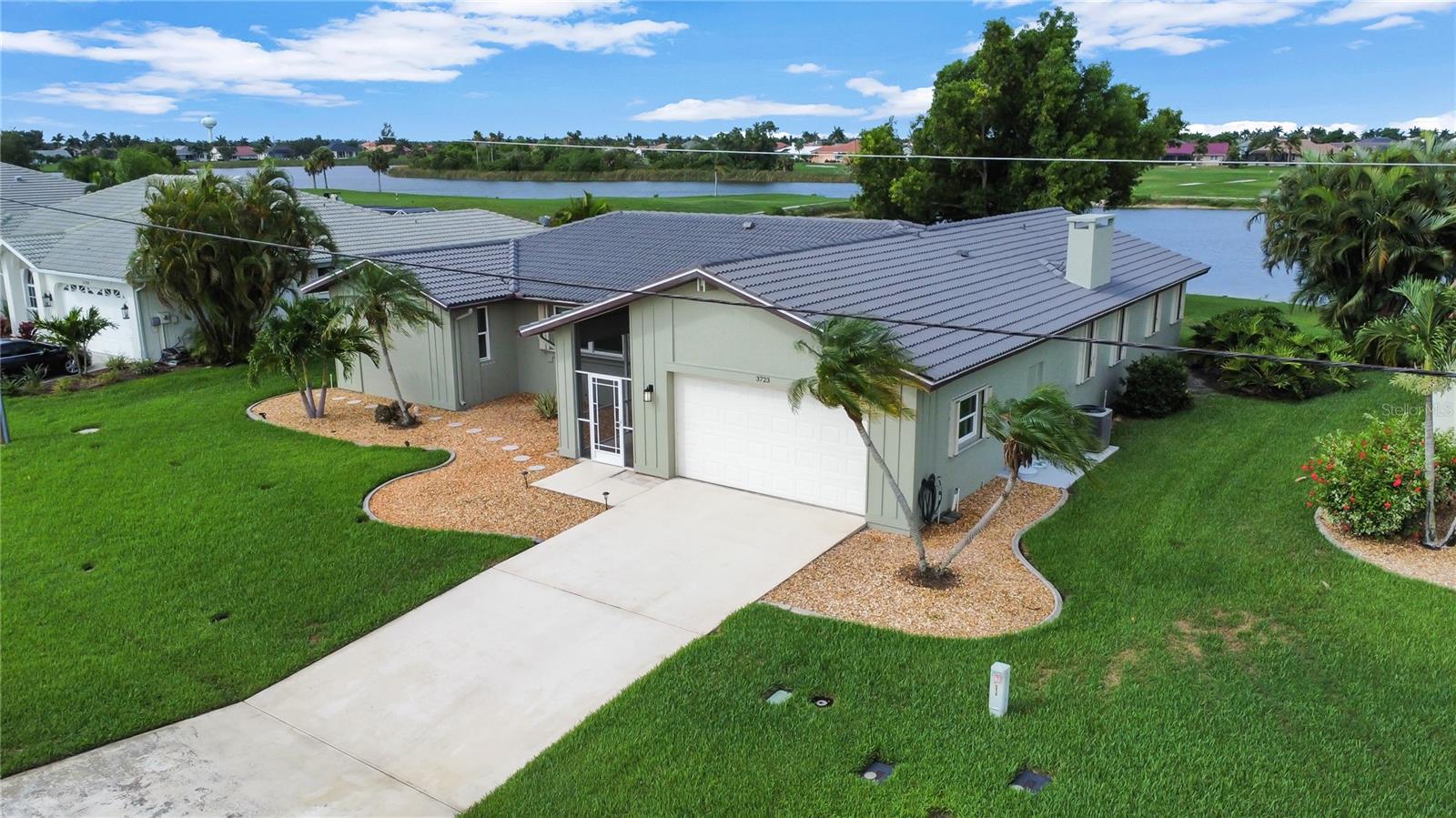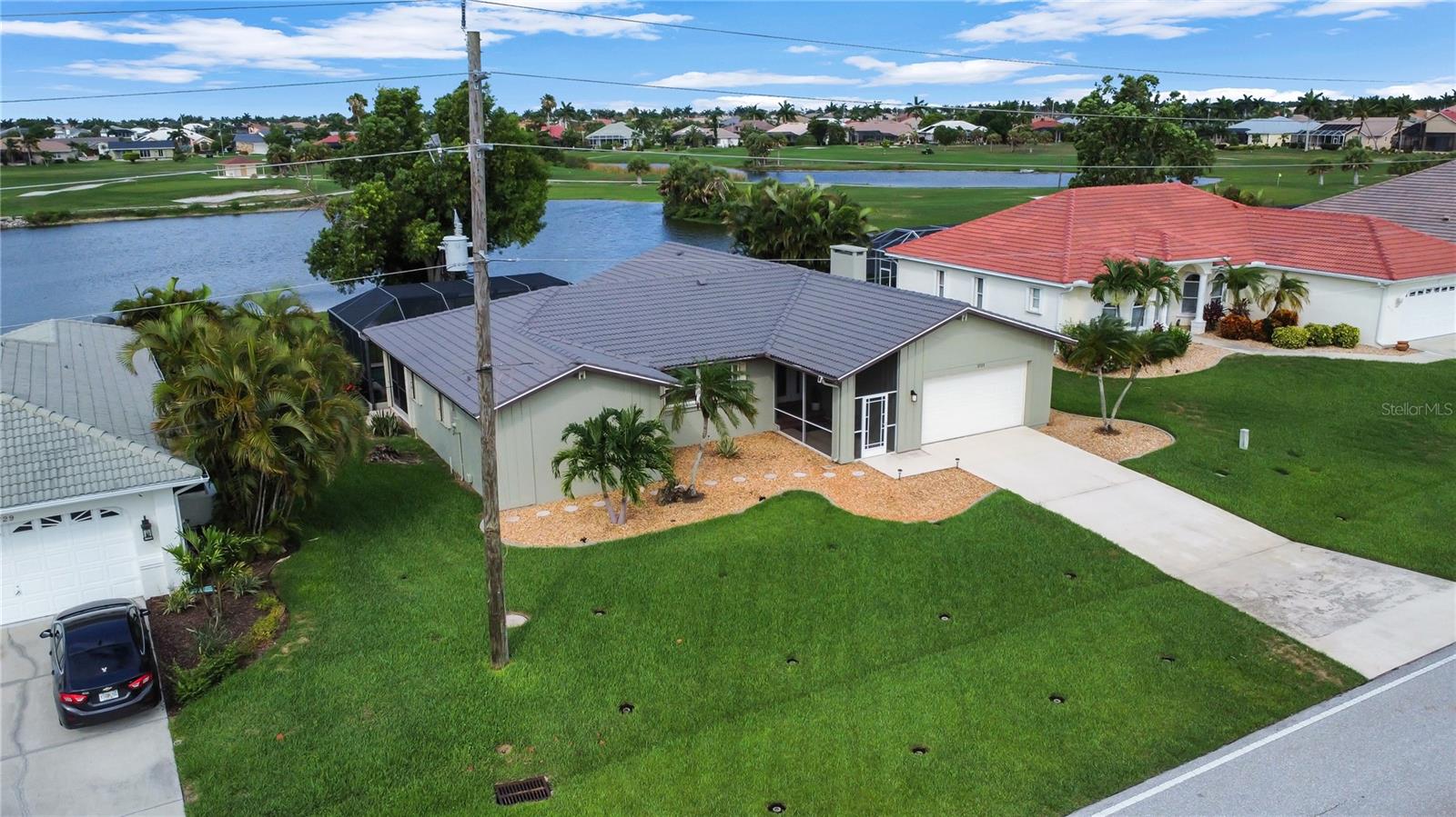 This beautiful home is being sold TURNKEY!! No Hurricane Damage from Milton or Helene! This meticulously maintained 3 bedroom, 2 bathroom saltwater pool home in the sought-after Burnt Store Isles community is your ticket to the Florida lifestyle you deserve. Step inside and be greeted by stunning NEW paint that complements the home's elegant curb appeal, featuring tropical landscaping, a screened-in front porch, and a NEWLY PAINTED cement tile roof! Breathtaking lake views grace every room, creating a serene escape.The open floor plan seamlessly connects the living and dining areas, accentuated by tile flooring throughout the main living areas. Expansive double sliding doors open the home to the expansive lanai, creating an entertainer's dream! The chef-ready kitchen boasts amazing views, ample cabinet and counter space, a pantry, a tile backsplash, a pass-through window to the lanai, a breakfast bar, and all appliances are included. The cozy family room features a decorative wood paneling accent wall, a wet bar, and a fireplace, perfect for creating lasting memories. Retire to the luxurious master suite, complete with dual walk-in closets, separate vanities, a private toilet stall, and a Roman walk-in shower. All guest bedrooms are generously sized and with ceiling fans and private closets. Step outside and soak up the Florida sunshine on the screened-in lanai, featuring a sparkling, saltwater pool. The pool heater was recently serviced and in fantastic working condition. Enjoy breathtaking lake views as you relax or dine outdoors. Upgraded NO-SEE-UM SCREENING on the lanai keeps pesky bugs at bay, ensuring year-round enjoyment of your outdoor paradise. For complete peace of mind, this home boasts hurricane shutters, tile flooring, a new electrical panel in 2021 with a whole-house surge protector, an irrigation system, and a beautiful paver pool deck. The air conditioner has also been meticulously tuned-up and is ready to go. There's truly nothing left to do but move in and start living your dream Florida lifestyle! This property enjoys close proximity to top-rated beaches, parks with biking and walking trails, and boat ramps providing access to waterways, rivers, and the Gulf of Mexico. Historic downtown Punta Gorda and Fisherman's Village with its charming shops and cafes are just a short distance away. Don't miss out on this exceptional opportunity! This home truly has it all! Schedule a showing today!