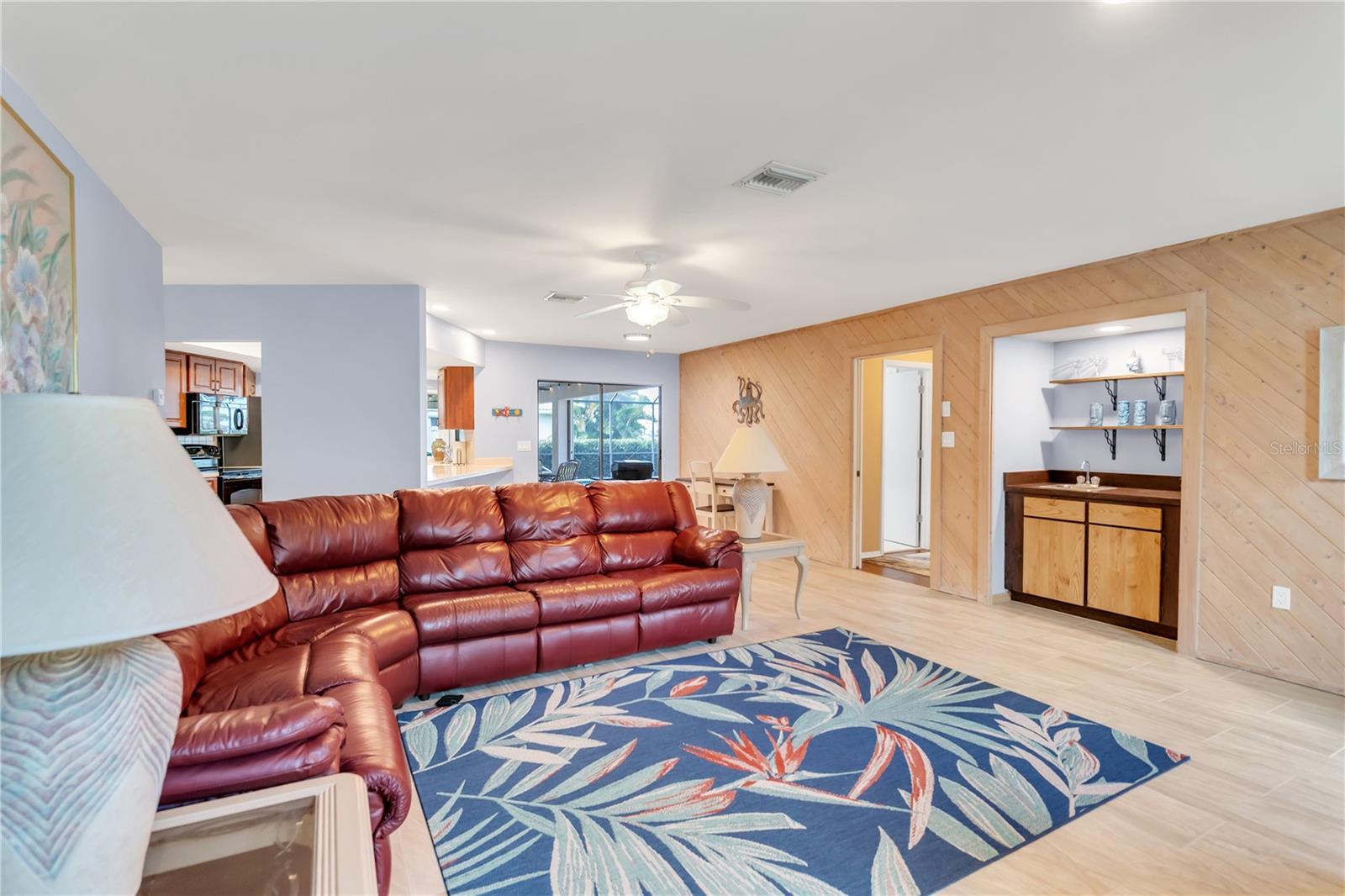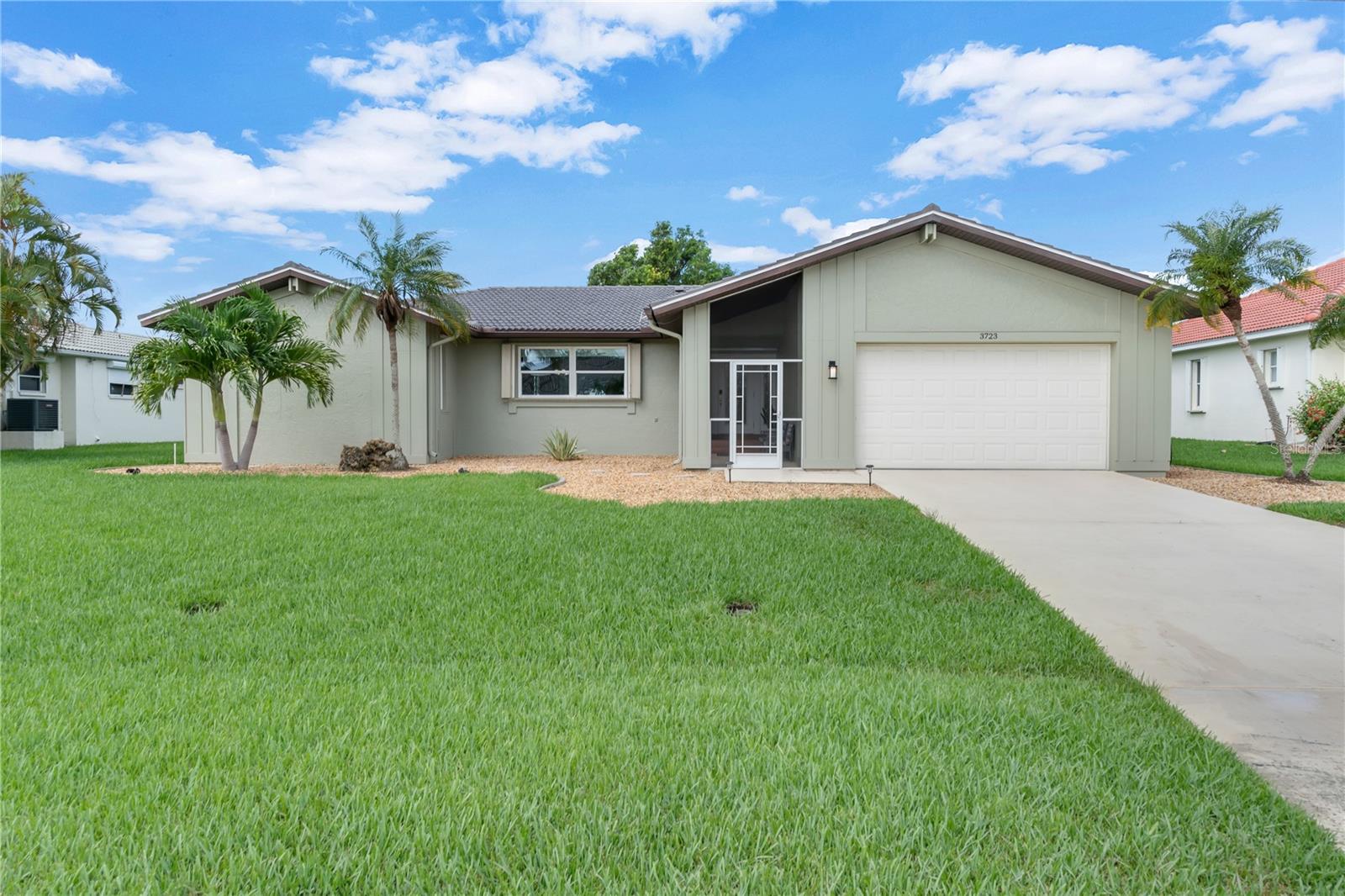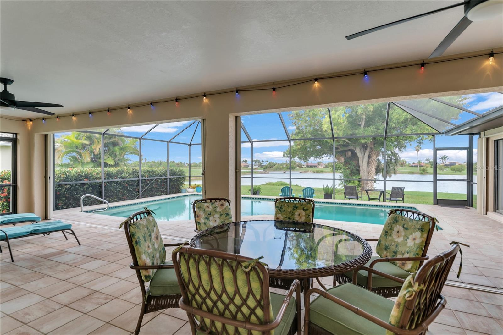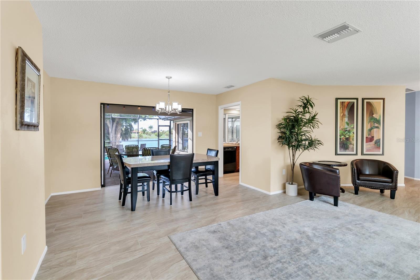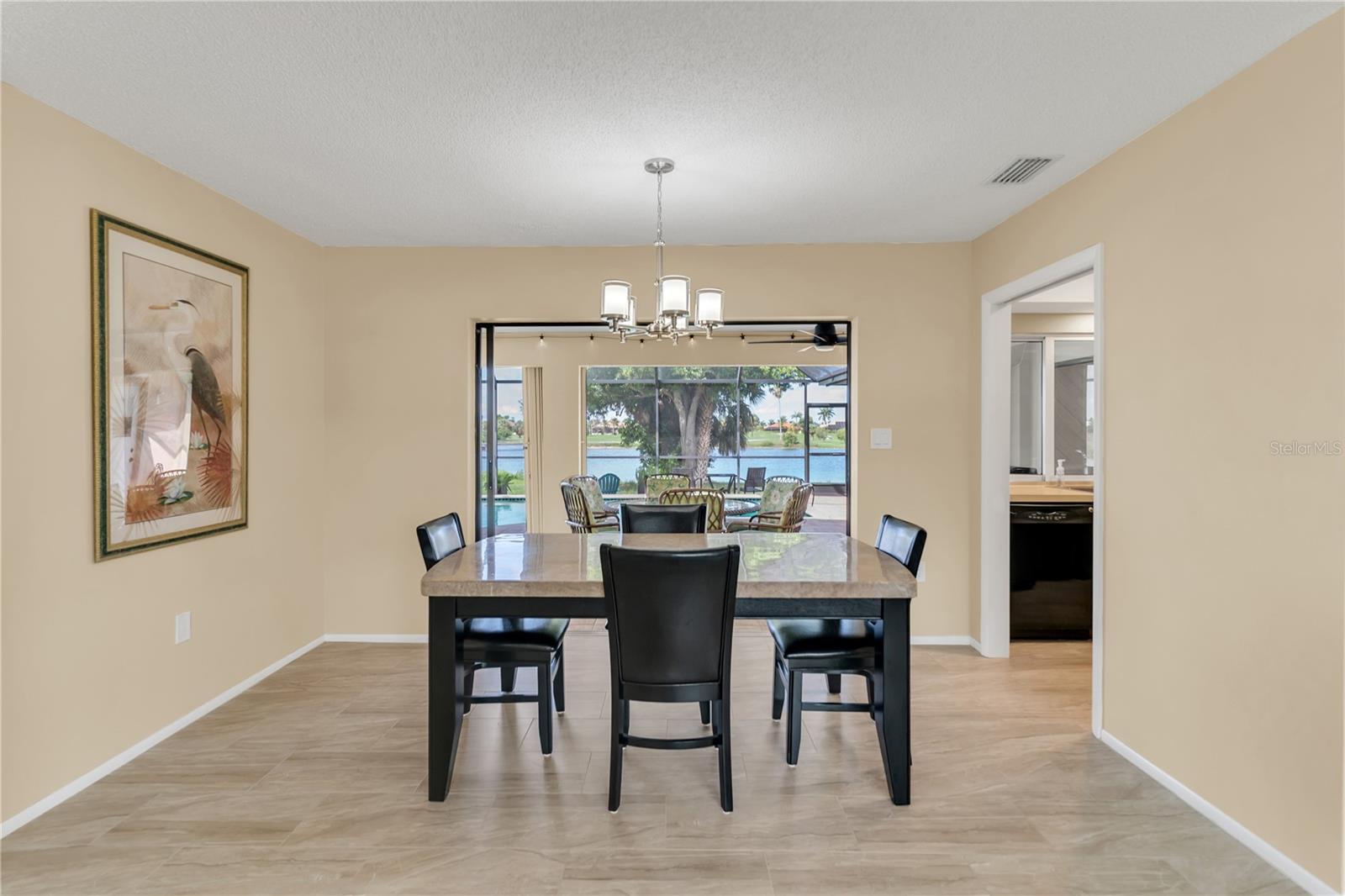 This beautiful home is being sold TURNKEY!! No Hurricane Damage from Milton or Helene! This meticulously maintained 3 bedroom, 2 bathroom saltwater pool home in the sought-after Burnt Store Isles community is your ticket to the Florida lifestyle you deserve. Step inside and be greeted by stunning NEW paint that complements the home's elegant curb appeal, featuring tropical landscaping, a screened-in front porch, and a NEWLY PAINTED cement tile roof! Breathtaking lake views grace every room, creating a serene escape.The open floor plan seamlessly connects the living and dining areas, accentuated by tile flooring throughout the main living areas. Expansive double sliding doors open the home to the expansive lanai, creating an entertainer's dream! The chef-ready kitchen boasts amazing views, ample cabinet and counter space, a pantry, a tile backsplash, a pass-through window to the lanai, a breakfast bar, and all appliances are included. The cozy family room features a decorative wood paneling accent wall, a wet bar, and a fireplace, perfect for creating lasting memories. Retire to the luxurious master suite, complete with dual walk-in closets, separate vanities, a private toilet stall, and a Roman walk-in shower. All guest bedrooms are generously sized and with ceiling fans and private closets. Step outside and soak up the Florida sunshine on the screened-in lanai, featuring a sparkling, saltwater pool. The pool heater was recently serviced and in fantastic working condition. Enjoy breathtaking lake views as you relax or dine outdoors. Upgraded NO-SEE-UM SCREENING on the lanai keeps pesky bugs at bay, ensuring year-round enjoyment of your outdoor paradise. For complete peace of mind, this home boasts hurricane shutters, tile flooring, a new electrical panel in 2021 with a whole-house surge protector, an irrigation system, and a beautiful paver pool deck. The air conditioner has also been meticulously tuned-up and is ready to go. There's truly nothing left to do but move in and start living your dream Florida lifestyle! This property enjoys close proximity to top-rated beaches, parks with biking and walking trails, and boat ramps providing access to waterways, rivers, and the Gulf of Mexico. Historic downtown Punta Gorda and Fisherman's Village with its charming shops and cafes are just a short distance away. Don't miss out on this exceptional opportunity! This home truly has it all! Schedule a showing today!