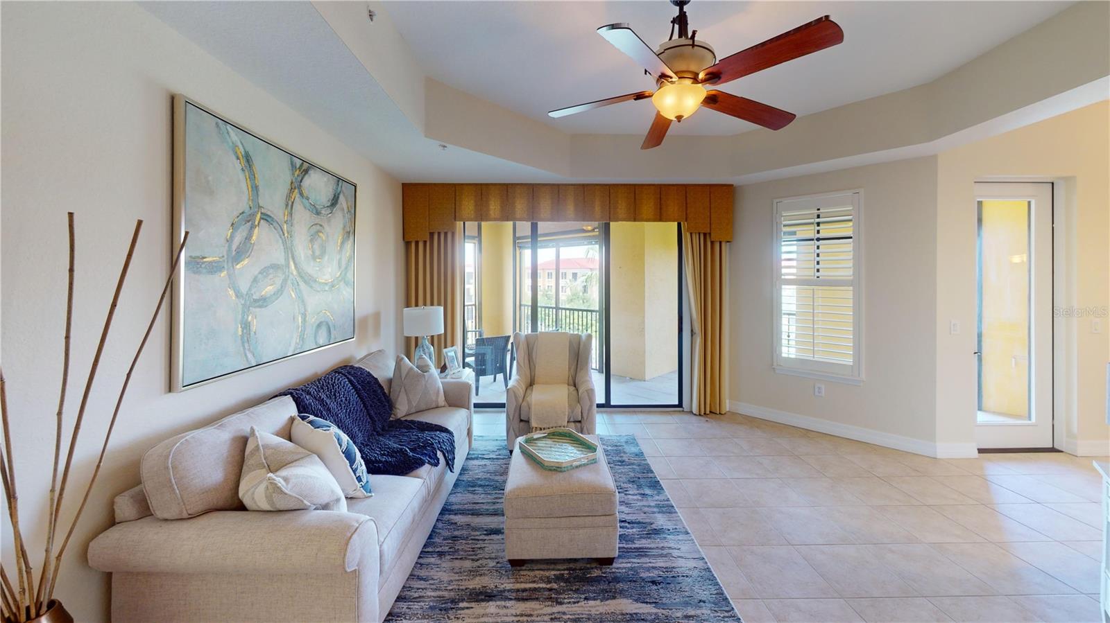 PRICE REDUCED ~ OUTSTANDING OPPORTUNITY for Furnished top floor unit with GARAGE! Welcome to Vivante, where Mediterranean-inspired resort living offers an extraordinary lifestyle in Punta Gorda. This FURNISHED 3 Bedroom, 2 Bathroom unit on the 4th Floor boasts a split floor plan, offering spaciousness and privacy. With high 10-foot ceilings and 8-foot interior doors, the living space feels open and inviting. You'll love the flow between the Den / Formal Dining Room and Living Room with 8' tall Sliding Doors to your tiled and screened Lanai. And the heart of the home is a spacious Kitchen equipped with 42” cabinets, granite countertops with a BREAKFAST BAR and a Built In DESK. Adjacent to the kitchen, the Dinette area features high windows and access door leading to several OUTDOOR GATHERING spaces. The Primary Bedroom is generously sized, features WALK IN CLOSET, Door to Lanai, and an En-Suite Bathroom with GARDEN TUB and separate glass enclosed TILED shower, dual vanities with granite counters and a private water closet. The GUEST BEDROOMS are on the other side of the condo, offering privacy and share the Hall Bathroom. Guest Bedroom 3 offers two built in closets and direct access to the covered Lanai. The Laundry Room is situated in the Guest wing, and offers storage space and access to the hall linen closet. This home is equipped with ROLL DOWN Hurricane Screens for added peace of mind and heat / glare protection. There is assigned and guest parking in front of the building, and on the ground level you have easy access to storage and your DEEDED oversized 1 CAR GARAGE! Vivante amenities include an immaculate two story Clubhouse with state of the art FITNESS center, media room, game room, cyber lounge, billiard room, craft room and more! In addition, you will live in the lap of luxury with TWO Heated Pools, one vanishing edge and one lap pool, expansive lounging areas with water views, Cabana wil BBQ Grills, steam room, sauna, and on site SPA services for manicures, pedicures, massages and more, 6 Har-Tru TENNIS Courts, naturalistic gardens with brick paver walkways, fountains, and sidewalks along the waterfront. Vivante is only 2 miles to Fisherman’s Village and the historic district of Downtown Punta Gorda and is conveniently located near shopping, restaurants, world class fishing, the new SunSeeker Resort and Punta Gorda Airport, making this an ideal location to embrace the relaxed SW Florida lifestyle.
