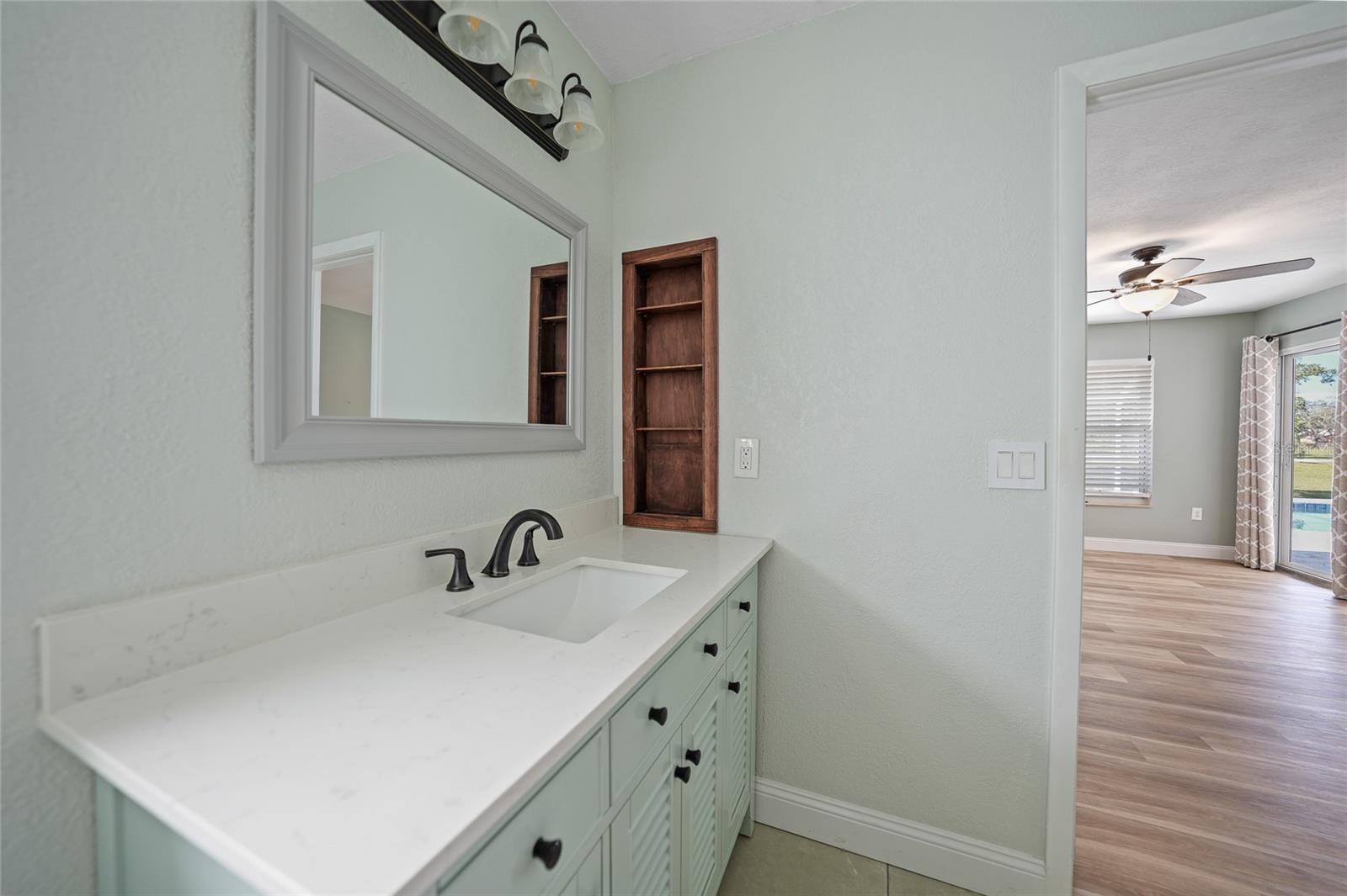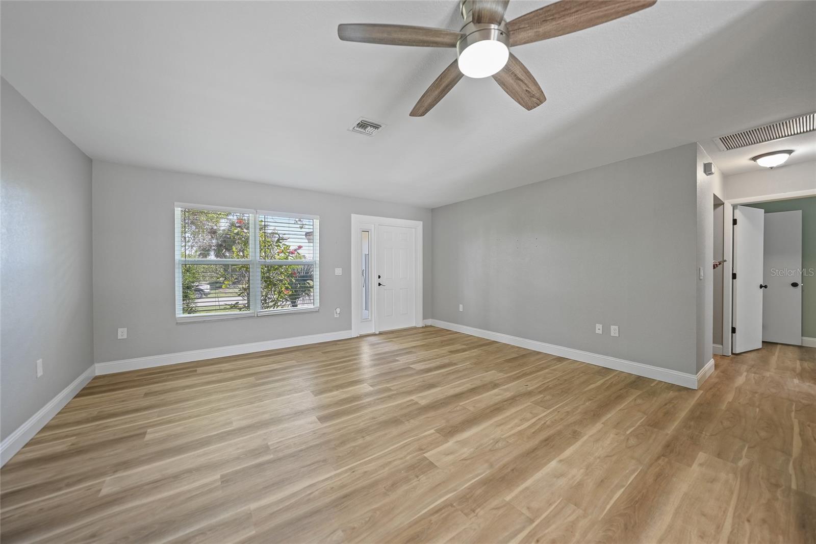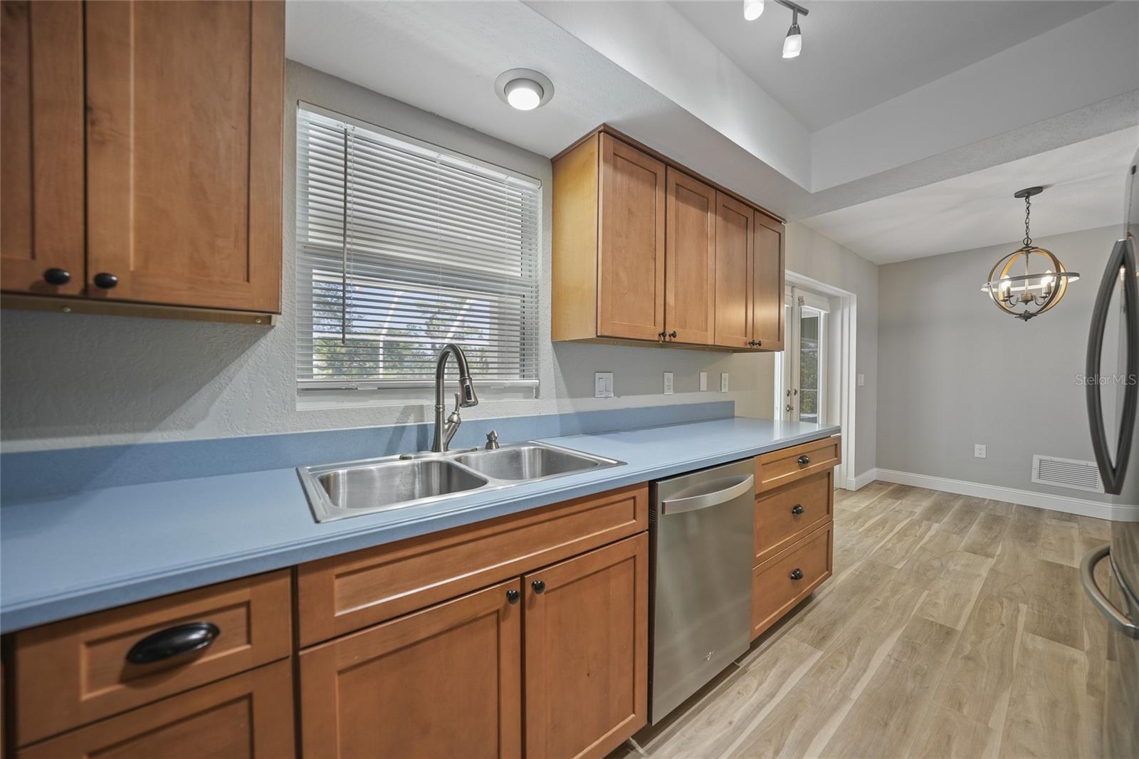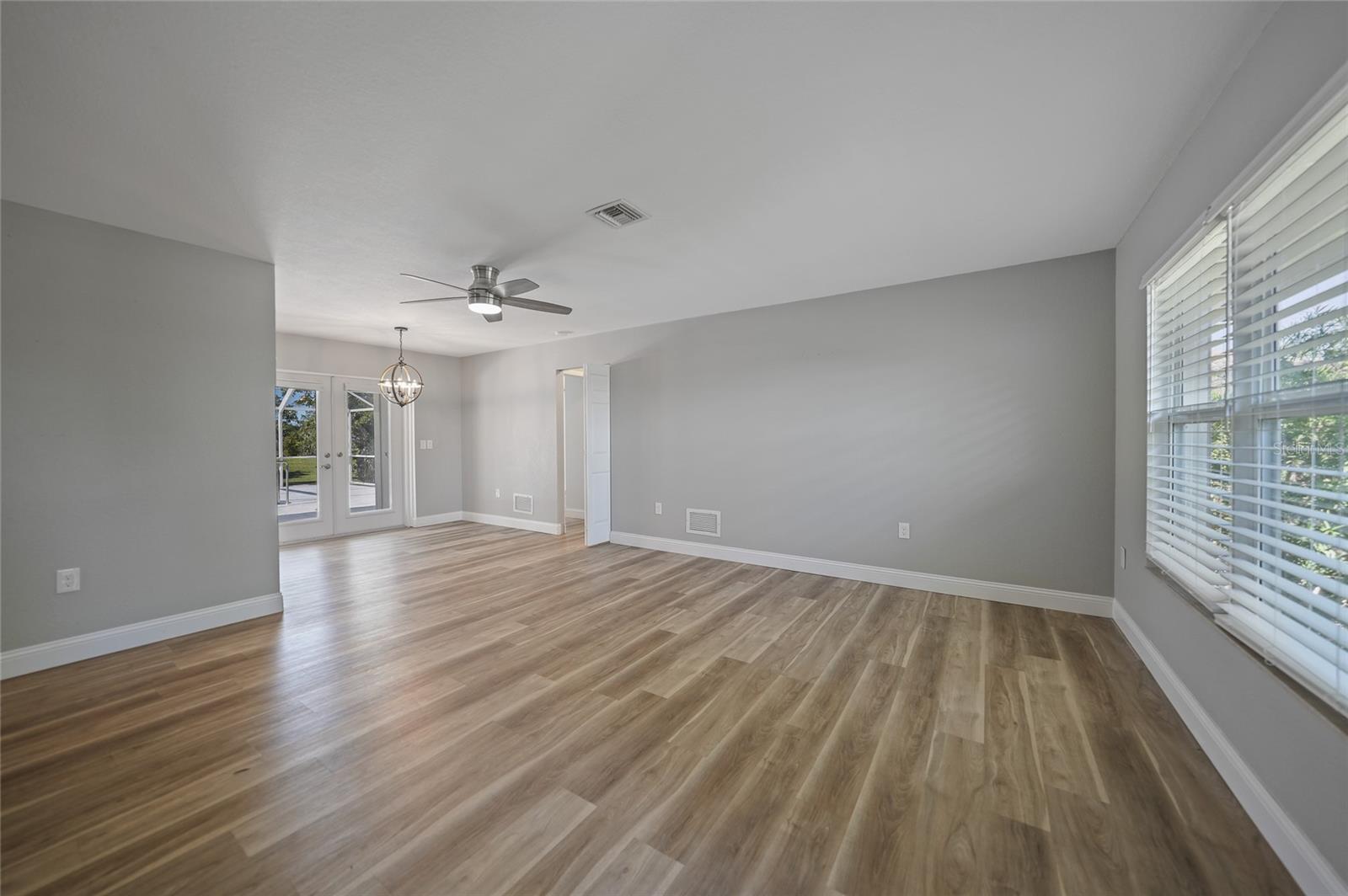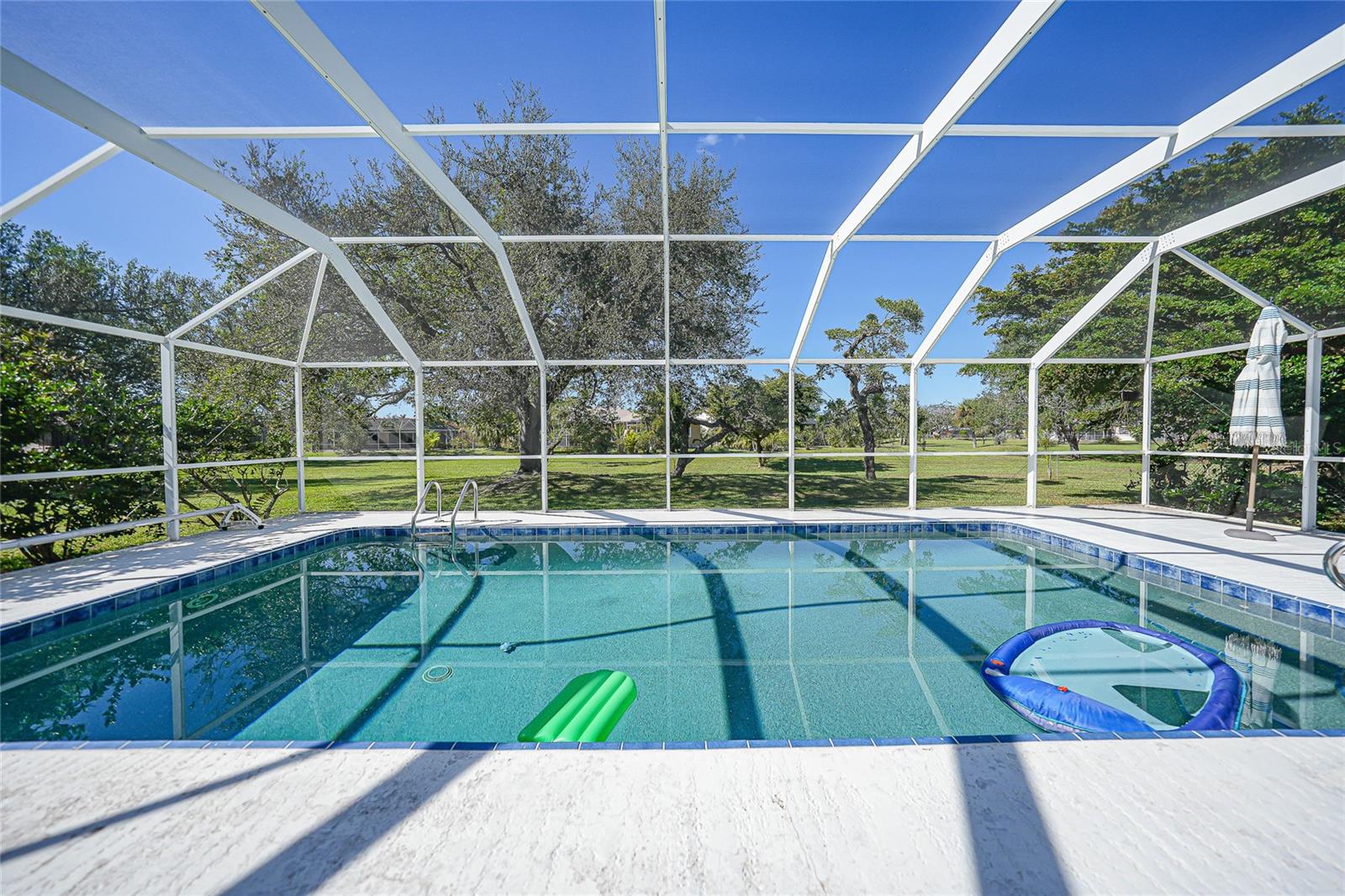 Welcome to this Punta Gorda Isles newly remodeled 3-bedroom, 2-bathroom saltwater pool home with 2-car garage and stunning park-like greenbelt views. Designed with a desirable split floor plan, this home features beautiful Luxury Vinyl Plank flooring throughout, with tile in the bathrooms. The kitchen boasts solid wood cabinets, sleek LED lighting, and stainless steel appliances, creating a modern and functional cooking space. The primary bedroom offers a walk-in closet and an ensuite bath with a walk-in shower, quartz-topped vanity, and updated lighting for a luxurious feel. Step outside to the expansive pool area perfect for entertaining, accessible from the primary bedroom, dining area, and second bedroom. Major updates include a recently resurfaced PebbleTech pool with saltwater conversion, fully remodeled bathrooms, new flooring throughout, new a/c installed June of 2023, freshly painted exterior, and impact windows. Enjoy the serene setting and unbeatable convenience, with proximity to historic downtown Punta Gorda, Fisherman’s Village, and the new Sunseeker Resort.