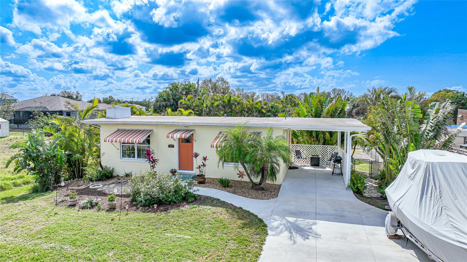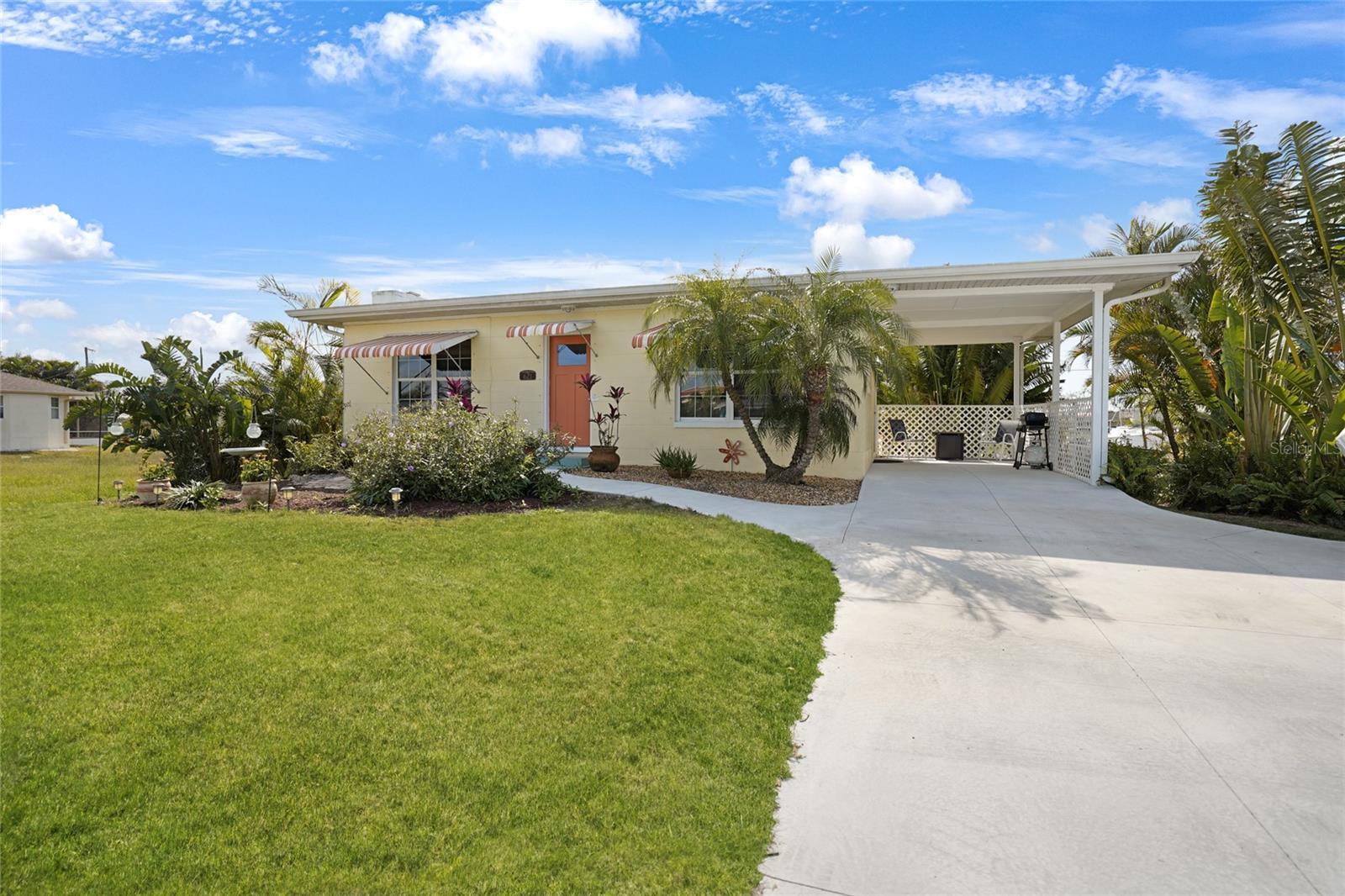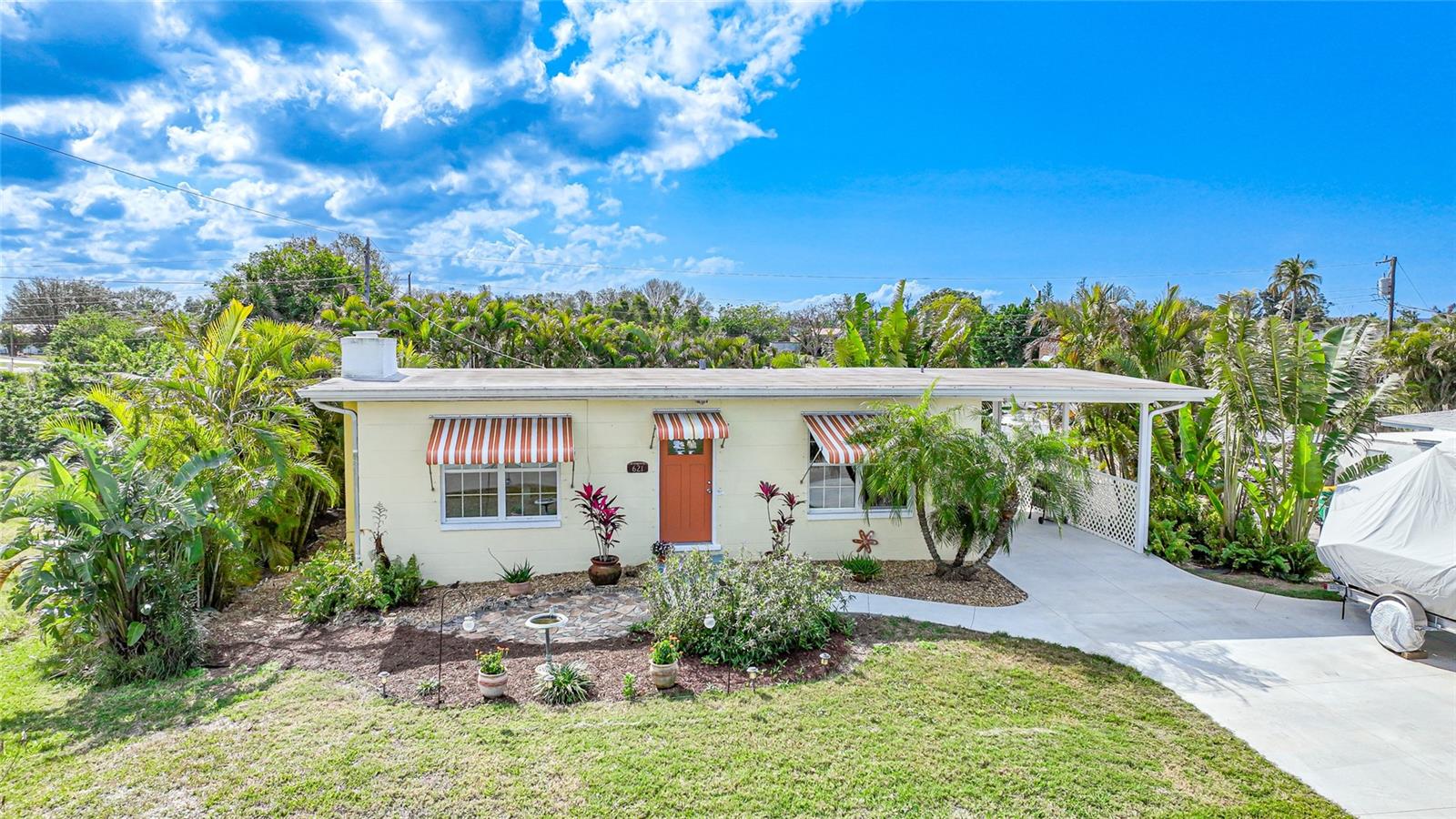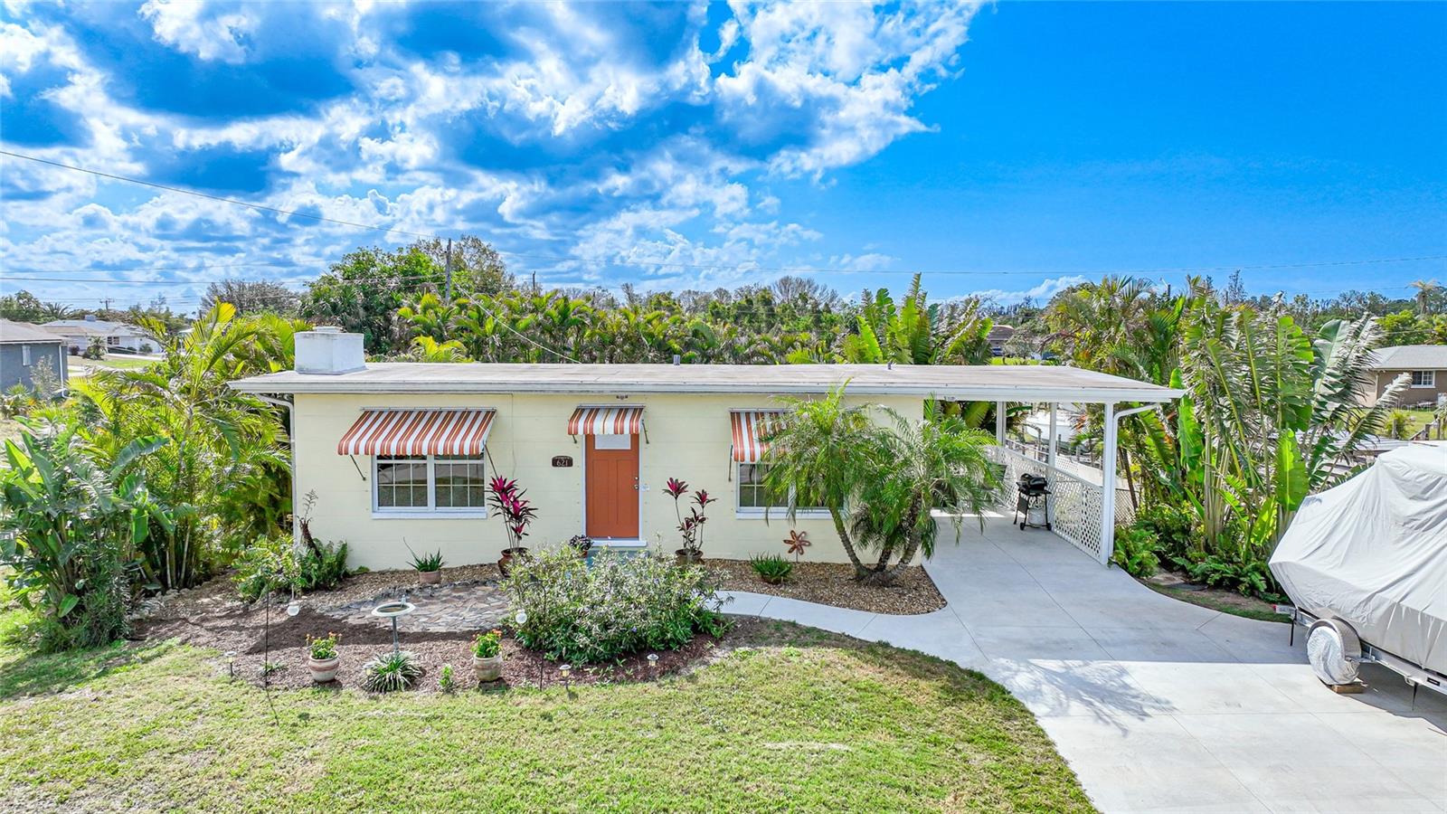 CUTE AS A BUTTON!!!! with Gulf Access. This home did NOT Flood or have any structural damage from the hurricane. There are so many new features of this home such as New A/C, New water heater, New drive way with room for a boat or RV, Roof 2021, Septic System only a few years old also. As you enter this home, your eyes are drawn to the beautiful stone wood burning fireplace and open lay out. There is lovely ceramic tile through out so no worries about having to rip out carpet. The bathroom has been tastefully updated as well. The fenced in yard is a tropical oasis with beautiful plants and landscaping. There is also a shed for extra storage. If you are a boater then this house is for you as the community has a private boat ramp. You will fall in love with the location of this home as there is a private boat ramp a few blocks away that will give you access to the gulf. This home is also close to shopping, restaurants, Fishermans village and the new Sunseekers resort. Another great thing about this home is that ALL of the furniture includng 55" smart TV can be included in the sale price of the home. Make your appointment today to tour this beautiful home. You won't be disappointed! Be sure to see the 3D tour attached to this listing.