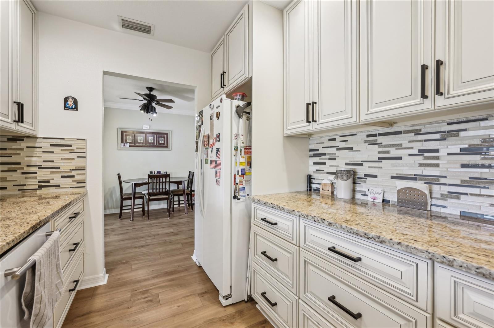 Welcome to this beautifully updated 3-bedroom, 2-bath home in the highly sought-after Deep Creek community, where peaceful lake views create a serene backdrop for everyday living. Step outside to the expansive 38' x 8.5' screened, pavered lanai—an ideal space for relaxing, entertaining, or simply enjoying the tranquil water views. Inside, you’ll find spacious bedrooms and a thoughtfully renovated kitchen featuring upgraded cabinetry and elegant granite countertops, blending style with functionality. Located in an X flood zone, this home offers added peace of mind with IMPACT windows and remote-controlled KEVLAR shades for both security and convenience. Recent updates include a newer roof, flooring, air-conditioning system, and water heater, while LeafGuard gutters provide easy, low-maintenance living. Move-in ready and meticulously maintained, this home perfectly combines modern upgrades with a calming lakefront setting—ideal for those seeking comfort, convenience, and a relaxed Florida lifestyle.