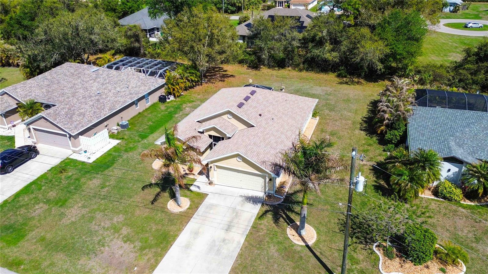 Welcome to your dream home in the highly sought-after Deep Creek neighborhood! Nestled on a quiet cul-de-sac with no through traffic, this beautifully maintained four-bedroom, two-bath residence offers the perfect blend of comfort, style, and privacy. Step inside to an inviting open floor plan featuring soaring cathedral ceilings and luxury vinyl flooring throughout, creating a light and airy atmosphere. The spacious kitchen is thoughtfully positioned to stay connected with family and guests while preparing meals, and features solid wood cabinetry for both beauty and durability. The split-bedroom layout provides added privacy, with a generously sized primary suite offering an ensuite bath complete with dual sinks and dual walk-in showers. Three additional bedrooms provide flexibility for family, guests, or a home office. Enjoy year-round relaxation in the bright three-season lanai—perfect for morning coffee or evening unwinding. Additional highlights include an inside laundry room with washer and dryer, a newer roof, and numerous extra features that make this home truly move-in ready. Don’t miss this opportunity to own a piece of paradise in Deep Creek!