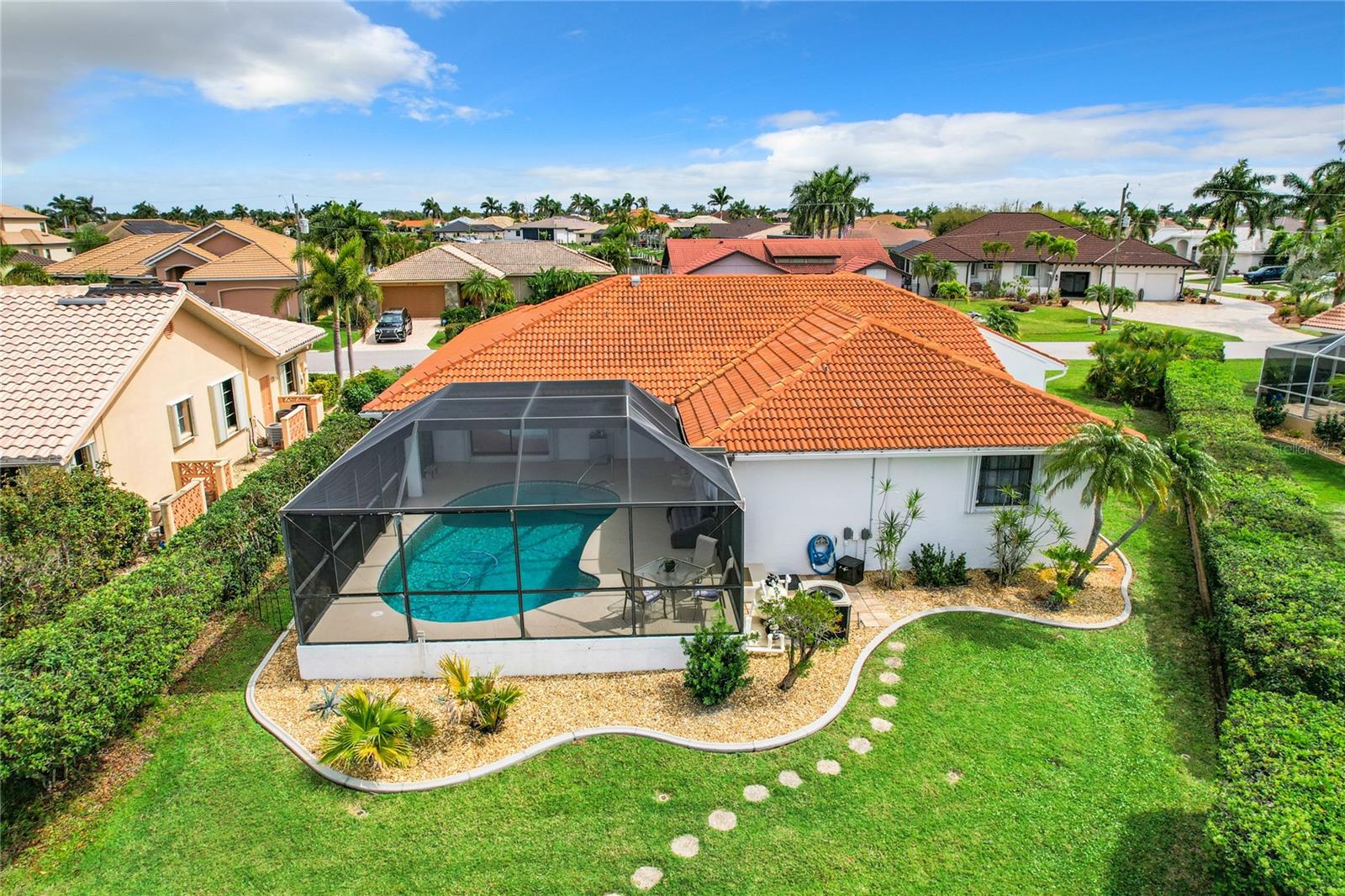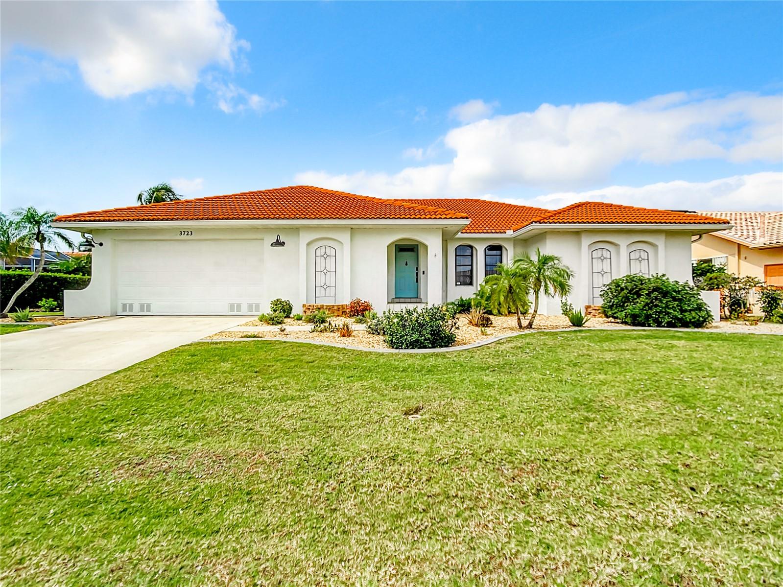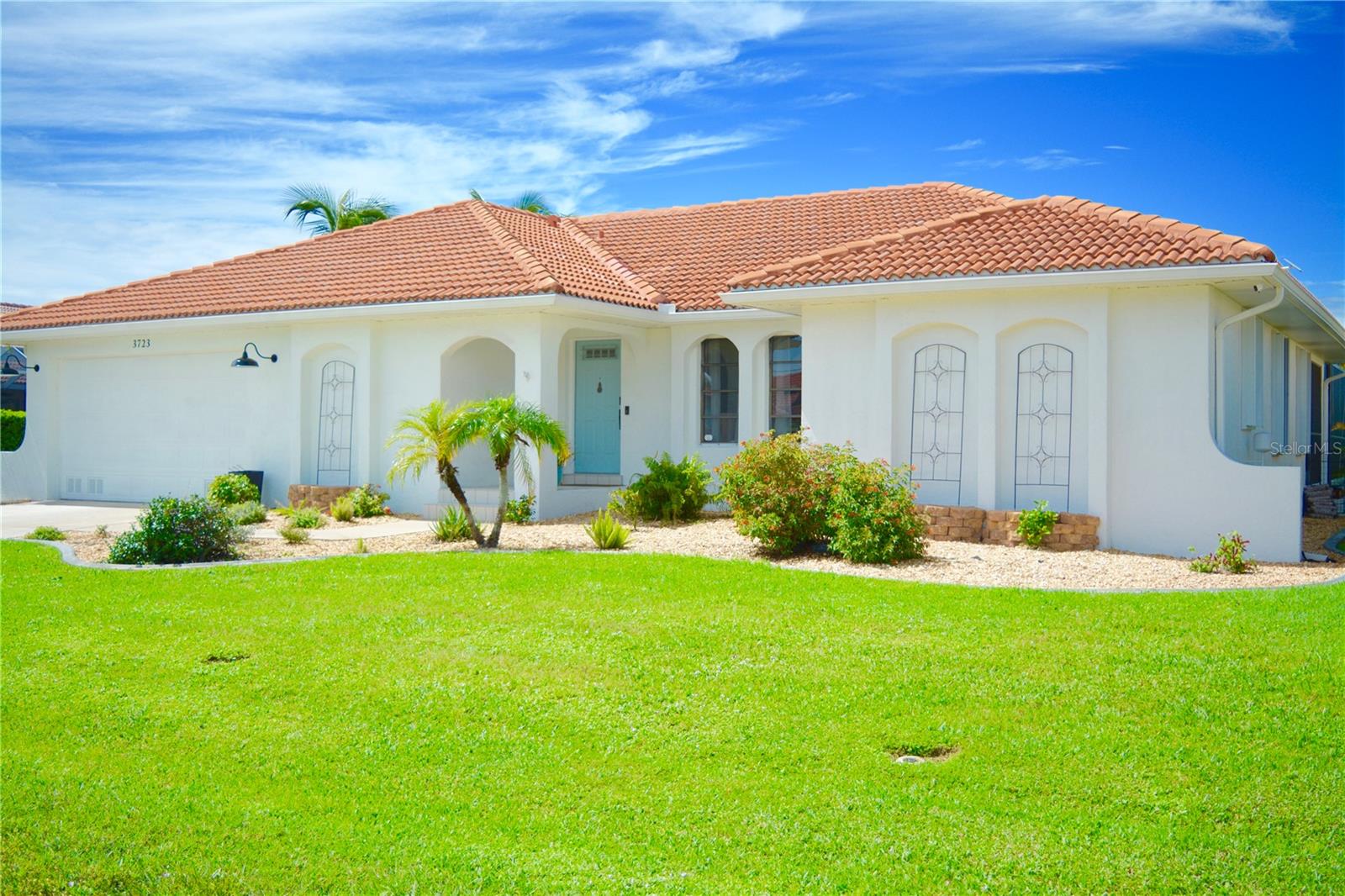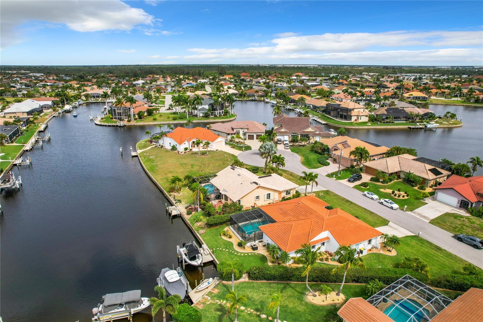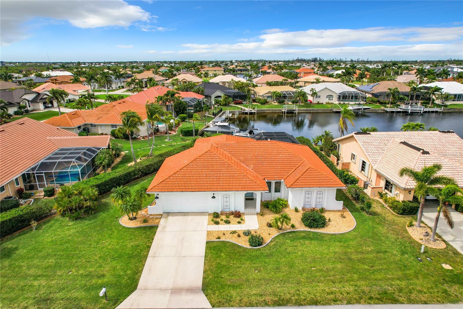 WATERFRONT pool home located in desirable deed restricted BURNT STORE ISLES with 2,269 square feet of living. This beautiful community offers water access as well as Golf at Twin Isles Country Club. Beautiful 4 bed, 2 bath CANAL HOME with POOL, 2-car garage. Salt Water Capable Pool Features 15,000 gallon 28X15X5 Ft deep with built-in Jets/sitting area and Pool Heater. Canal with wide sailboat basin providing access to Charlotte Harbor leading to the Gulf of Mexico. Minutes from the Twin Isles County Club for boaters with tennis, bocce, pool, renowned for its splendid golf course, and marina. Nestled on a tranquil cul-de-sac with 51’ OF WATER FRONTAGE/Seawall with CONCRETE DOCK with WATER and ELECTRICITY and a 12,000 lb. BOAT LIFT. The moment you arrive at this great home you will notice the Landscaped yard, cement tile roof, updated exterior paint, and lighting fixtures. Coastal décor greets you as you enter your home featuring ALL-NEW Luxury Vinyl Plank flooring throughout and interior paint. The kitchen showcases all-new stainless-steel appliances, an abundance of counter and cabinet space with updated wifi controlled interior fixtures, and new wifi ceiling fans throughout the home, breakfast bar, pantry closet, tray ceiling with new light fixture, dinette area that overlooks the pool and waterway beyond and is open to your family room. The spacious master suite, with private pool access, easily fits a king-size bedroom set and features a large walk-in closet with new closet adjustable closet shelving. Master bath with Walk-In Shower extended vanity, and linen closet. There are three additional bedrooms 2 of the 3 feature large Walk-In Closets walk-in closets and a second full bath that has direct access to the pool area. Relax while watching the Florida sunsets from your lanai. The two-car garage features an extra room that is ideal for a workshop, hobbyist, or additional storage. The home has an inside laundry room with a utility sink and extra storage, newer accordion shutters, a newly updated irrigation system, and an underground propane tank. This waterfront property is a boater’s and golfer’s dream. Close to I-75/US41 and Located in a popular boating and golf community, this home offers easy access to Yacht Club, Fishermen's Village, and the historic downtown area of Punta Gorda. You'll also have the opportunity to indulge in world-class fishing, boating, and fine dining. And if you're in the mood for a beach day, you're just a short drive away. Don't miss out on this incredible opportunity to own a home in this highly sought-after location. Come enjoy the Florida lifestyle in this impressive home. Taxes are Currently not Homesteaded. INFORMATION IS DEEMED RELIABLE BUT NOT GUARANTEED…TO BE VERIFIED BY THE BUYER AND/OR BUYER'S AGENT.