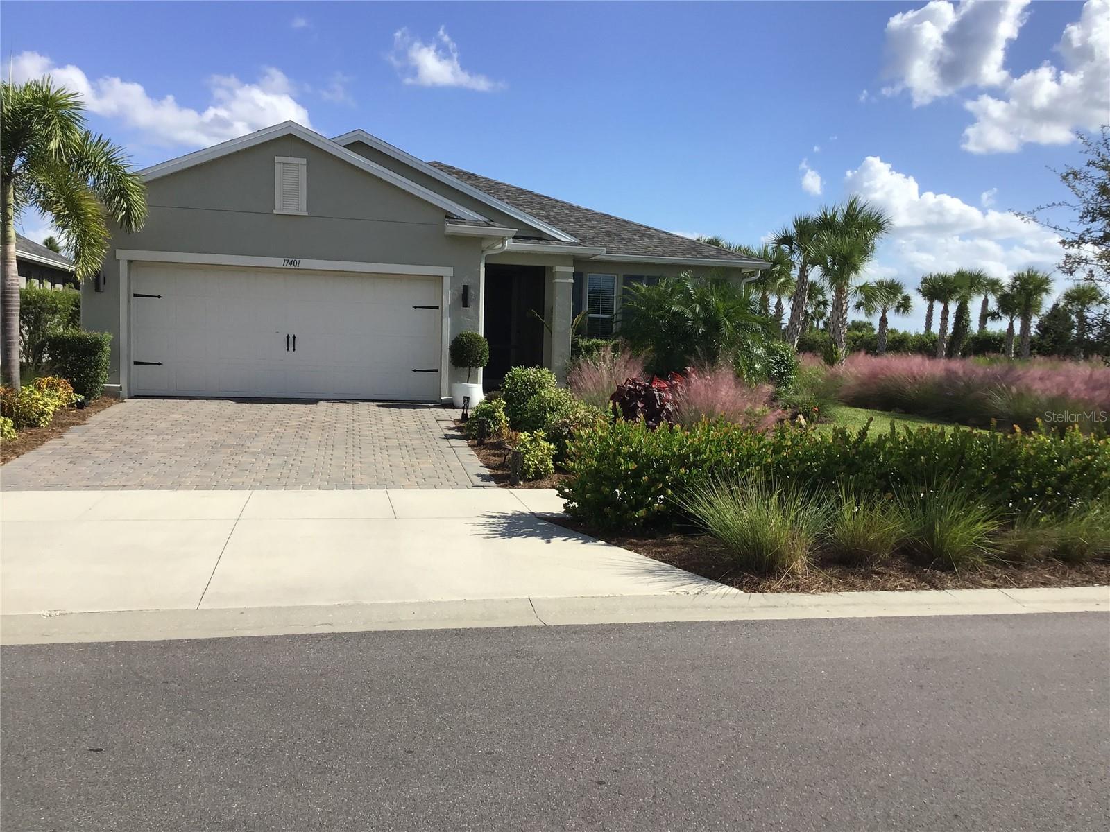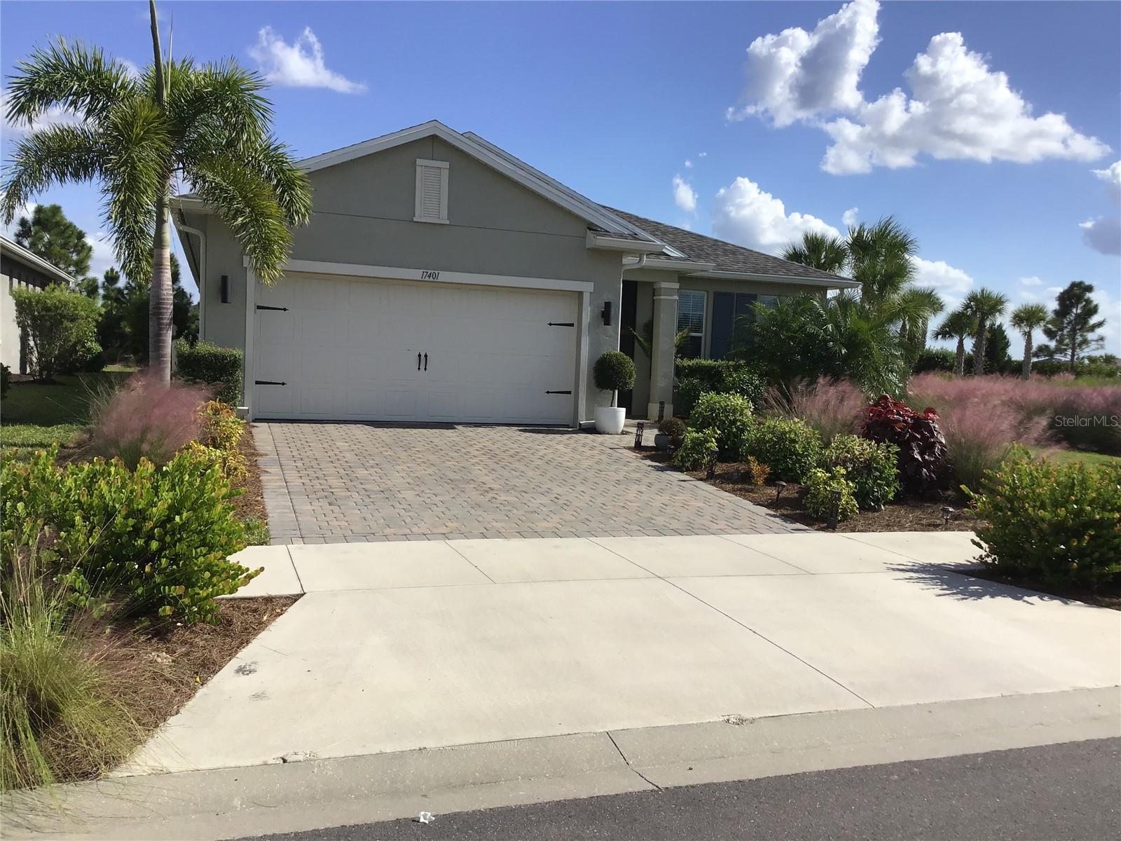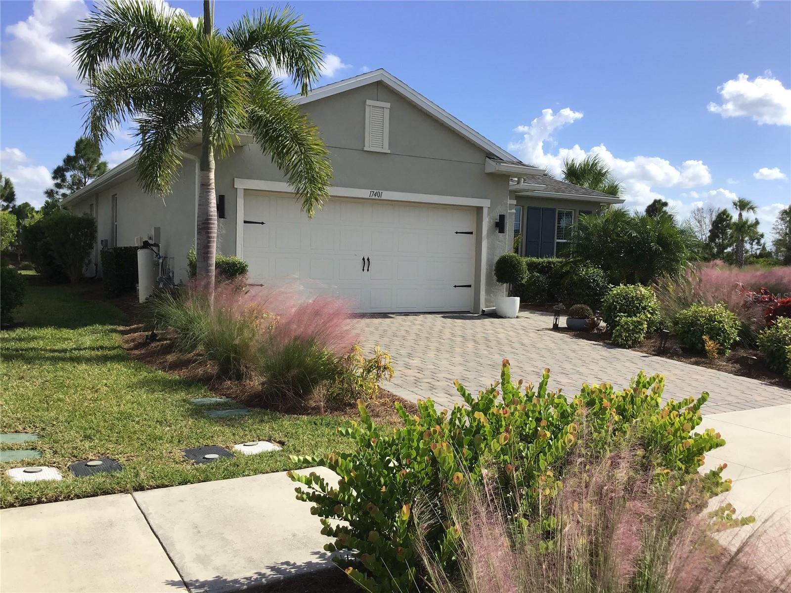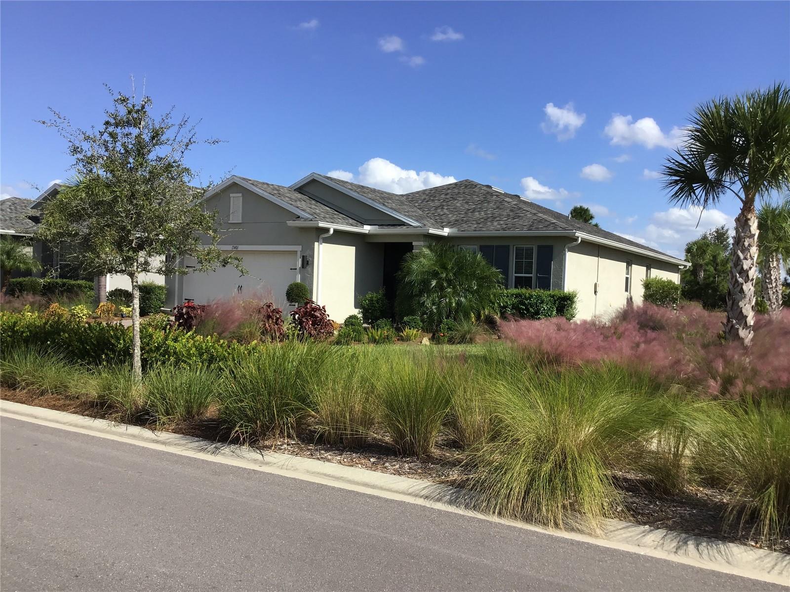 REDUCED Price. This is your next home and you can have it without waiting to build. You can have a beautiful home with upgrades and tasteful decor. This is a lovely 3 bedroom, 2 bath home with an additional flex room that can be used as a TV room, Office or Den. The kitchen has a large granite island as well as granite countertops along with a gas stove. high cabinetry and a walk-in pantry. You have the use of two different pools in the community. Home sits on a corner lot with lots of space for privacy. Owners added shiplap in the home's interior, new door hardware, a screened front entryway and upscale shades you have to see to appreciate the luxury look. Relax in a maintenance free neighborhood that is built with the environment in mind, utilizing solar power and Florida friendly plants. Come see this home. As a bonus, basic internet is included in your fees. Come see this lovely home and get your piece of Paradise.