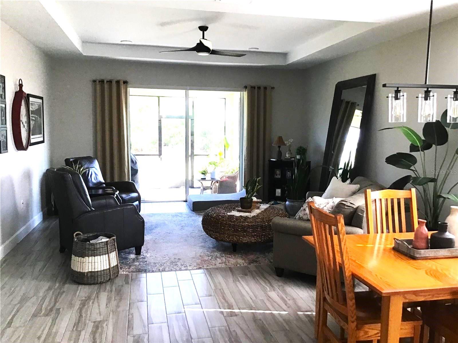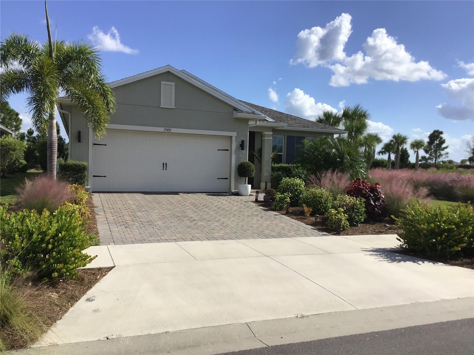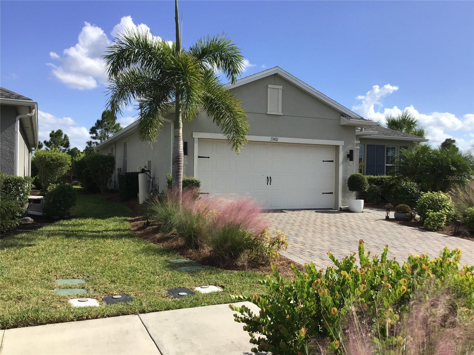 REDUCED Price. This is your next home and you can have it without waiting to build. You can have a beautiful home with upgrades and tasteful decor. This is a lovely 3 bedroom, 2 bath home with an additional flex room that can be used as a TV room, Office or Den. The kitchen has a large granite island as well as granite countertops along with a gas stove. high cabinetry and a walk-in pantry. You have the use of two different pools in the community. Home sits on a corner lot with lots of space for privacy. Owners added shiplap in the home's interior, new door hardware, a screened front entryway and upscale shades you have to see to appreciate the luxury look. Relax in a maintenance free neighborhood that is built with the environment in mind, utilizing solar power and Florida friendly plants. Come see this home. As a bonus, basic internet is included in your fees. Come see this lovely home and get your piece of Paradise.
