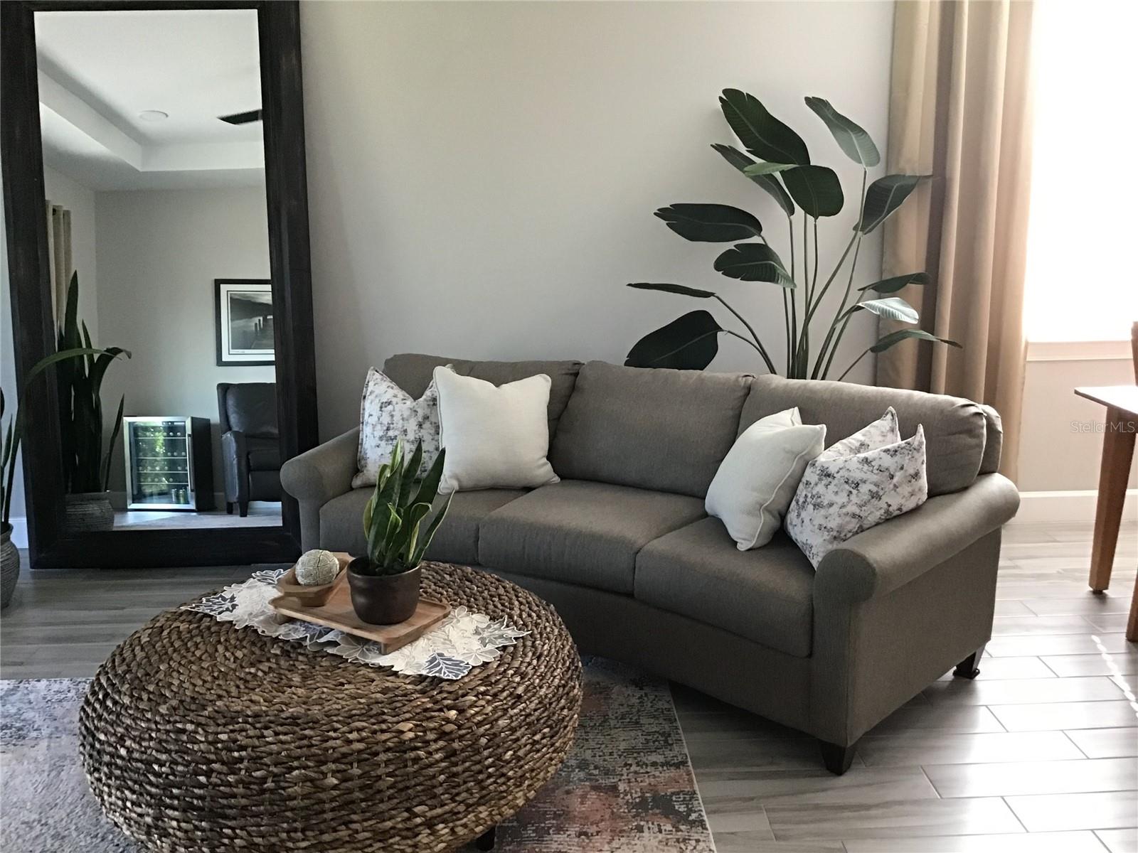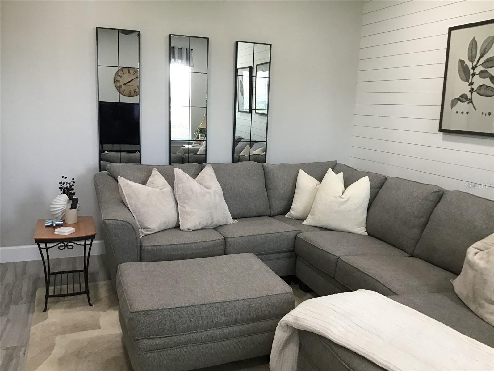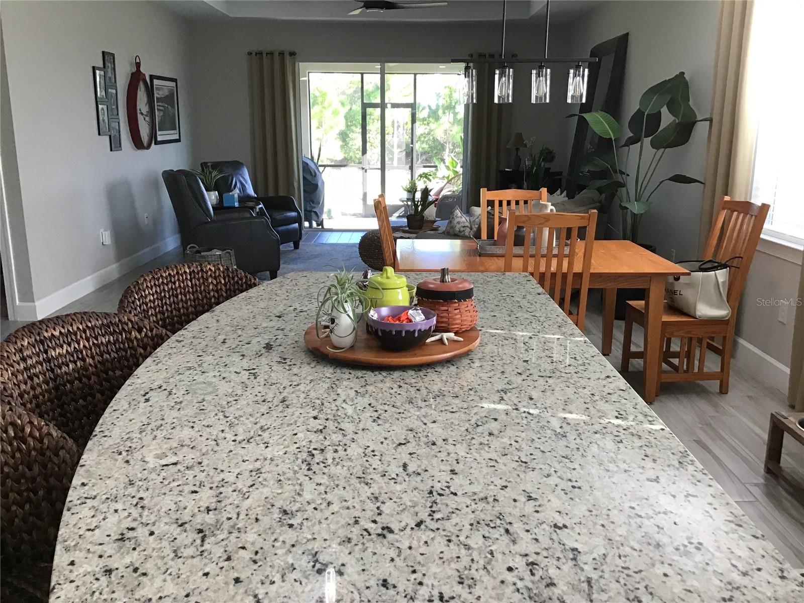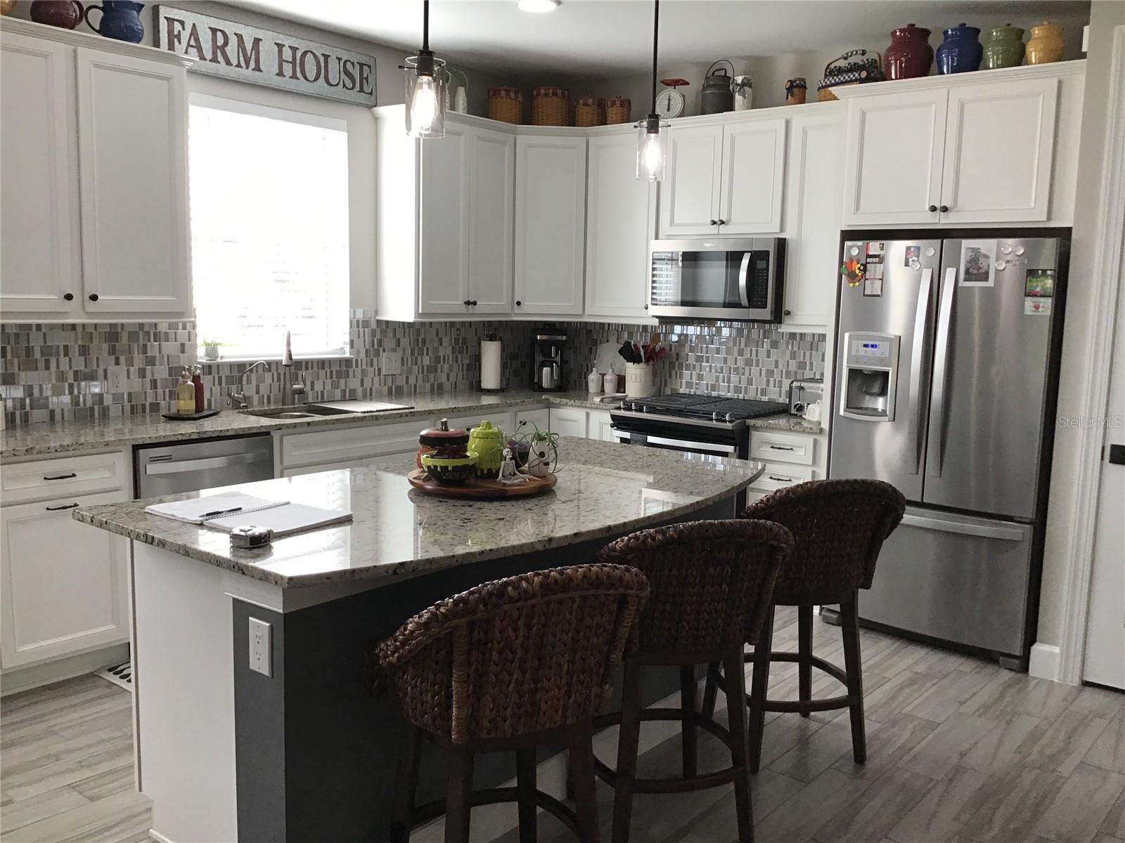 REDUCED Price. This is your next home and you can have it without waiting to build. You can have a beautiful home with upgrades and tasteful decor. This is a lovely 3 bedroom, 2 bath home with an additional flex room that can be used as a TV room, Office or Den. The kitchen has a large granite island as well as granite countertops along with a gas stove. high cabinetry and a walk-in pantry. You have the use of two different pools in the community. Home sits on a corner lot with lots of space for privacy. Owners added shiplap in the home's interior, new door hardware, a screened front entryway and upscale shades you have to see to appreciate the luxury look. Relax in a maintenance free neighborhood that is built with the environment in mind, utilizing solar power and Florida friendly plants. Come see this home. As a bonus, basic internet is included in your fees. Come see this lovely home and get your piece of Paradise.