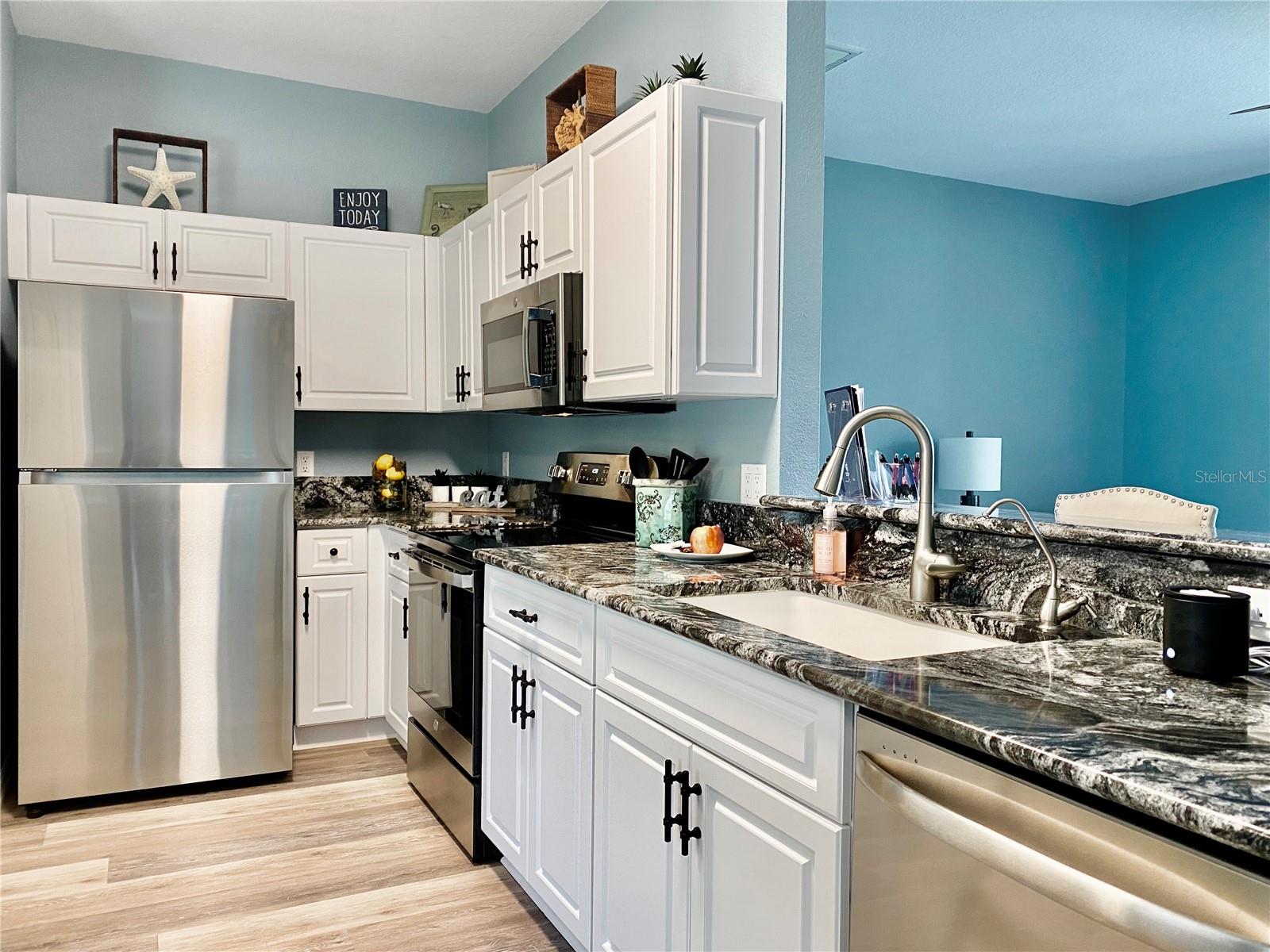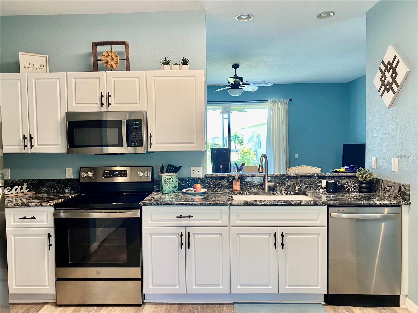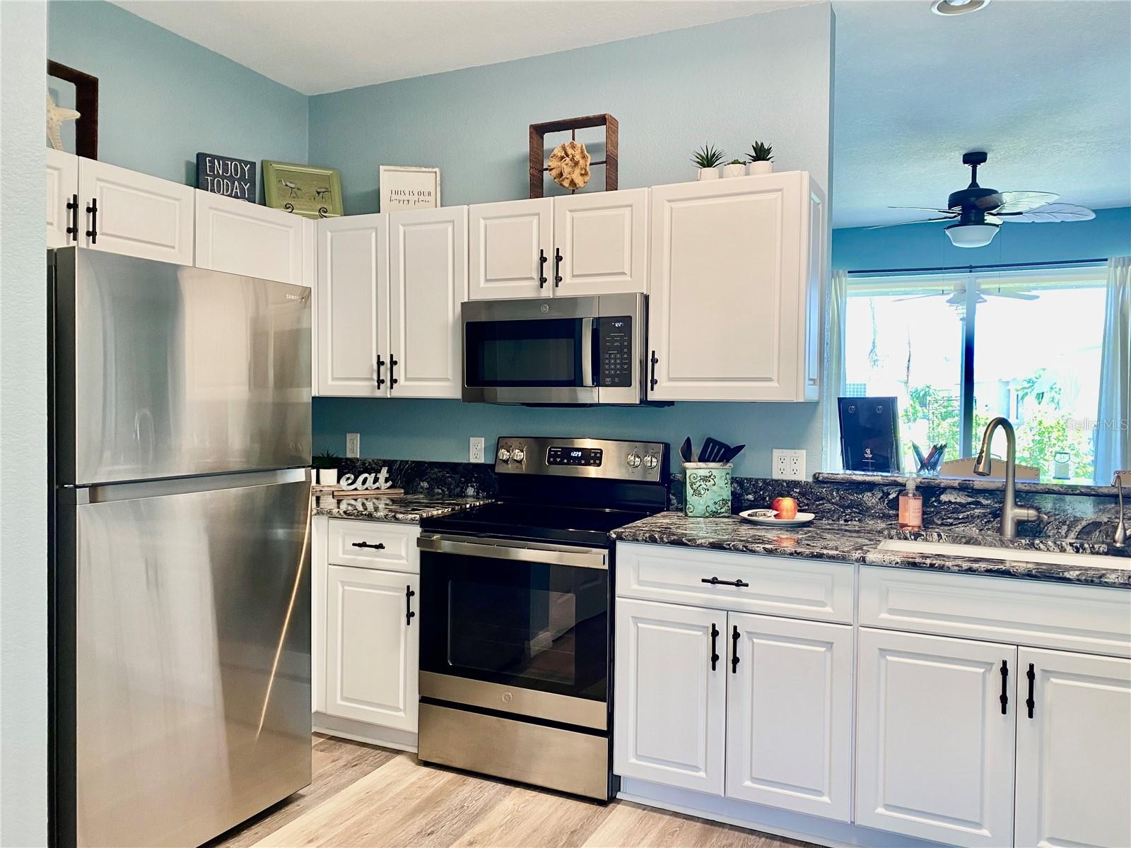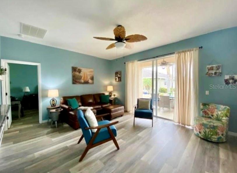 **MOTIVATED SELLER-MOVE-IN READY**Welcome home to the HIGHLY sought after community of Kings Gate Golf & Country Club-RESORT STYLE LIVING at its best! Very ACTIVE 55+community with tons of events and activities to enjoy. This beautifully UPDATED single-family home offers 2 bedrooms, 2 bathrooms, 2 car garage, PLUS a BONUS room. Walking up to the home you will notice the lush landscaping and enter the home through the screened-in front patio. This home has TONS of improvements, some of the KEY upgrades are luxury vinyl plank flooring (2023) THROUGHOUT (no carpet), hurricane impact windows (2022), roof (2022), gutters (2022), hot water heater (2024), new stainless-steel appliances (2023), professionally refaced kitchen cabinets, kitchen sink, garbage disposal, faucet, new light fixtures/ceiling fans, washer & dryer (2023), and a meticulous maintained HVAC system (2015) . The home is tastefully decorated, offering high ceilings and lots of windows allowing tons of natural sunlight to enter. The kitchen has granite countertops, reverse osmosis, a breakfast bar, and a large pantry. The well-designed home has a split floorplan that offers privacy for your guests to enjoy their own spaces. The guest bathroom has a tub/shower combo and single vanity. The owner’s En-suite has a LARGE walk-in closet. The primary bathroom has a dual vanity and ceramic tile walk-in shower. The BONUS room is at the front of the home and can be used as a dining room/den/office. From the living room you can access the covered screened-in lanai through the sliding glass doors. The lanai is the perfect place for morning coffee, evening drinks, entertainment, or simply to relax. The home offers an attached two-car garage with Gorilla floor epoxy coating and enters into the spacious kitchen with an eat-in nook and inside laundry. You are just a quick golf cart ride, short walk, or bike ride to the AMAZING clubhouse with MANY social activities (just to name a few: karaoke, trivia and concerts), full-time Activities Director, Lions Den restaurant, GOLF, pro shop, fitness center(s), computer room, movie room, library, billiards, tennis/pickleball, shuffleboard, bocce ball, lawn bowling and Olympic size HEATED pool & hot tub, (water aerobics and water volley ball are a blast to join in on). The community is gated and includes lawn maintenance, is pet-friendly, and has low HOA and NO CDD fee. Located close to shopping, dining, Fisherman’s Village, Sunseeker Resort, hospitals, walking/biking trails and the interstate. Within a short 30-minute drive, you will find the North Port Aquatic Center, CoolToday Atlanta Braves spring training facility, Downtown Wellen Park area, Downtown Historical Venice and of course our gorgeous gulf coast beaches. Buyer is required to pay a ONE-TIME $500 Capital Contribution fee to Kings Gate Homeowners Association at closing. Paradise awaits you, call TODAY to schedule your private showing!