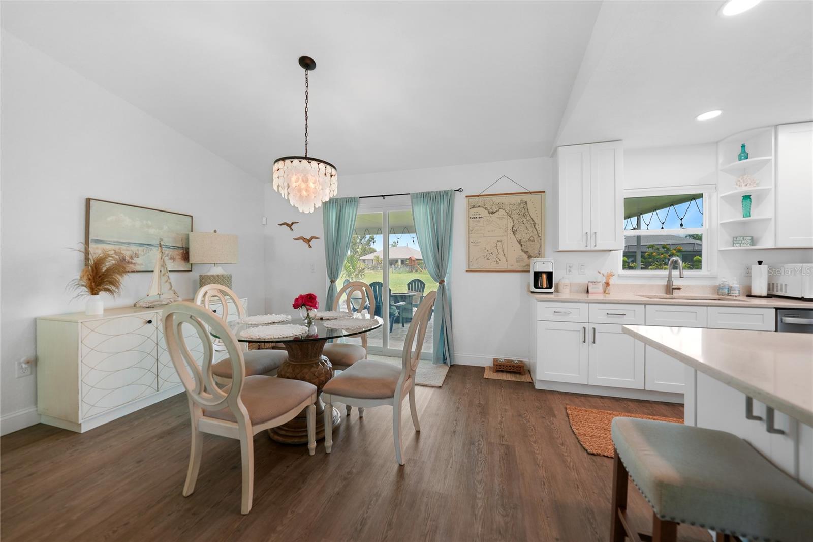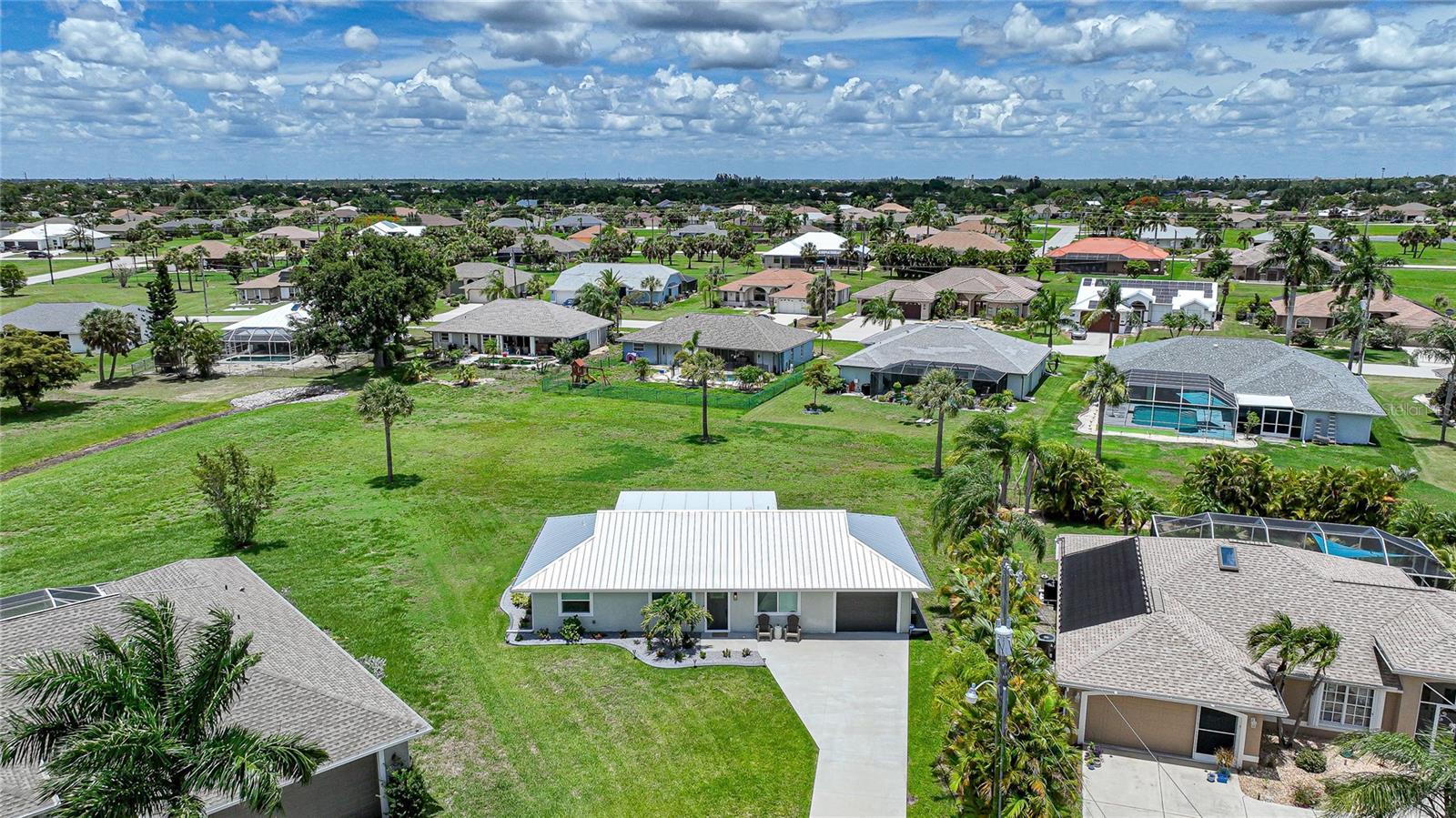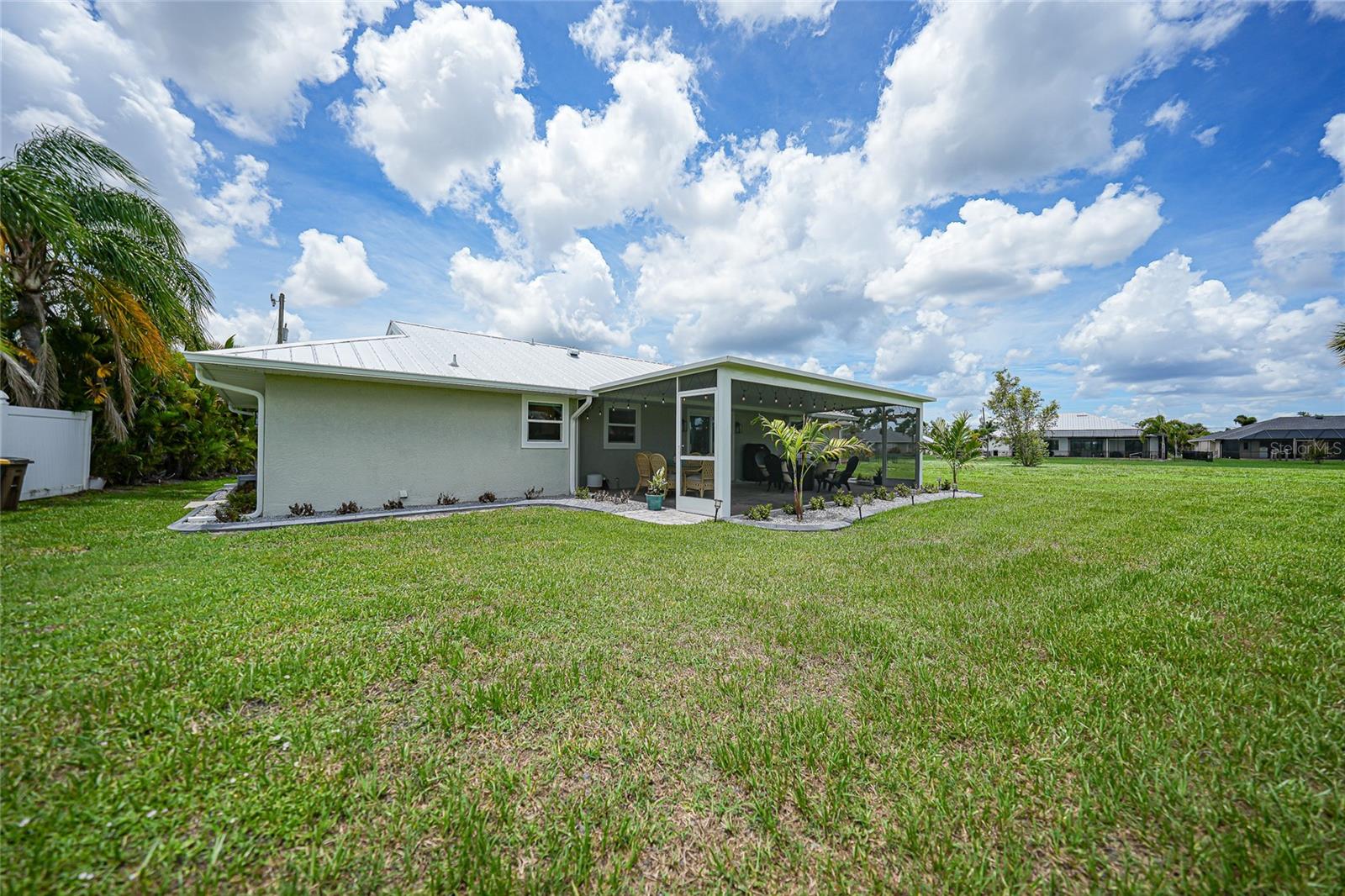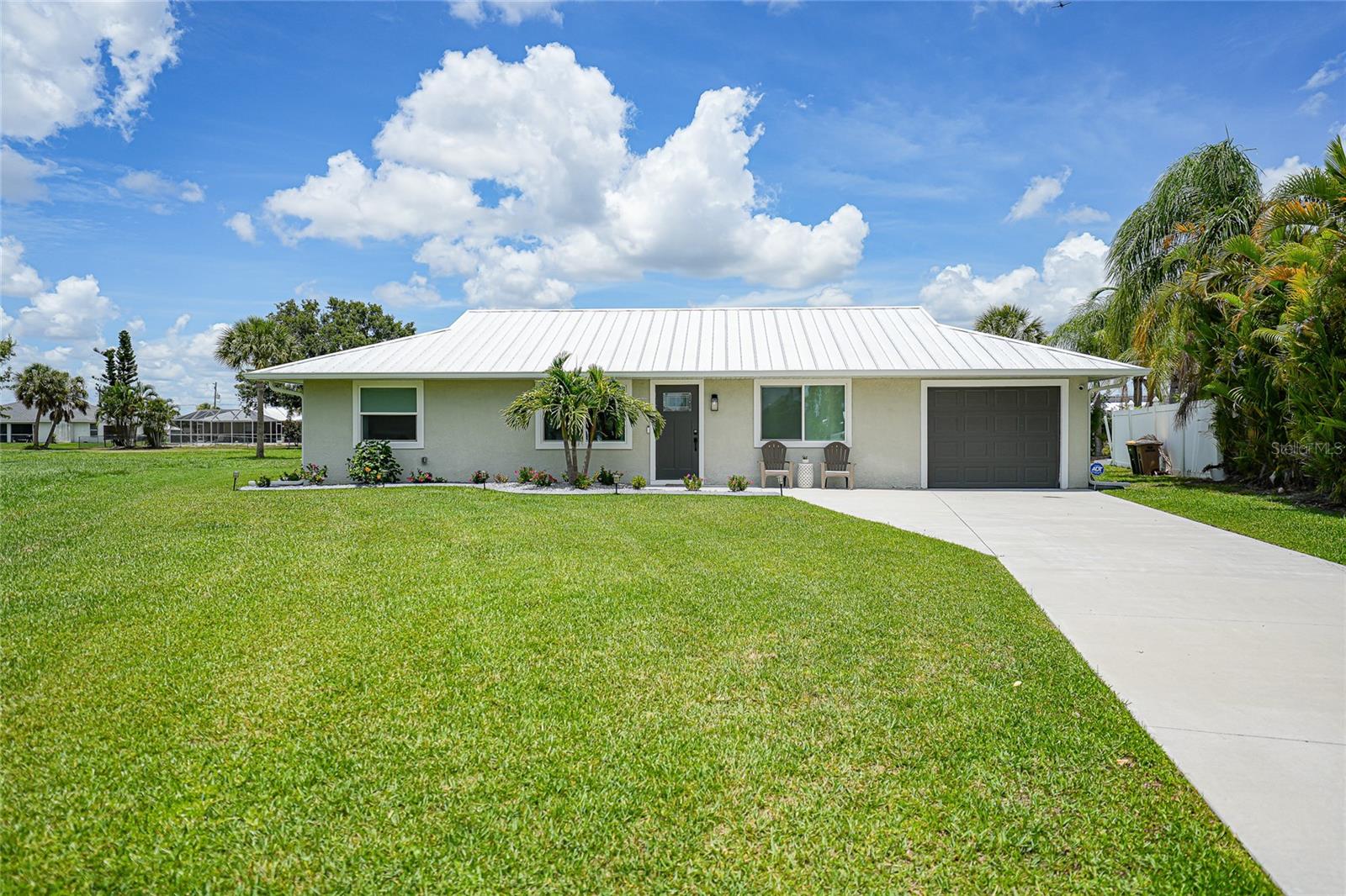 Step into this beautifully renovated modern contemporary ranch home, perfectly nestled in the serene and sought-after community of Burnt Store Meadows. This home is a warm and sunny winter home or the perfect AirBNB investment with no rental minimums! Boasting 3 spacious bedrooms and 2 luxurious bathrooms, this home is a masterpiece of style and comfort. Every inch of this home has been meticulously updated with high-end finishes, expensive updates such as hurricane rated impact windows/doors, new driveway and culvert, new insulated metal roof, newer AC, and contemporary design elements. From sleek luxury vinyl flooring to designer fixtures such as the Kraus sink basin and Krause Oletto faucet, experience the pinnacle of modern living. The open floor plan seamlessly connects the living, dining, and kitchen areas, creating a perfect space for entertaining and family gatherings. Cook like a chef in your fully upgraded kitchen, featuring state-of-the-art appliances, custom cabinetry, and stunning quartz countertops. Retreat to your master suite, complete with a spa-like en-suite bathroom and ample closet space. Two additional bedrooms provide comfort and versatility for family or guests. Both bathrooms have been elegantly designed with modern fixtures and a calming ambiance that will make every day feel like a spa day. Enjoy Florida's beautiful weather in your spacious backyard which is the perfect canvas to add a gorgeous new pool (See attached pool quote) or barbecues, outdoor dining, or simply relaxing in the sun. Situated in the picturesque Burnt Store Meadows of Punta Gorda yet just minutes away from local amenities such as biking, kayaking, boating, golf, and pickle ball, schools, parks, and the vibrant downtown Punta Gorda. Easy access to I-75 and US-41 ensures a smooth commute.