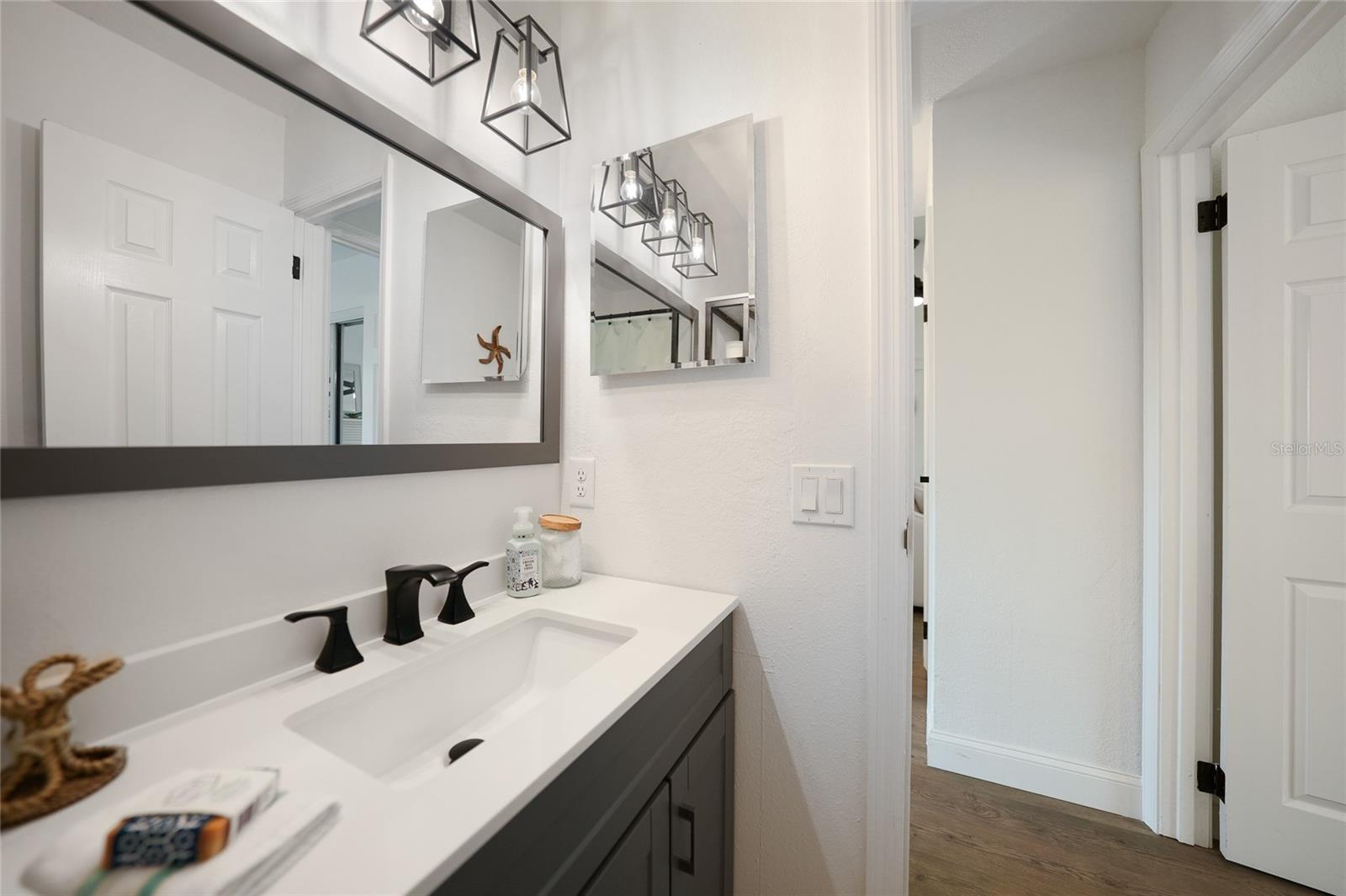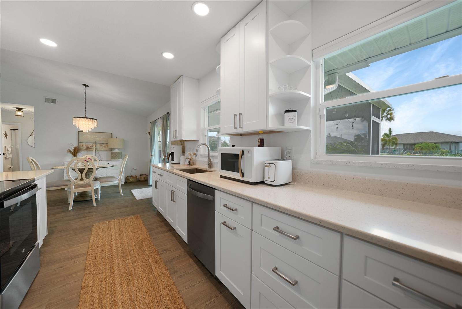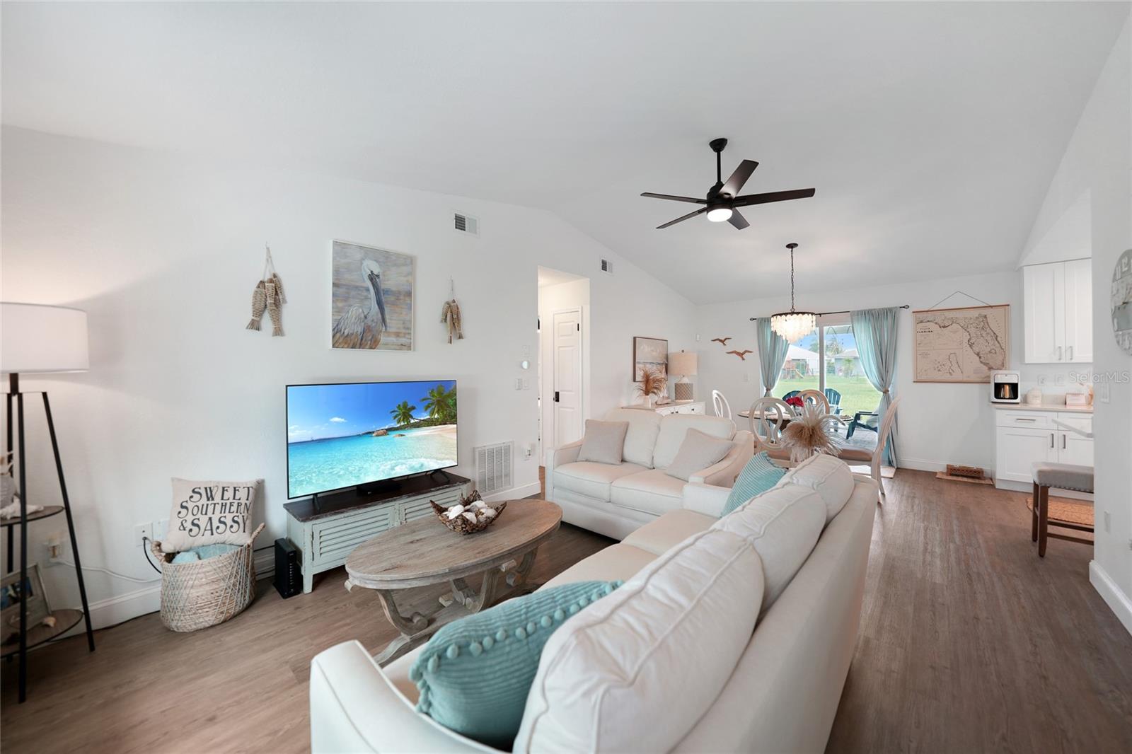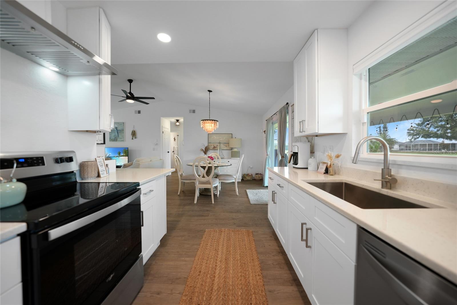 Step into this beautifully renovated modern contemporary ranch home, perfectly nestled in the serene and sought-after community of Burnt Store Meadows. This home is a warm and sunny winter home or the perfect AirBNB investment with no rental minimums! Boasting 3 spacious bedrooms and 2 luxurious bathrooms, this home is a masterpiece of style and comfort. Every inch of this home has been meticulously updated with high-end finishes, expensive updates such as hurricane rated impact windows/doors, new driveway and culvert, new insulated metal roof, newer AC, and contemporary design elements. From sleek luxury vinyl flooring to designer fixtures such as the Kraus sink basin and Krause Oletto faucet, experience the pinnacle of modern living. The open floor plan seamlessly connects the living, dining, and kitchen areas, creating a perfect space for entertaining and family gatherings. Cook like a chef in your fully upgraded kitchen, featuring state-of-the-art appliances, custom cabinetry, and stunning quartz countertops. Retreat to your master suite, complete with a spa-like en-suite bathroom and ample closet space. Two additional bedrooms provide comfort and versatility for family or guests. Both bathrooms have been elegantly designed with modern fixtures and a calming ambiance that will make every day feel like a spa day. Enjoy Florida's beautiful weather in your spacious backyard which is the perfect canvas to add a gorgeous new pool (See attached pool quote) or barbecues, outdoor dining, or simply relaxing in the sun. Situated in the picturesque Burnt Store Meadows of Punta Gorda yet just minutes away from local amenities such as biking, kayaking, boating, golf, and pickle ball, schools, parks, and the vibrant downtown Punta Gorda. Easy access to I-75 and US-41 ensures a smooth commute.