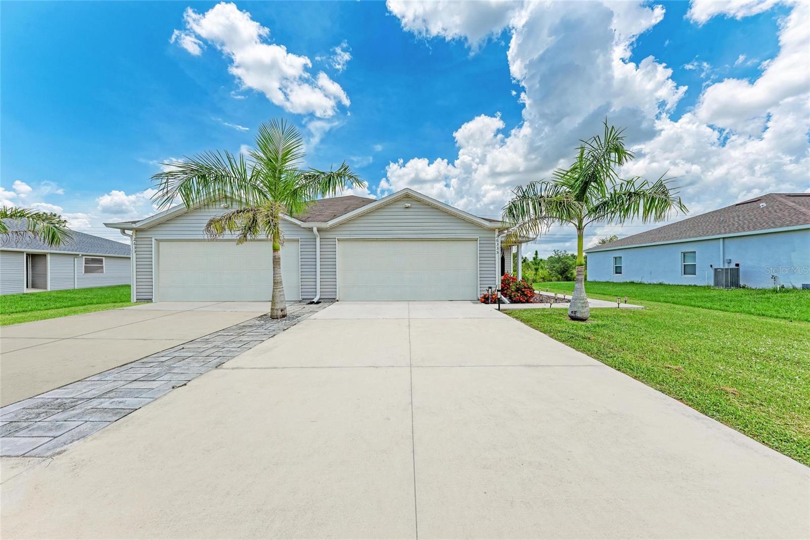 Don't miss this incredible opportunity to own a well-appointed duplex in the highly desirable Deep Creek community of Punta Gorda! Each side of this property features 3 spacious bedrooms, 2 full bathrooms, interior laundry rooms, and attached 2-car garages. The open-concept floor plans are designed for modern living, with kitchen islands, ample cabinet space, and full appliance packages including dishwashers, ranges, and refrigerators. Enjoy Florida living at its finest with private outdoor patios and an open backyard. Located less than half a mile from Deep Creek Golf Club, this property offers unmatched convenience with quick access to I-75, placing you just minutes from shopping, restaurants, Starbucks, multiple fitness centers, and more. The surrounding Punta Gorda, Port Charlotte, and Charlotte Harbor areas are renowned for world-class fishing, boating, and golfing, with stunning Gulf Coast beaches just a short drive away. Deep Creek is perfectly positioned between Sarasota and Fort Myers, offering easy access to everything Southwest Florida has to offer. Whether you're looking to invest or settle into a peaceful yet connected lifestyle, this duplex checks all the boxes!
