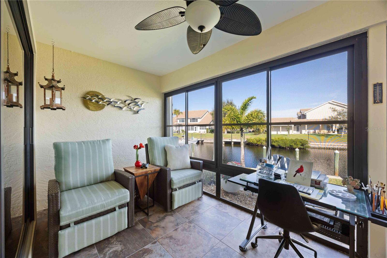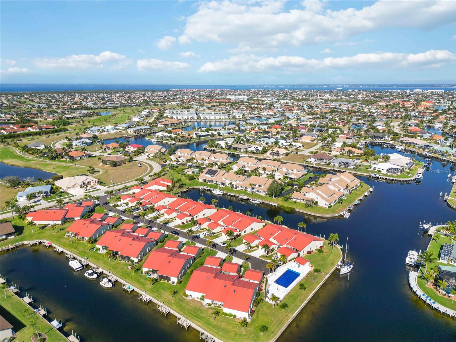 Discover relaxed WATERFRONT living in this beautifully updated canal-front condo, complete with its own private dock featuring water and electricity—perfect for boating enthusiasts. Enter through a charming courtyard entrance that sets the tone for this inviting residence, offering two spacious bedrooms plus a versatile den ideal for a home office or guest space. The home has been completely updated and features HURRICANE-IMPACT WINDOWS THROUGHOUT for peace of mind. Enjoy serene water views from both the enclosed patio and the outdoor paver patio, creating ideal spaces for year-round relaxation and entertaining. Inside, you’ll find tile flooring throughout the entire home, complemented by rich wood cabinetry and elegant granite countertops in both the kitchen and bathrooms. Additional highlights include a BRAND-NEW ROOF and thoughtful upgrades throughout, reflecting pride of ownership. Located in an intimate boutique community, residents also enjoy access to a community pool, adding to the resort-style lifestyle. This is a rare opportunity to own a move-in-ready waterfront condo that perfectly blends comfort, style, and coastal living. This location is also close to it all-shopping, restaurants, golf courses medical and more.