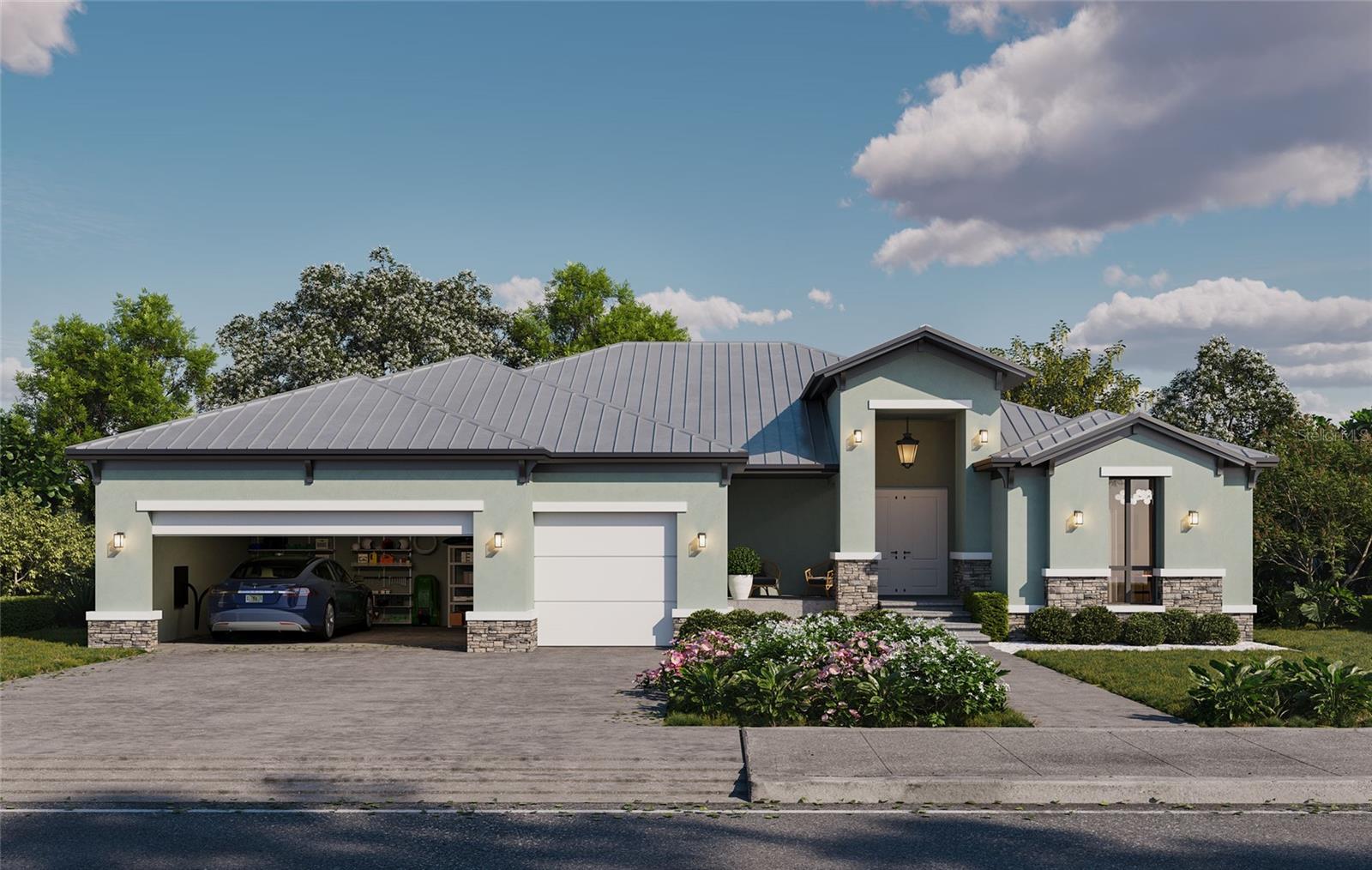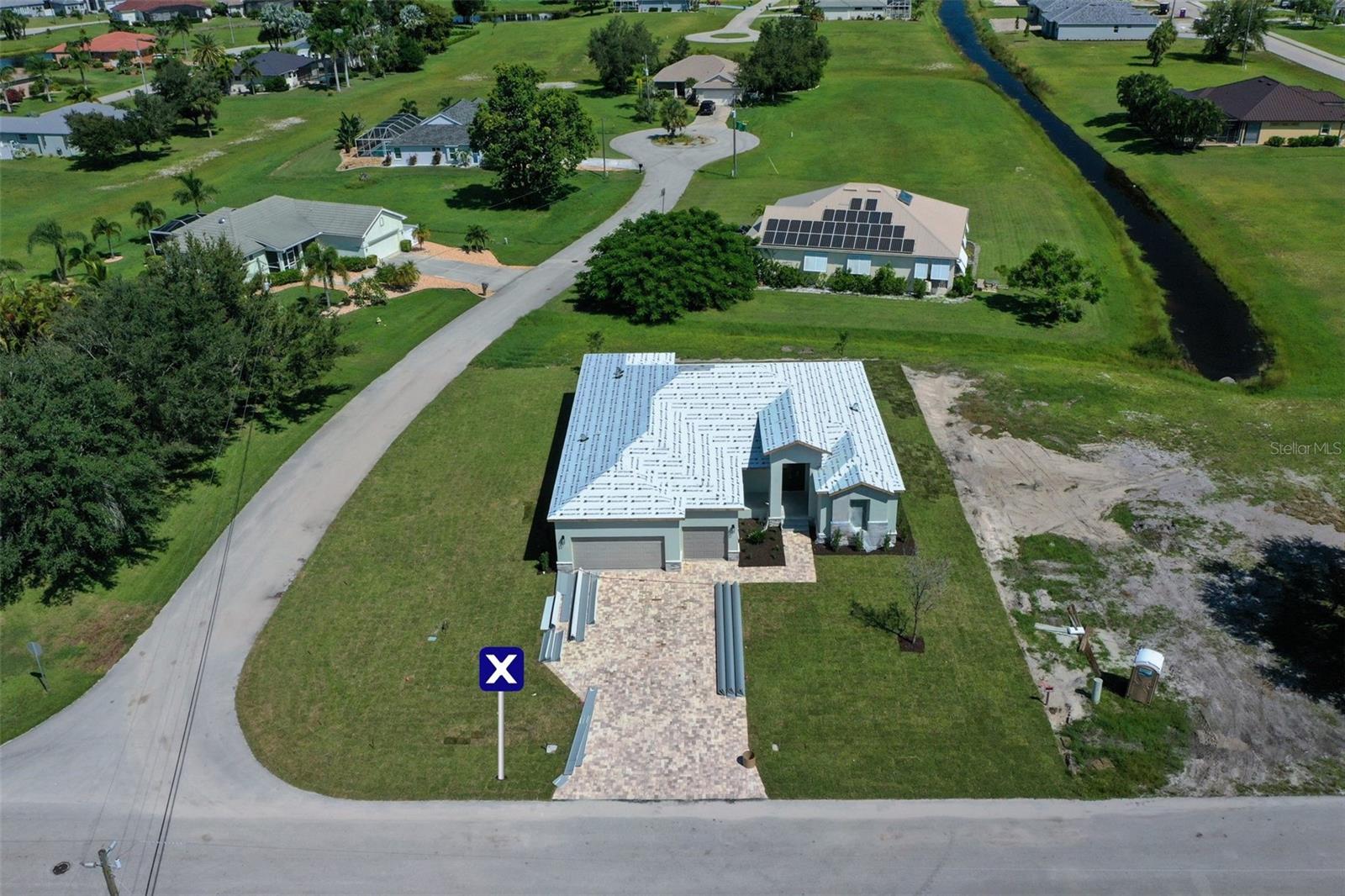 Quick Move In! Onx Homes presents this stunning New Construction Home on Burnt Store Lakes Bay Front Community in Punta Gorda. this home is sitting on a desirable corner lot west of Cape Horn Blvd,and is now under construction with an estimated delivery date of July/August 2024. Welcome to Paradise at Burnt Store Lakes. Explore our exclusive Onx Homes, crafted with our patented X+ Construction™, boasting pure concrete walls, hurricane impact windoes and doors,steel roof trusses, metal roof, elevated foundation againts flooding, ensuring safety for you and a home that will last a lifetime with minimum maintenance.This exquisitely designed home features 4 bedrooms, 3 bathrooms, and a 3-car garage with room for your gold cart. With lofty ceilings and large windows inviting abundant natural light, the spacious interior with a designer-style kitchen with tall soft-close cabinets, stone countertops, a generously sized island with seating, and ample pantry space. All appliances are energy-efficient for added sustainability. Elegantly painted walls and large format porcelain tile flooring adorn each room. The guest bedrooms and office are conveniently placed away from the owner's suite for optimal privacy and tranquility. The owner's bathroom suite boasts large porcelain flooring and walls, a luxurious combination of a spacious shower and freestanding soaking tub, a linen closet, and a generously sized walk-in closet. Additionally, enjoy the convenience of a well-appointed laundry area with washer and dryer, as well as a garage with an EV charger connection for your golf cart. Experience an unparalleled coastal resort lifestyle with a brand-new Onx home, all at an unbeatable price!At Burnstore Lakes you will experience the ultimate waterfront lifestyle with direct Gulf access through Burnt Store Marina. Take advantage of on-site waterfront dining, entertainment, a stunning community pool, a state-of-the-art fitness center, executive golf, tennis, pickleball, and much more. Images depicted are of a model home and are for illustrative purposes only. Buyers Incentives: Closing cost credits or lower fixed interest rates to accommodate your needs.Ask for details.