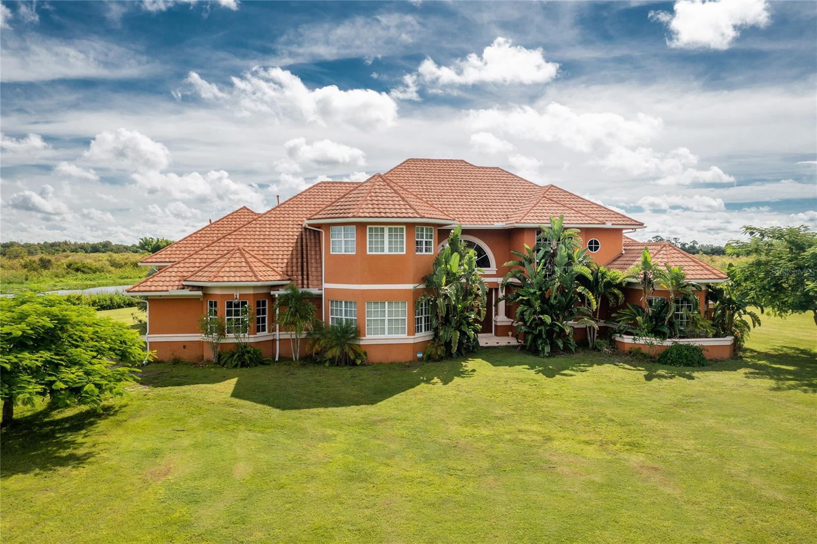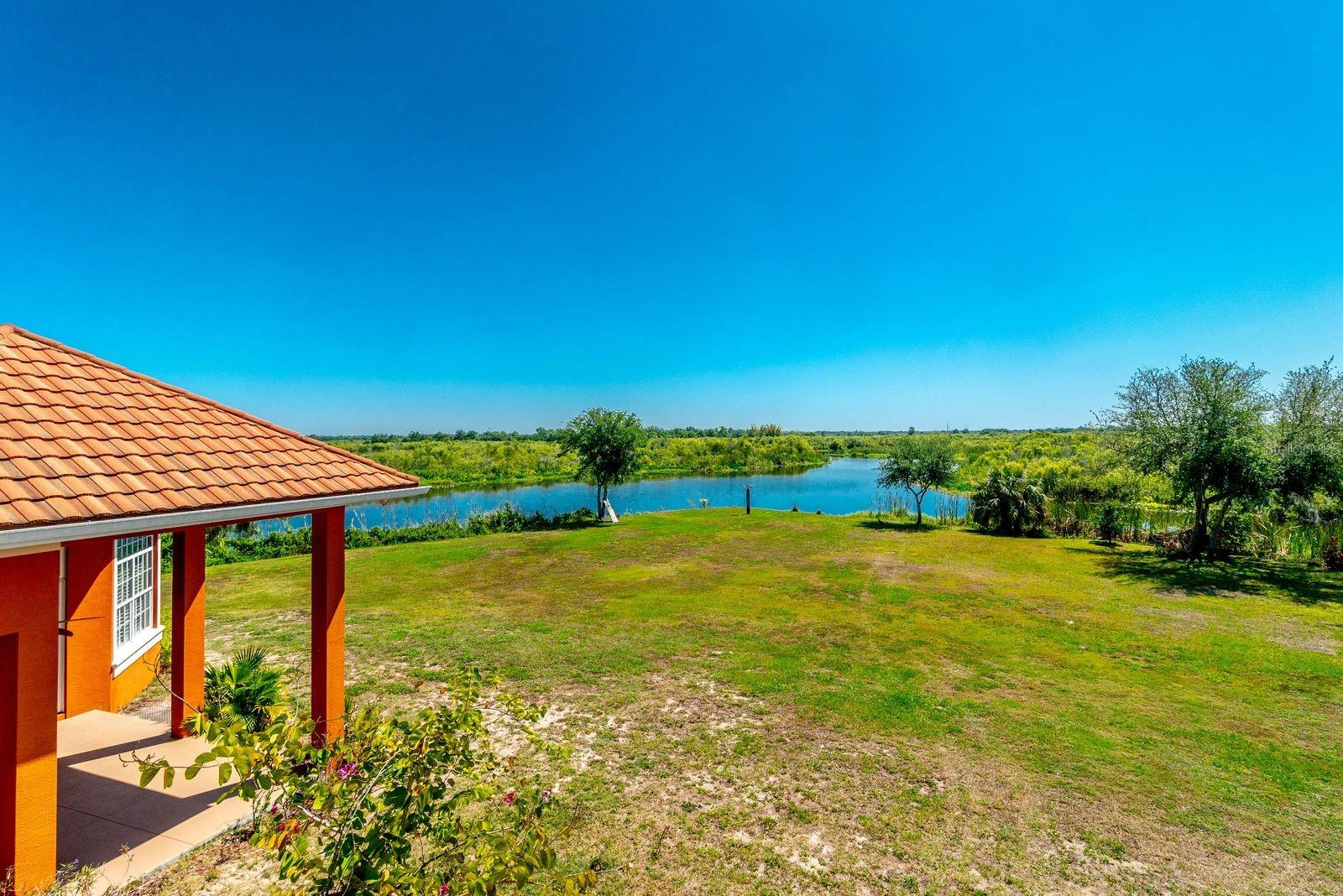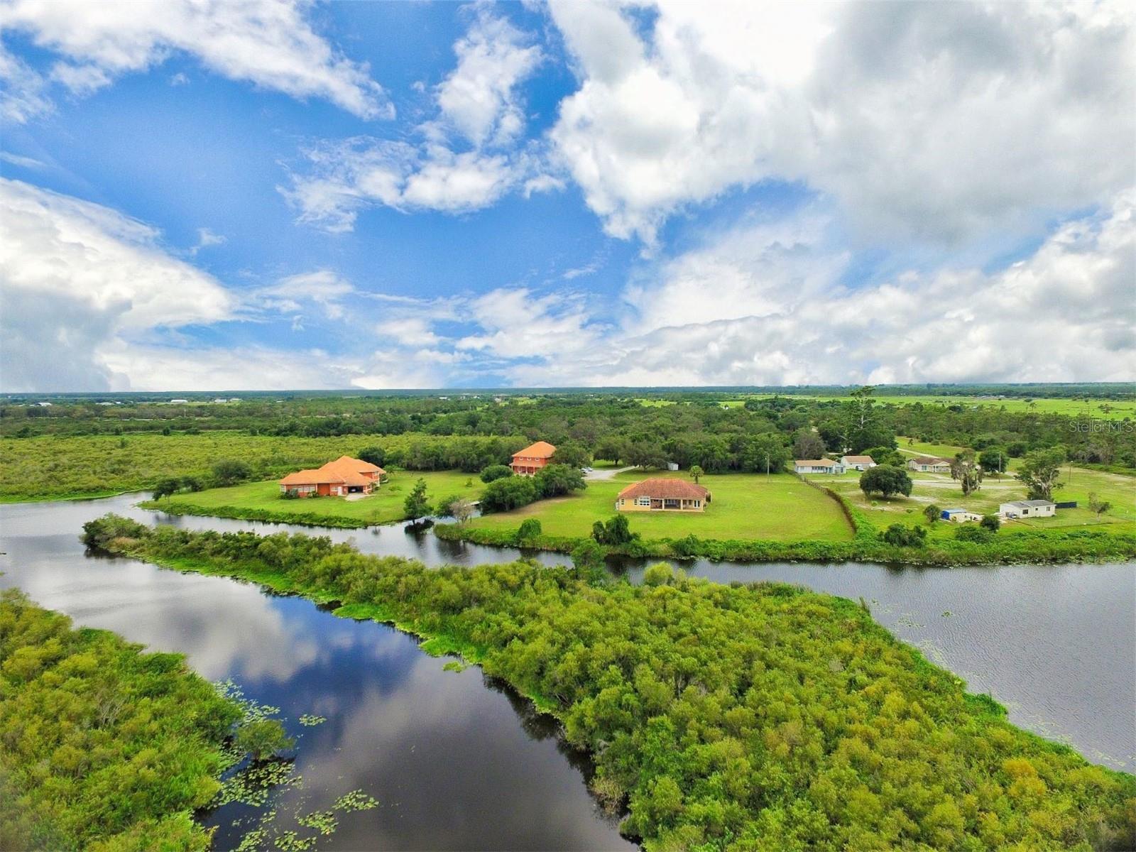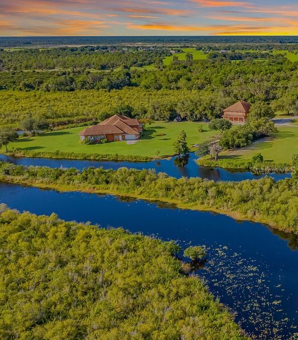 RARE 21 Ac SECLUDED waterfront Estate, Custom main house plus 3/3 guest house w/ a six-car garage, private boat ramp, dock & natural spring. Built to withstand CAT 5 hurricanes, high elevation, flood zone X, no flooding. Main house is 7181 sq ft of ultimate luxury, w/4 en-suites, pool bath & half bath. Two Masters both with his/her vanities, custom closets, rain showers & Jacuzzis. Flooring is travertine/marble/onyx & wood. Gourmet kitchen with Brookwood cabinetry & “jeweled” granite countertops, double sinks, double ovens, bread warmer, island with a gas cooktop, breakfast nook, wine room, huge walk-in pantry, & vast great room with a custom bar. Plantation shutters, wraparound waterfront veranda & private balconies up, elevator shaft, whole house security system. Unspoiled scenery as this breathtaking Florida Ecosystem encompasses miles of different waterways connecting to the Peace River and Charlotte Harbor. Property is filled with birdlife, bring your horses, boats, planes, or helicopter. You can land and store your helicopter or seaplane as the utilities are underground. PRIVATE boat dock/ramp, natural spring, Zoned AG. F-13 airport across street, Punta Gorda Airport 10 miles