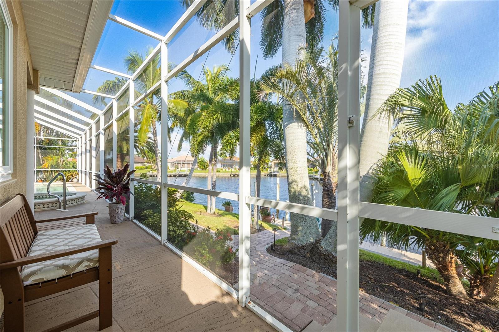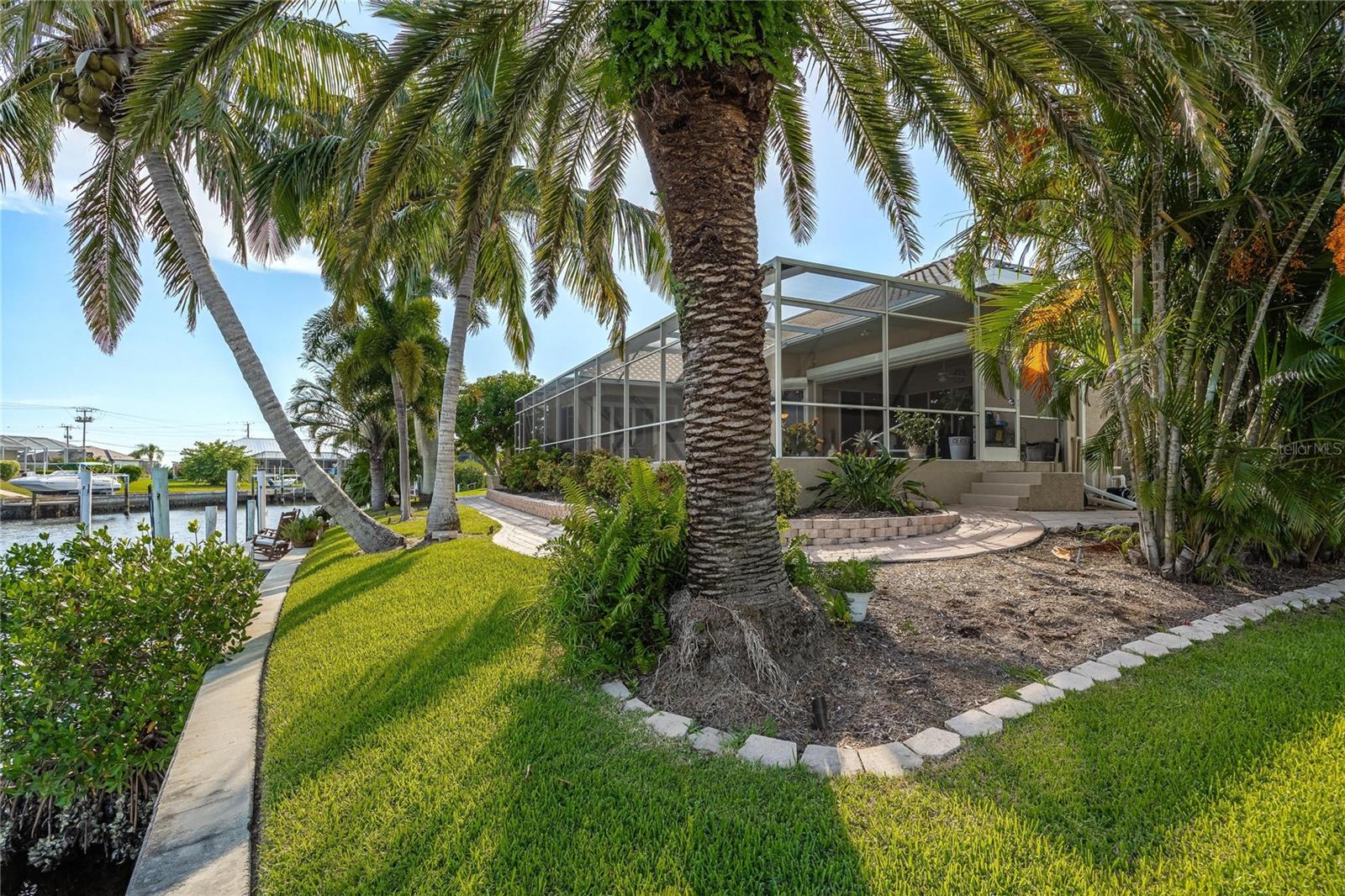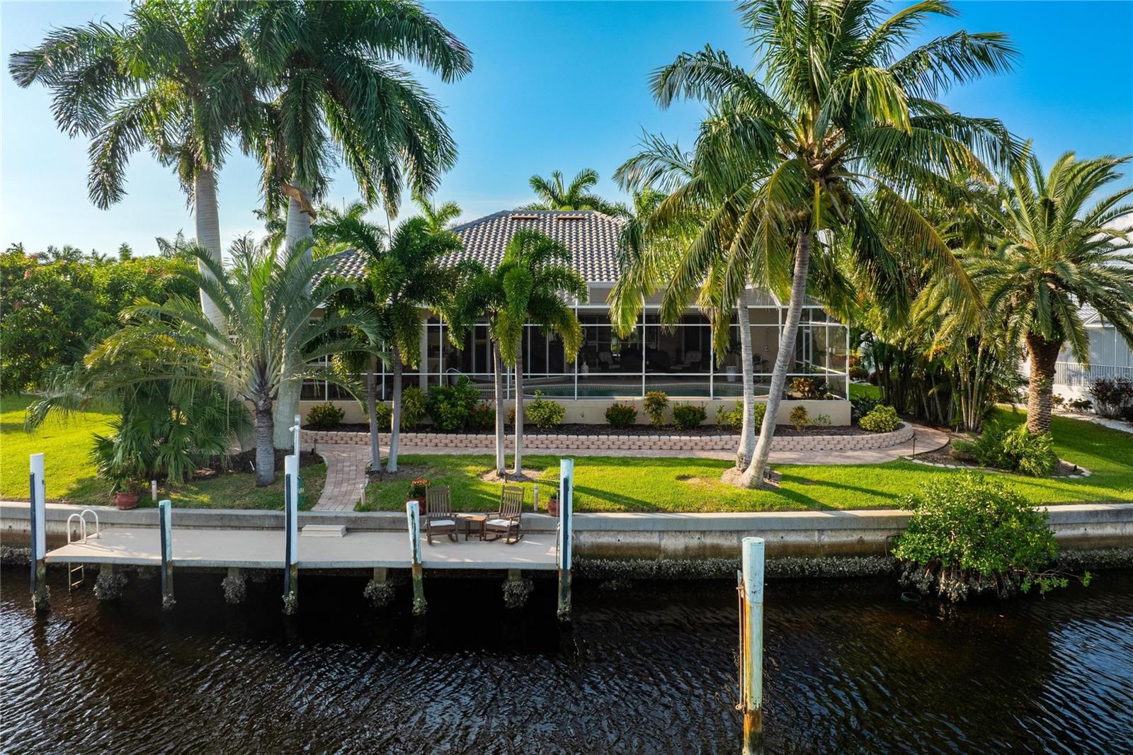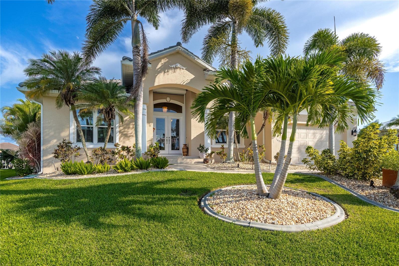 Come see this stunning waterfront custom home today! This beautiful property features 3 bedrooms, 3 bathrooms, and an attached 2-car garage with an open and split bedroom floor plan. It comes equipped with new appliances, a new roof, a new pool heater, new paint, and a new A/C. The large windows are under warranty and ensure plenty of natural light. The transom windows complement a great room, a well-appointed kitchen, and a separate dining room. You'll also have a private laundry with ample space. The kitchen boasts gorgeous granite counters, staggered height cherry wood cabinets, wood trim, crown molding, a breakfast bar, stainless steel appliances, a built-in desk, and a dining area overlooking the pool and water. The master bedroom includes a walk-in closet, a private bathroom with his and hers sinks, a vanity, a garden tub, and a separate walk-in shower. The other two bedrooms each have their own bathrooms. The living space extends to the screened lanai and pool area with a beautiful pool and spa for your enjoyment. Additional features include a double door entry, tile roof, irrigation system, a new hurricane shutter system, central vacuum, tile floors throughout the living area, and plant shelves. The home has cathedral and volume ceilings with plantation shutters, as well as a new night light system for your enjoyment. The tropical landscaping is well-maintained and ready to be enjoyed. You can also bring your boat to your own dock, which provides access to Charlotte Harbor and the Gulf of Mexico. The home is only minutes away from fishing piers, shopping areas, restaurants, golf courses, hospitals, and galleries. This is definitely a must-see property!