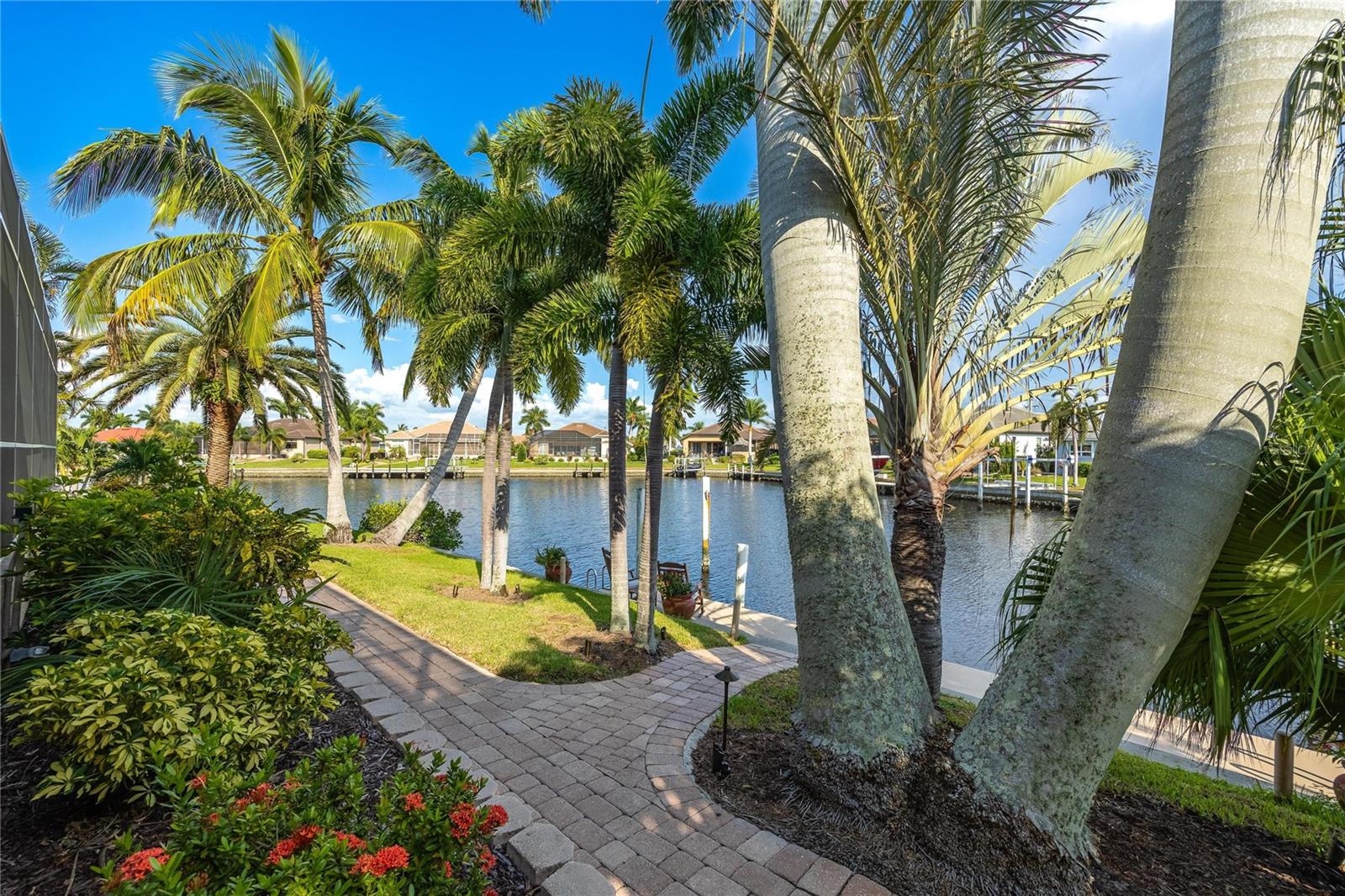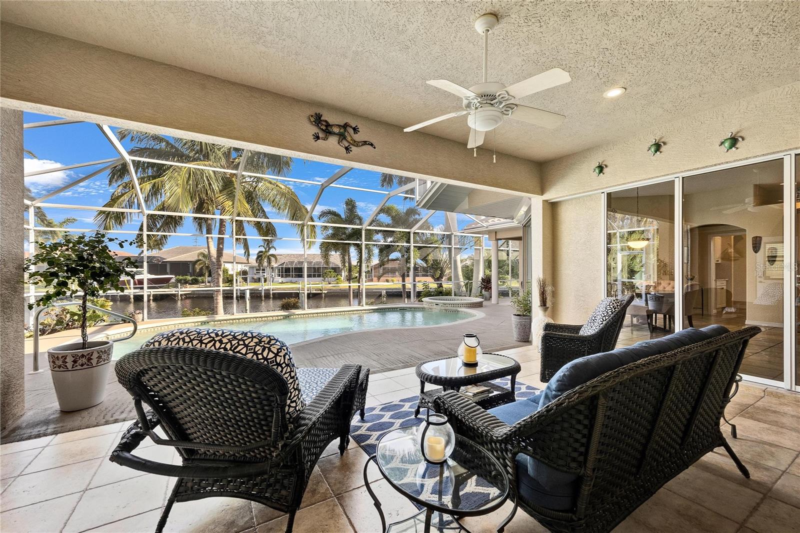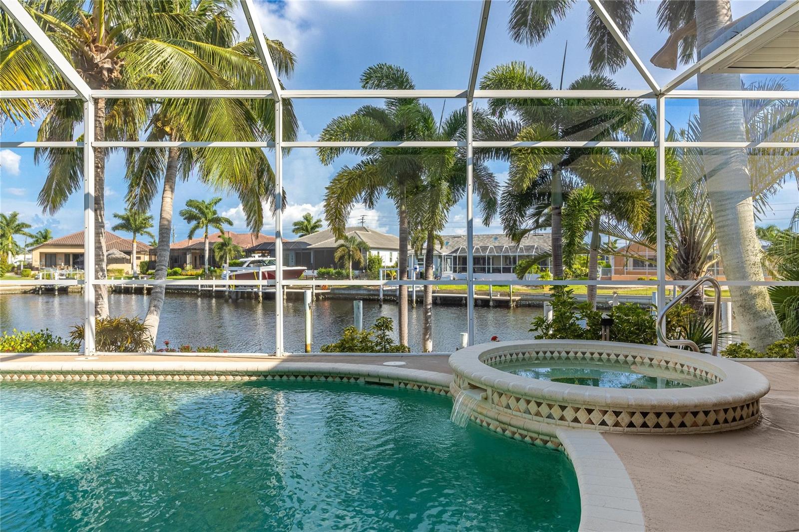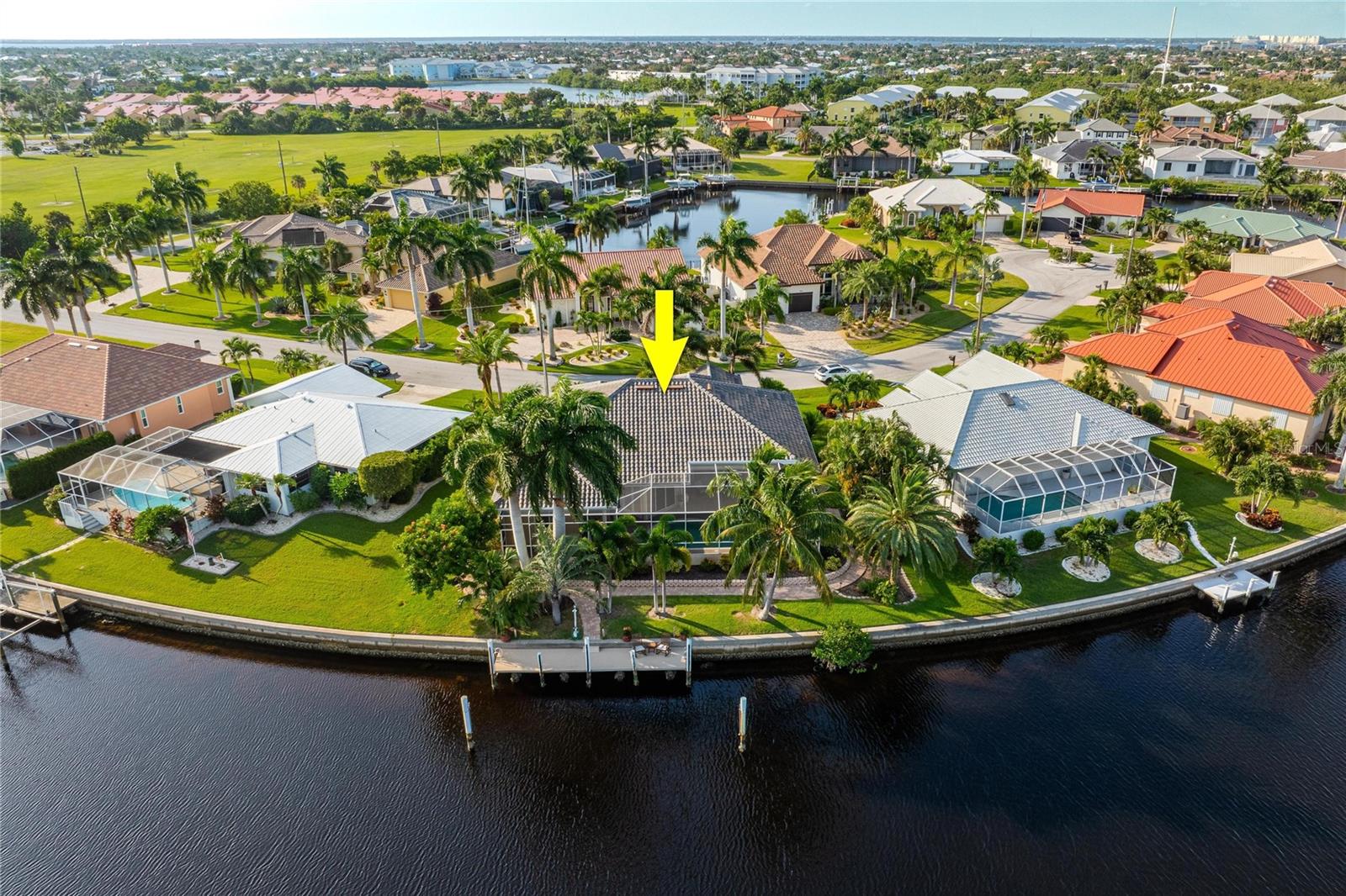 Come see this stunning waterfront custom home today! This beautiful property features 3 bedrooms, 3 bathrooms, and an attached 2-car garage with an open and split bedroom floor plan. It comes equipped with new appliances, a new roof, a new pool heater, new paint, and a new A/C. The large windows are under warranty and ensure plenty of natural light. The transom windows complement a great room, a well-appointed kitchen, and a separate dining room. You'll also have a private laundry with ample space. The kitchen boasts gorgeous granite counters, staggered height cherry wood cabinets, wood trim, crown molding, a breakfast bar, stainless steel appliances, a built-in desk, and a dining area overlooking the pool and water. The master bedroom includes a walk-in closet, a private bathroom with his and hers sinks, a vanity, a garden tub, and a separate walk-in shower. The other two bedrooms each have their own bathrooms. The living space extends to the screened lanai and pool area with a beautiful pool and spa for your enjoyment. Additional features include a double door entry, tile roof, irrigation system, a new hurricane shutter system, central vacuum, tile floors throughout the living area, and plant shelves. The home has cathedral and volume ceilings with plantation shutters, as well as a new night light system for your enjoyment. The tropical landscaping is well-maintained and ready to be enjoyed. You can also bring your boat to your own dock, which provides access to Charlotte Harbor and the Gulf of Mexico. The home is only minutes away from fishing piers, shopping areas, restaurants, golf courses, hospitals, and galleries. This is definitely a must-see property!