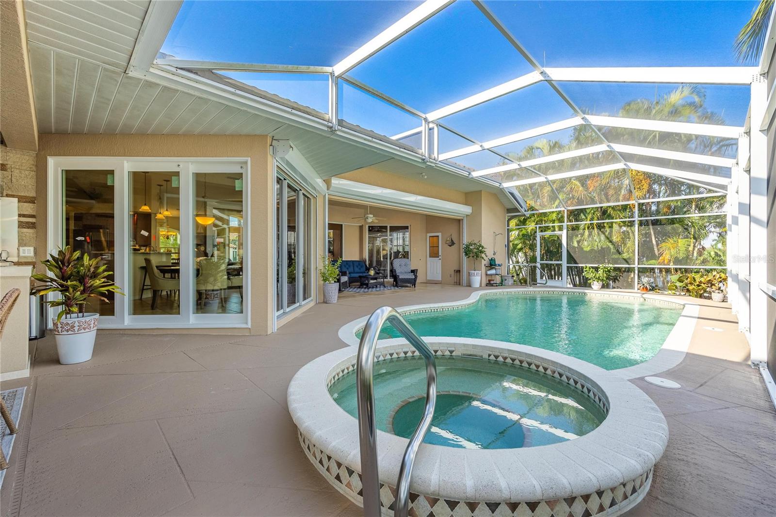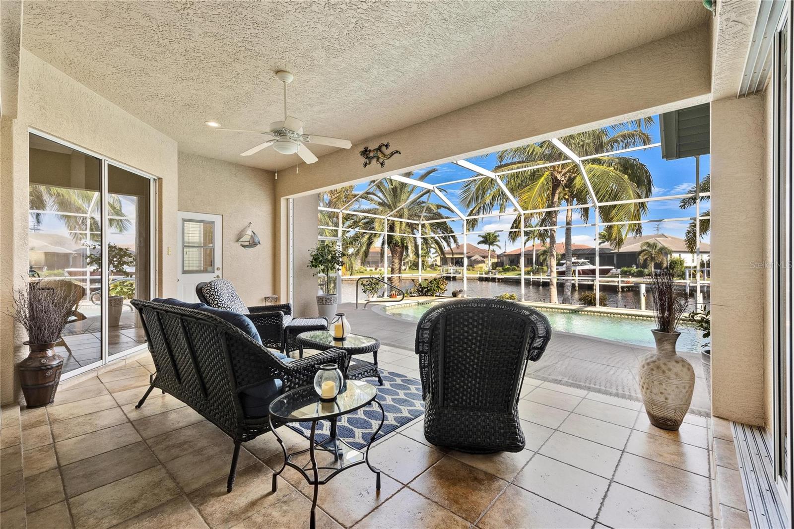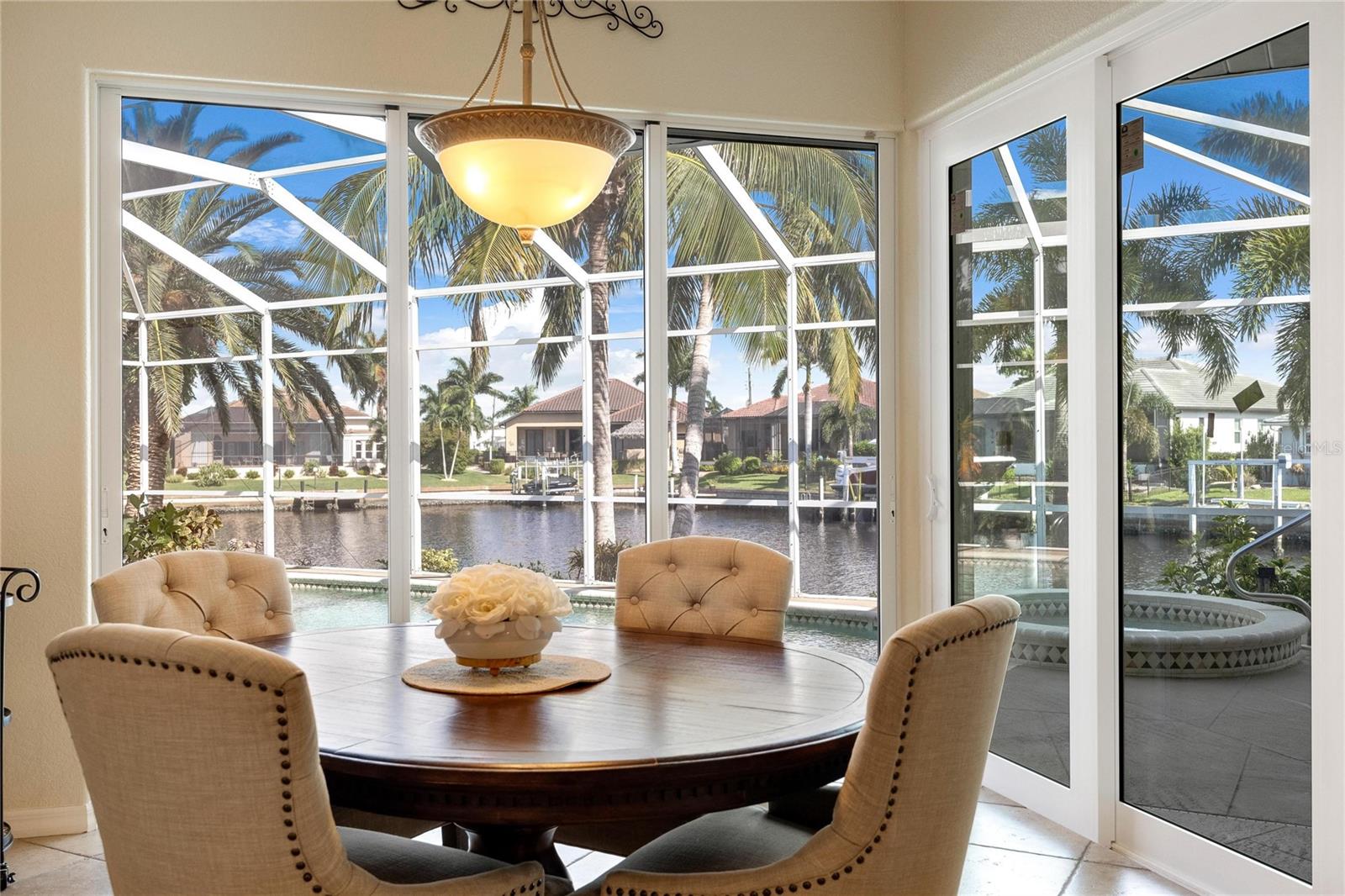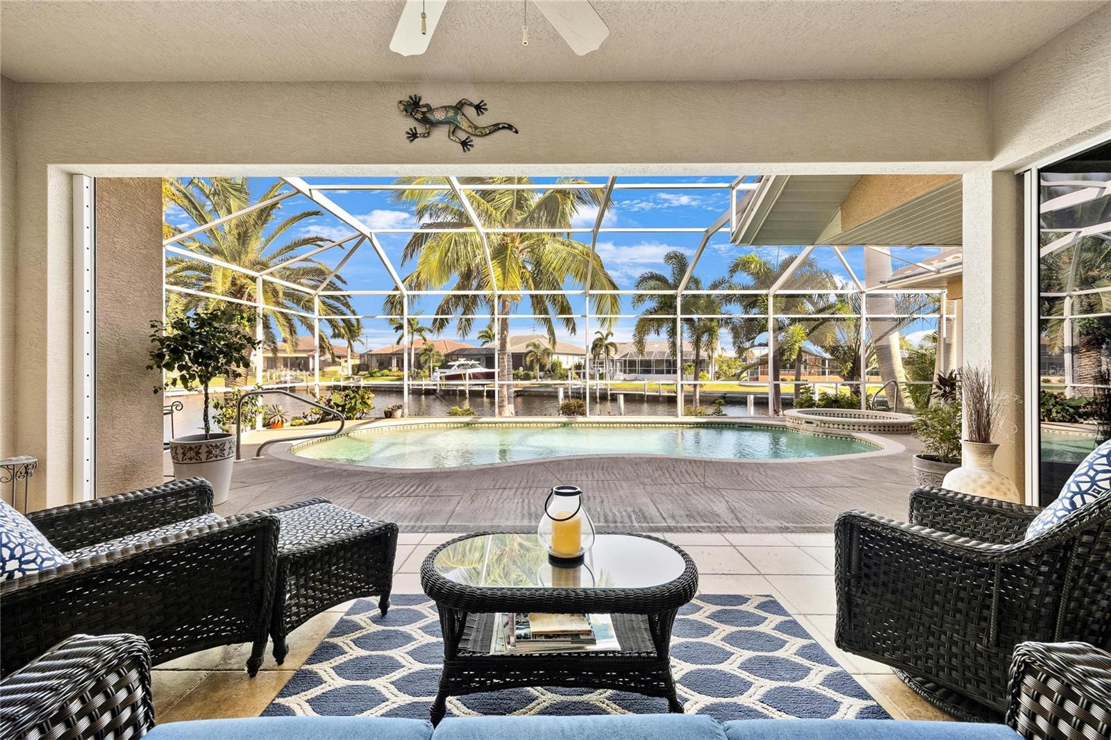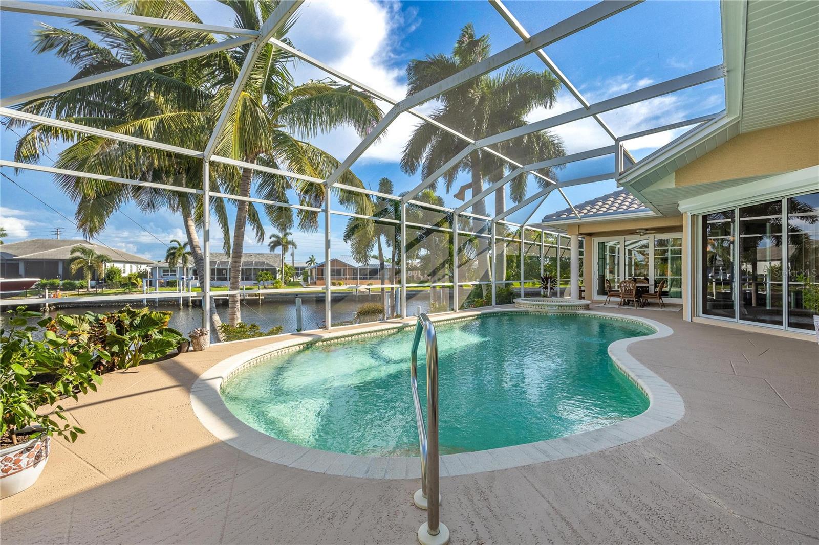 Come see this stunning waterfront custom home today! This beautiful property features 3 bedrooms, 3 bathrooms, and an attached 2-car garage with an open and split bedroom floor plan. It comes equipped with new appliances, a new roof, a new pool heater, new paint, and a new A/C. The large windows are under warranty and ensure plenty of natural light. The transom windows complement a great room, a well-appointed kitchen, and a separate dining room. You'll also have a private laundry with ample space. The kitchen boasts gorgeous granite counters, staggered height cherry wood cabinets, wood trim, crown molding, a breakfast bar, stainless steel appliances, a built-in desk, and a dining area overlooking the pool and water. The master bedroom includes a walk-in closet, a private bathroom with his and hers sinks, a vanity, a garden tub, and a separate walk-in shower. The other two bedrooms each have their own bathrooms. The living space extends to the screened lanai and pool area with a beautiful pool and spa for your enjoyment. Additional features include a double door entry, tile roof, irrigation system, a new hurricane shutter system, central vacuum, tile floors throughout the living area, and plant shelves. The home has cathedral and volume ceilings with plantation shutters, as well as a new night light system for your enjoyment. The tropical landscaping is well-maintained and ready to be enjoyed. You can also bring your boat to your own dock, which provides access to Charlotte Harbor and the Gulf of Mexico. The home is only minutes away from fishing piers, shopping areas, restaurants, golf courses, hospitals, and galleries. This is definitely a must-see property!