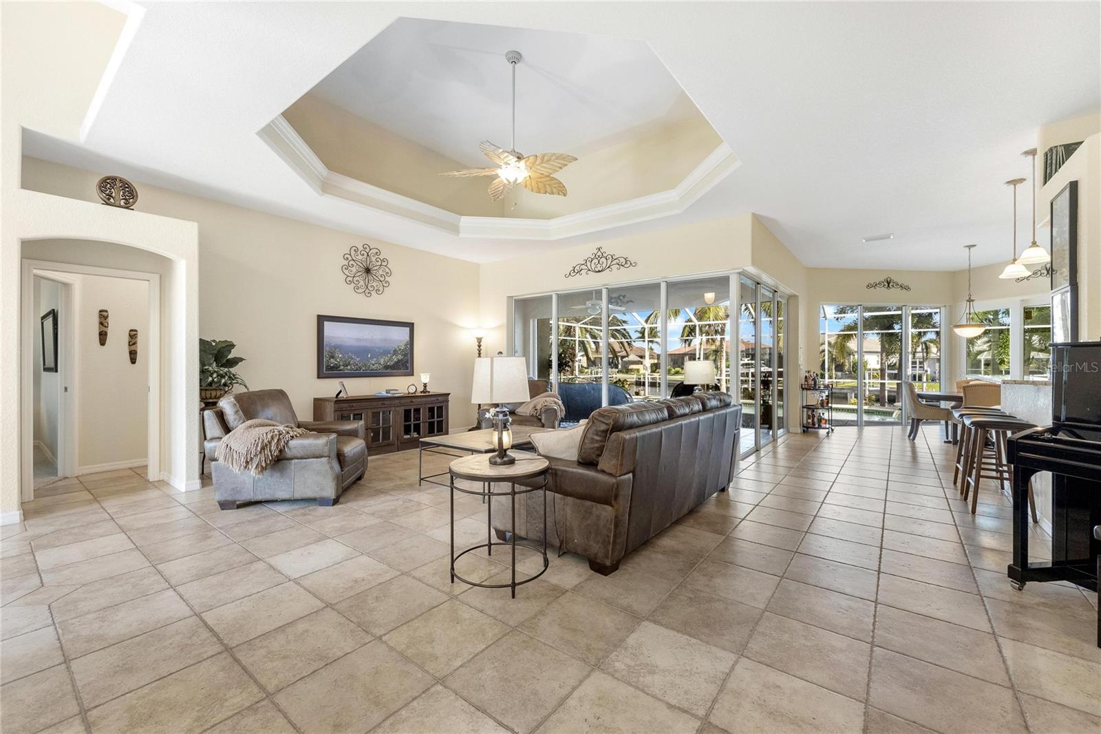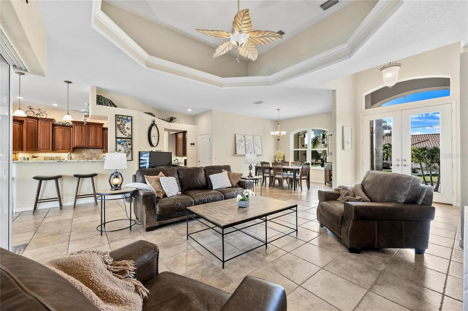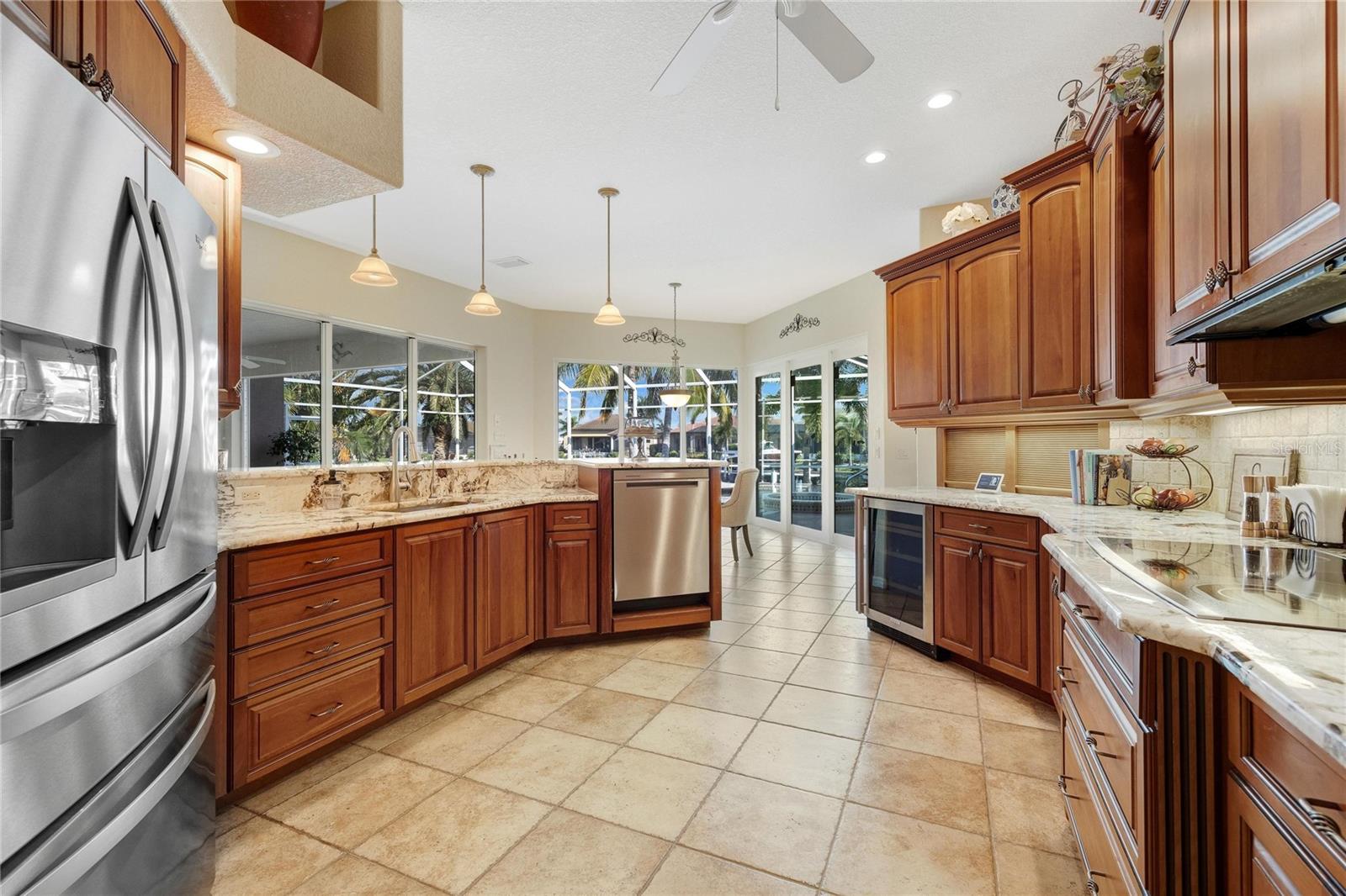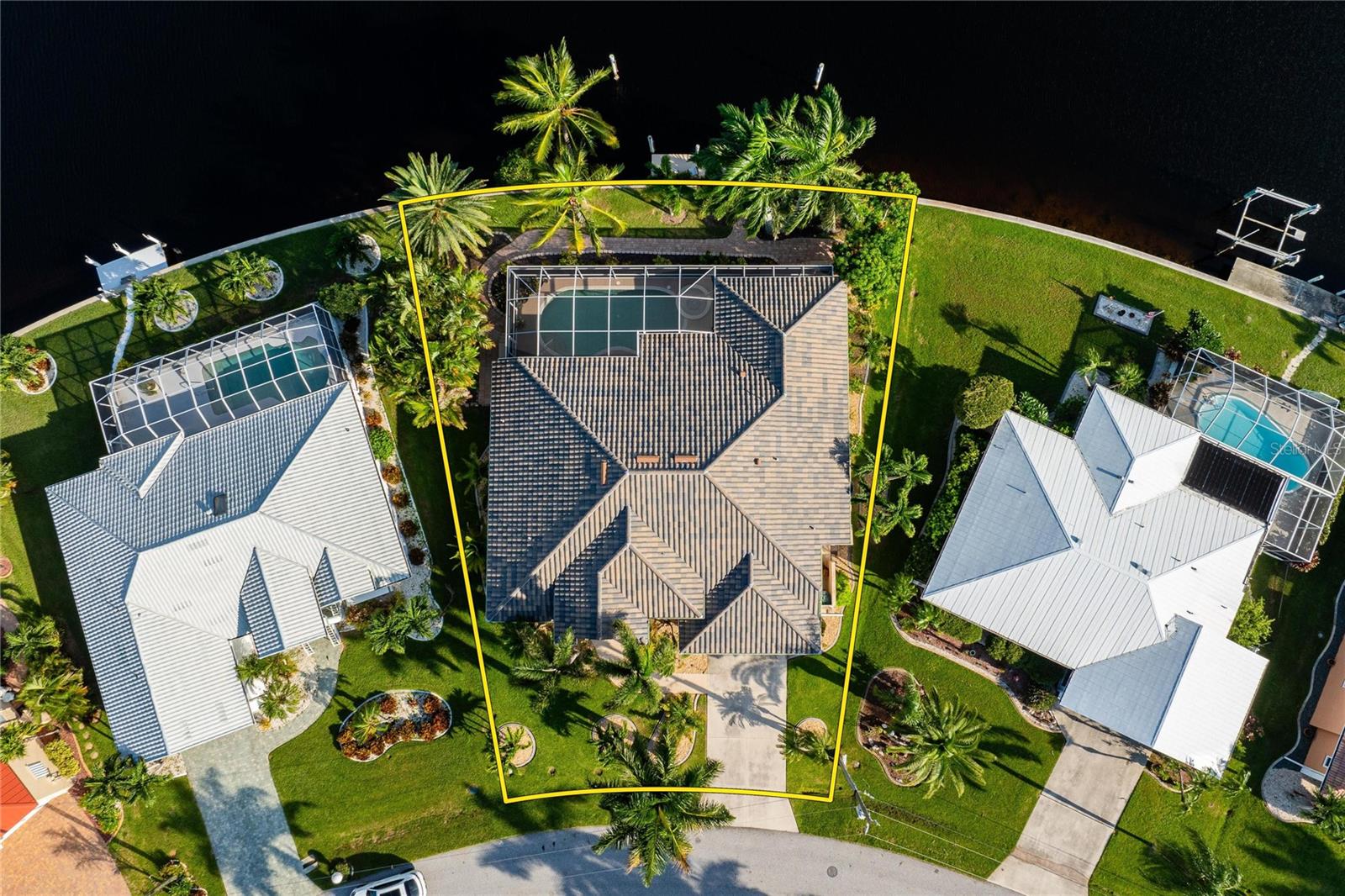 Come see this stunning waterfront custom home today! This beautiful property features 3 bedrooms, 3 bathrooms, and an attached 2-car garage with an open and split bedroom floor plan. It comes equipped with new appliances, a new roof, a new pool heater, new paint, and a new A/C. The large windows are under warranty and ensure plenty of natural light. The transom windows complement a great room, a well-appointed kitchen, and a separate dining room. You'll also have a private laundry with ample space. The kitchen boasts gorgeous granite counters, staggered height cherry wood cabinets, wood trim, crown molding, a breakfast bar, stainless steel appliances, a built-in desk, and a dining area overlooking the pool and water. The master bedroom includes a walk-in closet, a private bathroom with his and hers sinks, a vanity, a garden tub, and a separate walk-in shower. The other two bedrooms each have their own bathrooms. The living space extends to the screened lanai and pool area with a beautiful pool and spa for your enjoyment. Additional features include a double door entry, tile roof, irrigation system, a new hurricane shutter system, central vacuum, tile floors throughout the living area, and plant shelves. The home has cathedral and volume ceilings with plantation shutters, as well as a new night light system for your enjoyment. The tropical landscaping is well-maintained and ready to be enjoyed. You can also bring your boat to your own dock, which provides access to Charlotte Harbor and the Gulf of Mexico. The home is only minutes away from fishing piers, shopping areas, restaurants, golf courses, hospitals, and galleries. This is definitely a must-see property!