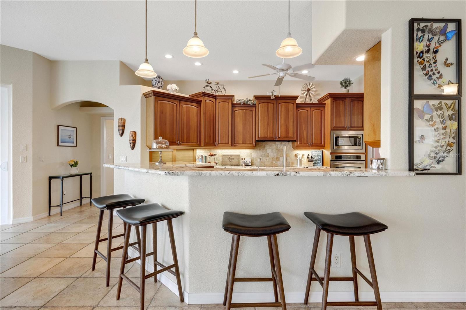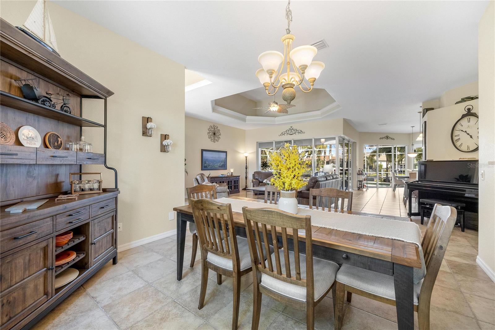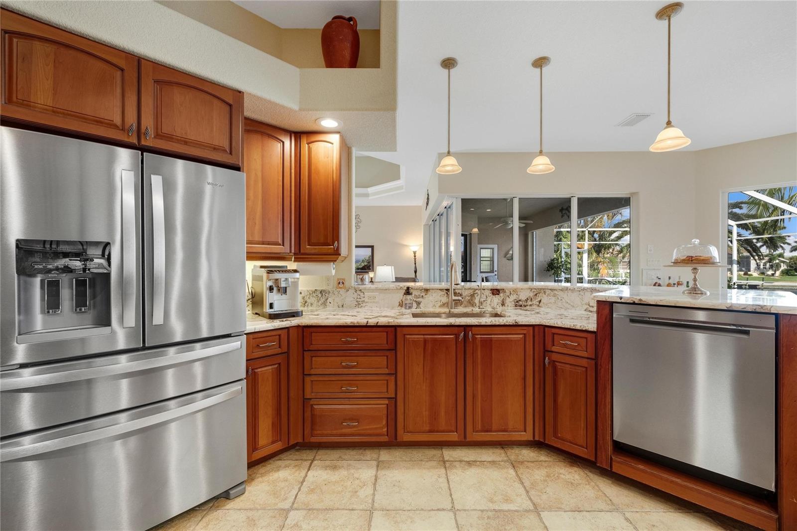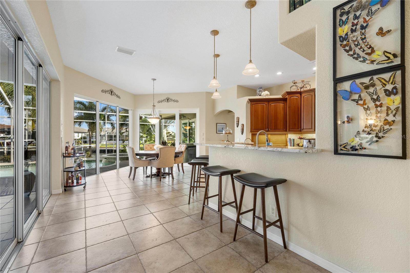Come see this stunning waterfront custom home today! This beautiful property features 3 bedrooms, 3 bathrooms, and an attached 2-car garage with an open and split bedroom floor plan. It comes equipped with new appliances, a new roof, a new pool heater, new paint, and a new A/C. The large windows are under warranty and ensure plenty of natural light. The transom windows complement a great room, a well-appointed kitchen, and a separate dining room. You'll also have a private laundry with ample space. The kitchen boasts gorgeous granite counters, staggered height cherry wood cabinets, wood trim, crown molding, a breakfast bar, stainless steel appliances, a built-in desk, and a dining area overlooking the pool and water. The master bedroom includes a walk-in closet, a private bathroom with his and hers sinks, a vanity, a garden tub, and a separate walk-in shower. The other two bedrooms each have their own bathrooms. The living space extends to the screened lanai and pool area with a beautiful pool and spa for your enjoyment. Additional features include a double door entry, tile roof, irrigation system, a new hurricane shutter system, central vacuum, tile floors throughout the living area, and plant shelves. The home has cathedral and volume ceilings with plantation shutters, as well as a new night light system for your enjoyment. The tropical landscaping is well-maintained and ready to be enjoyed. You can also bring your boat to your own dock, which provides access to Charlotte Harbor and the Gulf of Mexico. The home is only minutes away from fishing piers, shopping areas, restaurants, golf courses, hospitals, and galleries. This is definitely a must-see property!
