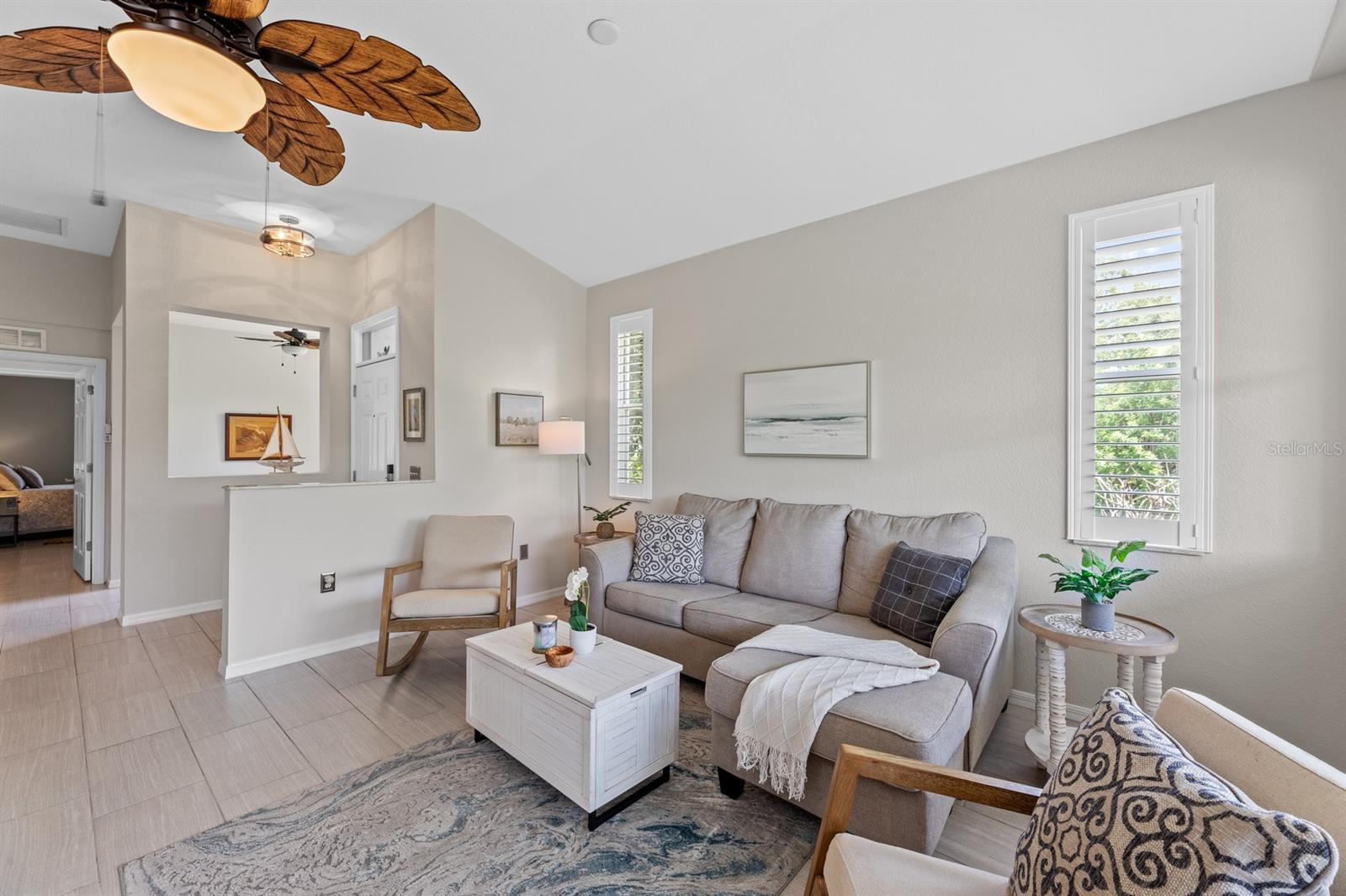 Experience carefree living in this tastefully updated, furnished TURNKEY 2-bedroom, 2-bath villa with a den, ideally suited for your full-time use, a winter retreat, or a profitable seasonal rental. Nestled within Burnt Store Marina, a gated community on Charlotte Harbor just 10 miles from the Gulf of Mexico, this home offers more than just a residence—it’s a lifestyle. Enjoy the community’s extensive amenities, including the largest deep-water marina on Florida’s west coast with over 500 wet slips, dry dock storage, and a boat ramp (extra fees apply). The Burnt Store Golf and Activity Center features a 27-hole golf course, a restaurant, and year-round activities. Residents also benefit from a resort-style pool, fitness club, tennis and pickleball courts, three restaurants, and various yacht services, all just a short stroll or golf cart ride away. It is resort living with a low monthly HOA fee! Inside, the villa showcases an attractive coastal vibe with modern plank tile flooring throughout, carpet in the master suite, and stylish plantation shutters. The open floor plan includes a unique den with a sliding barn door for added privacy. Updates to the master bath and kitchen blend functionality with style, while additional conveniences include an interior laundry room and a spacious extended 2-car garage with a large laundry tub. Step outside to the large lanai, which backs onto a nature preserve and features privacy screens, a TV for movies or sports, a bistro setup, and calming lighting—perfect for evenings of relaxing. Don't wait, come explore the vibrant Marina community, dine at Cass Cay, and enjoy the Fitness, Racquet & Pool Club. Burnt Store Marina’s direct access to the Gulf of Mexico and Boca Grande Pass, along with its renowned deep-water marina, ensures you'll be having an unparalleled blend of relaxation and fun, with comfort, convenience, and a coastal charm.