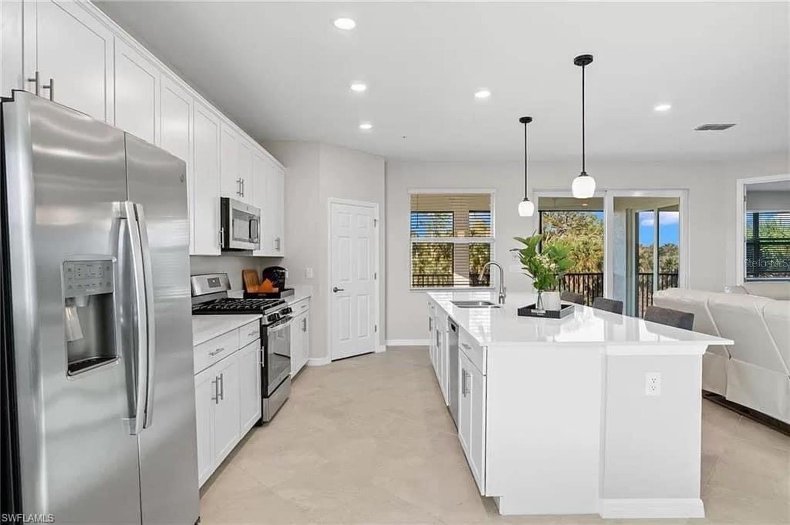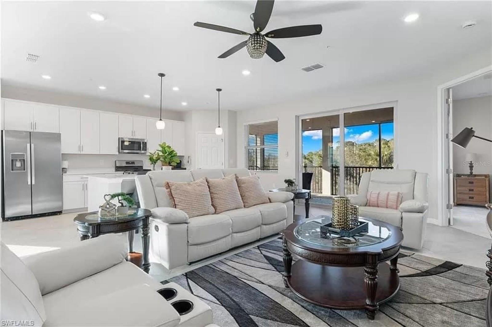 Welcome to the quiet, quaint, upscale, gated community of Babcock Ranch National Golf Club; part of America's "First Solar Town". Located on the quietest, remotest, least-trafficked street, this most sought after, second-floor, nature preserve view home is the only one available of its kind with golf membership included! Upon entering this 3 bed/2 bath home, you will notice the towering cathedral ceiling as you make your way up to the well-appointed, open space living, kitchen and dining area: perfect for entertaining friends and family while preparing a fabulous meal. It features natural gas appliances, a tankless water heater, an oversized, screened lanai overlooking the stunning, peaceful nature preserve, hurricane impact doors and windows with beautiful, quartz countertops. The owners have also installed beautiful fans and light fixtures in all rooms and painted the interior a light, refreshing, Balboa Mist using Sherman Williams' revolutionary, anti-mold, anti-bacterial technology paint. Off the main room, also overlooking the preserve, you will find the large master suite with two, huge walk-in closets. The master bath comes with a generously large shower and separate His and Her's vanities. All day and night, because of its preserve view, you will neither see, nor hear, the constant passing of golf carts and golfers, past your door, like your neighbors across the street. On the contrary, all you hear and see are the sights and sounds of every creature the preserve has to offer. Truly magnificent tranquility. Now the First-Class amenities! The 7200 yard, incredibly maintained and manicured, Championship golf course, exhibits six separate tees for every skill level golfer, including juniors. First class tennis and pickleball courts, an enormous pool, hot tub, men's and women's saunas in the beautifully-appointed locker rooms, a vast gym with all the latest technology equipment and separate room for yoga and Zumba classes, an open-air tiki bar/restaurant and the classiest clubhouse with an upscale dining experience. Finally, not to forget the First-Class Spa services AND the small, private satellite pools scattered at the ends of nearly every street in the community. This place truly has it all. It is even renowned for being the ONLY place that never lost power during Hurricane Ian. Come find out why TIME Magazine named our Founder, Syd Kitson, "Dreamer of the Year 2023." Babcock National Golf Club...Truly One of a Kind. Home can be sold turn-key with separate sale.