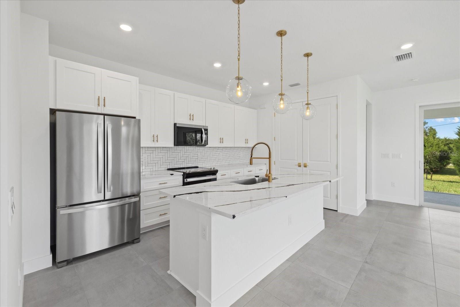 *PRICE REDUCTION* Nestled in the desirable Burnt Store Meadows community, this Vacanza Model offers 3 bedrooms + flex and 2 bathrooms in 1,954 sq. ft. of thoughtfully designed living space and another 300 sq. ft. of covered outdoor living space, ideal for both relaxation and entertainment. The interior offers high 9’4” ceilings with upgraded 8’ doors and the exterior of the home offers Impact double-pane energy efficient windows, Impact rated front door, Impact rated 12’ slider and upgraded 160 MPH wind resistant shingles! No CDD, and the HOA is only $25/mo, and homeowners insurance including flood insurance is expected to be in the low $300s a month! The open floor plan features a beautifully equipped kitchen with a full stainless steel appliance package, Upgraded Full Overlay Birch Cabinets (solid box construction with dovetail, soft-close drawers, and soft-close hinges), quartz countertops, a large island, and an oversized walk-in pantry. The split floor plan boasts a spacious primary suite complete with two walk-in closets, a dual-sink vanity, and a private water closet. The plan also features two additional oversized bedrooms including the impressive front bedroom with three large windows to make it the perfect office or den! Other features include Porcelain tile floors, upgraded designer tile backsplashes, R-38 insulation, a 3 ton 15-seer HVAC system, epoxy garage floor, and much more! Burnt Store Meadows is a welcoming community conveniently located near shopping, dining, I-75, medical facilities, and the historic downtown Punta Gorda area, featuring waterfront parks, fishing piers, art galleries, events, and more. Don't miss this opportunity to make this dream home yours!