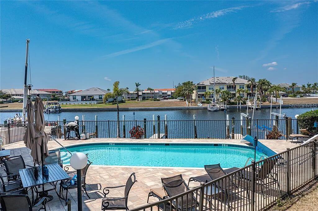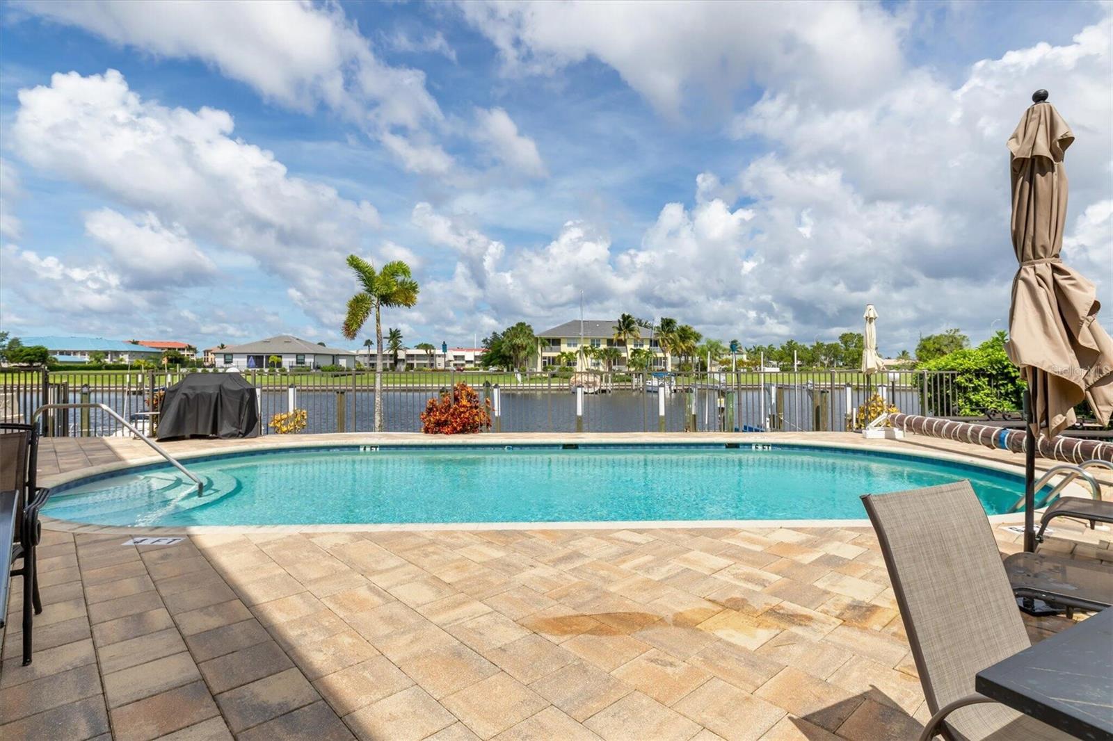 1st floor living no stairs. Low Dues!!! Dedicated boat dock with ability to install lift. Water and electric at dock. Sail boat water access to Peace River. New Windows. No hurricane damage from last years storms. Elevation high.This charming property offers a spacious layout with modern finishes and abundant natural light fully furnished. The kitchen is equipped with updated stainless steel appliances and ample storage, while the living area provides a comfortable space for relaxation. Enjoy the serene surroundings from your private patio. Located in a desirable community with access to amenities such as a pool and grilling area, this property promises a relaxed and enjoyable lifestyle. Close to all the great restaurants and night life.
