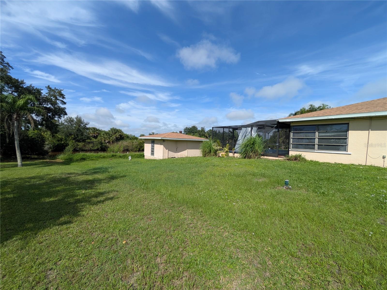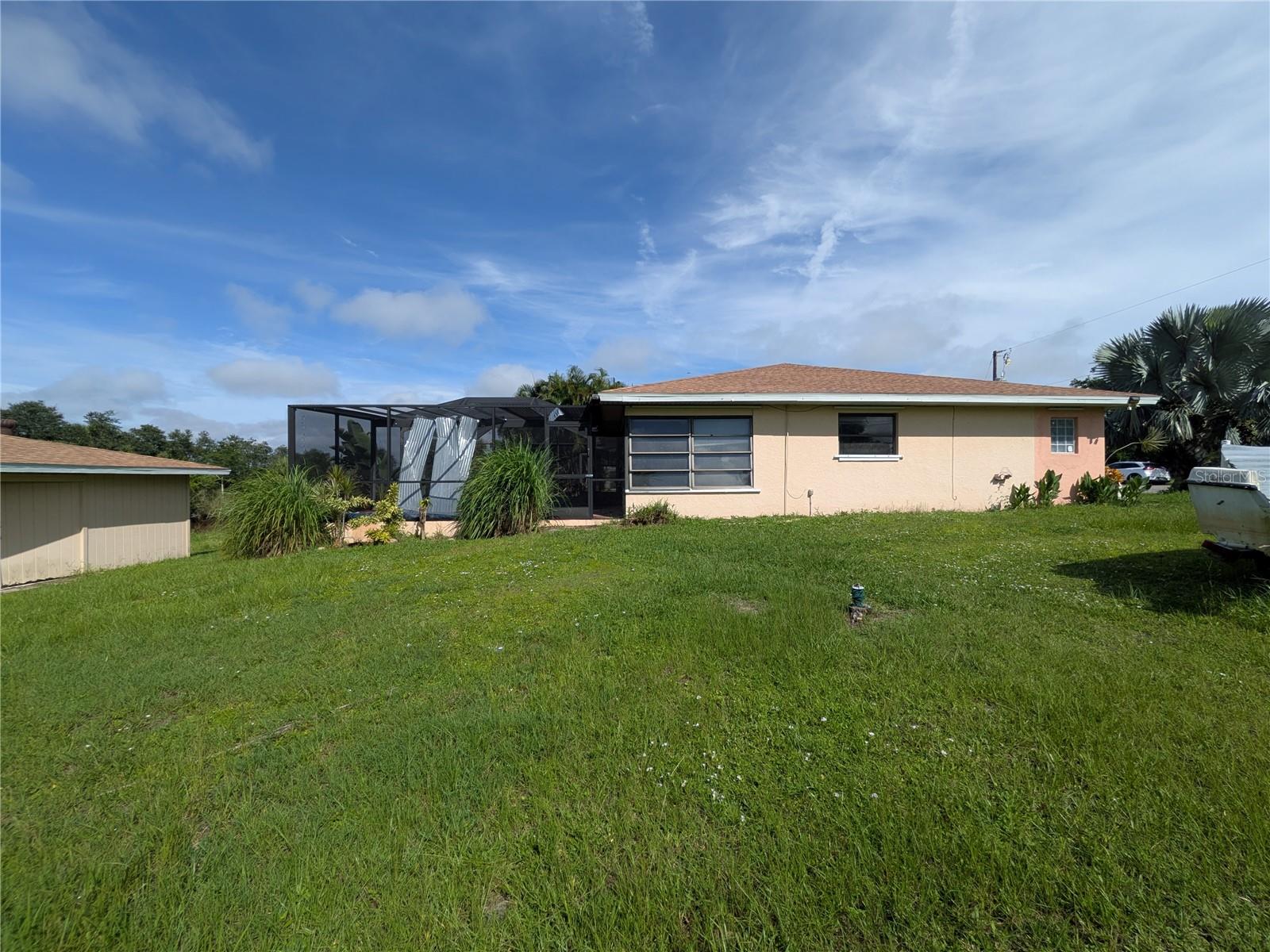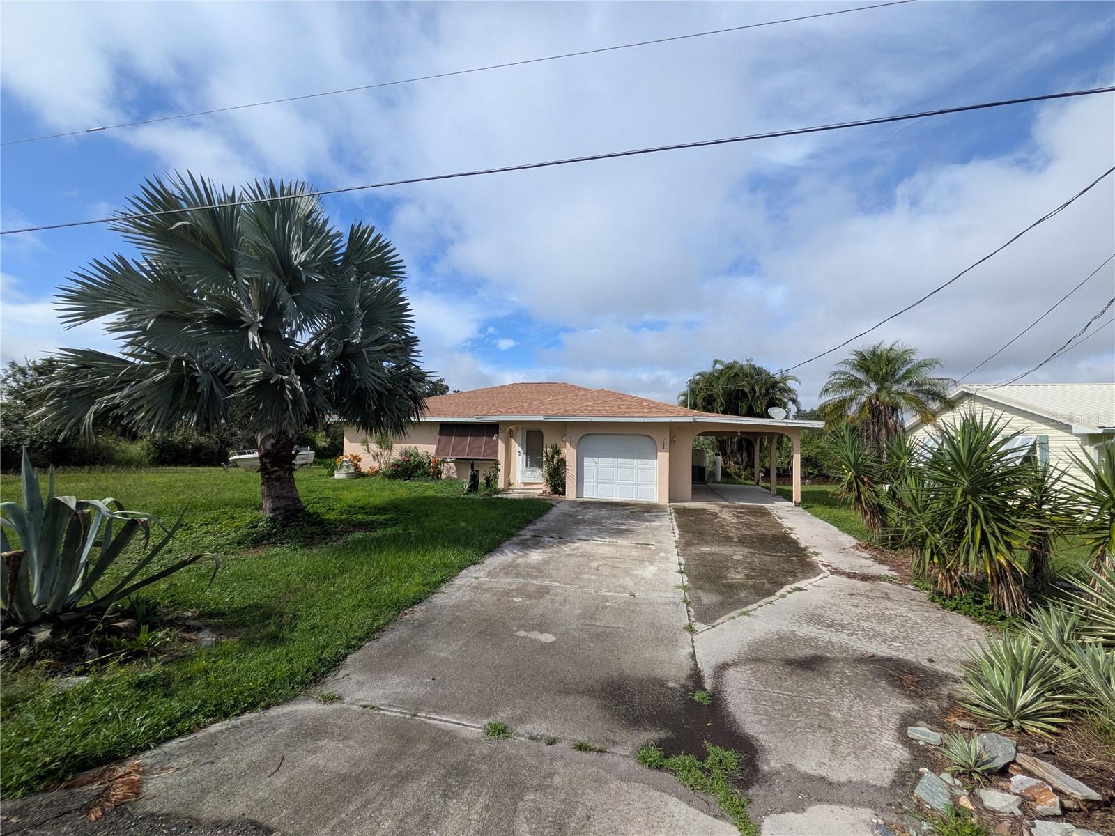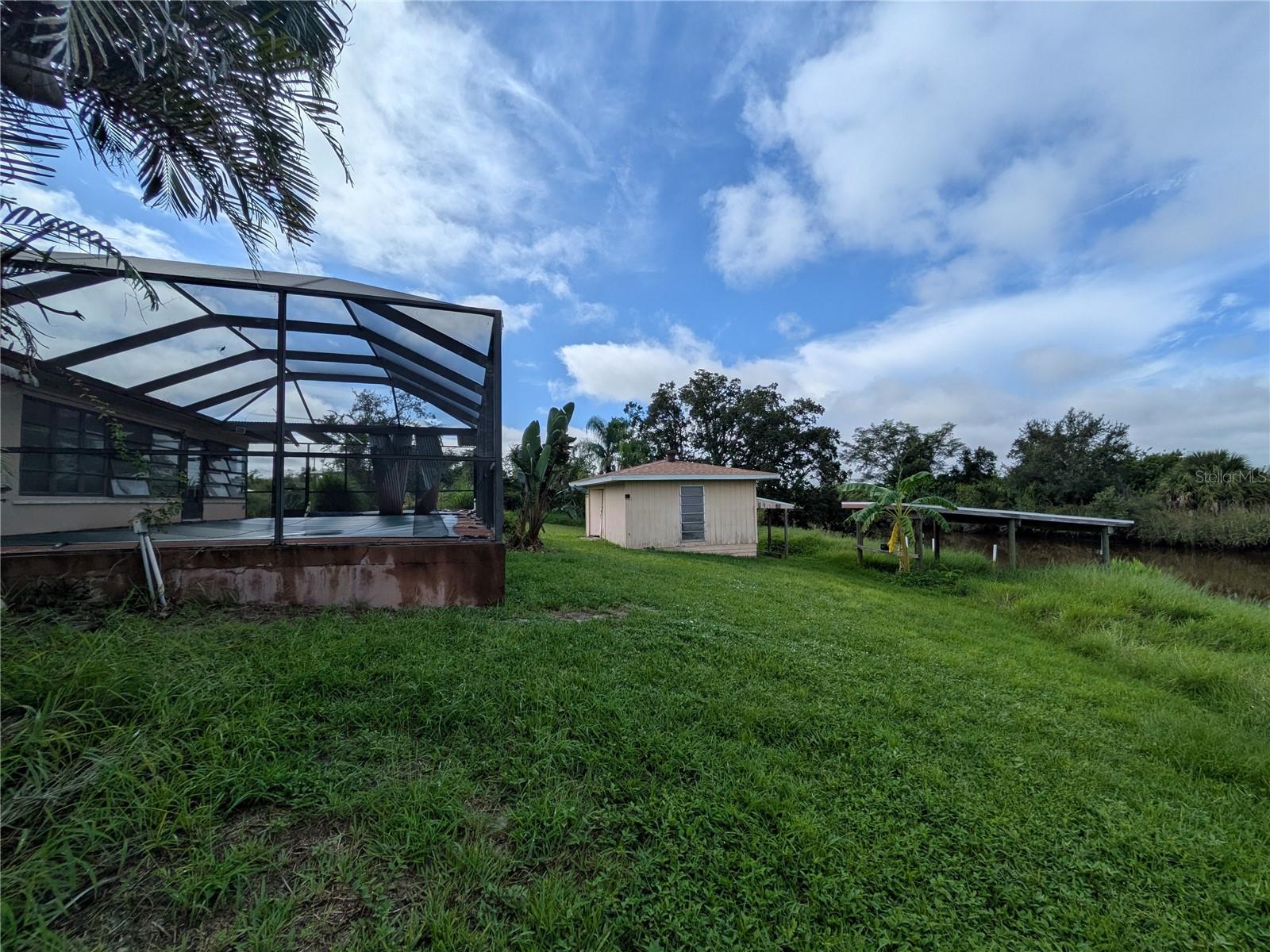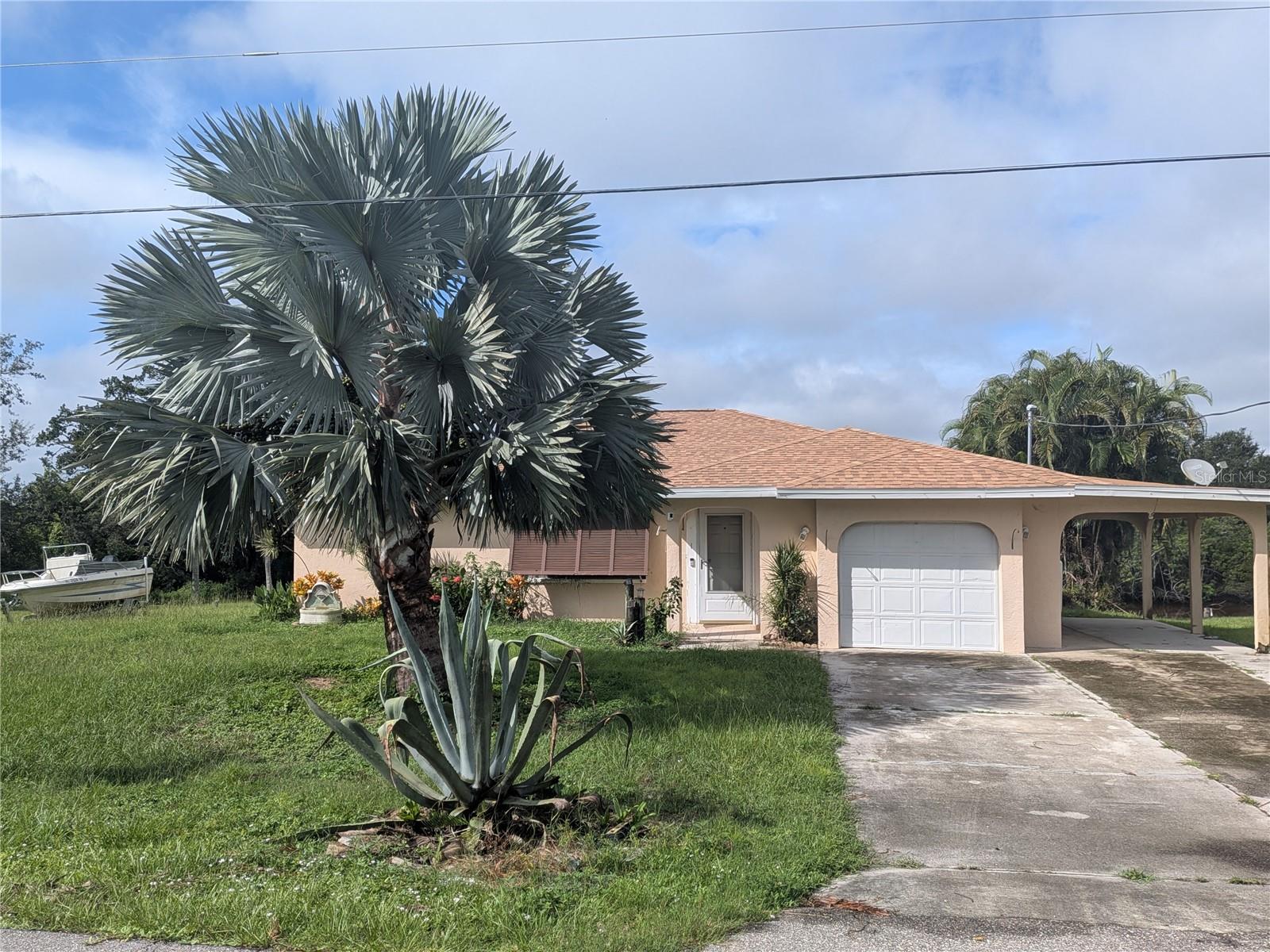 Waterfront Pool Home with Gulf Access in Peace River Shores. Located in the peaceful waterfront community of Peace River Shores, this 2-bedroom, 2-bath pool home offers approx. 80 feet of canal frontage with direct access to Charlotte Harbor and beyond. The open floor plan includes split bedrooms for added privacy, and a spacious enclosed lanai with access from both the living area and bedrooms. A pass-through window from the kitchen to the lanai makes outdoor entertaining easy. Step outside to enjoy a screened pool and expansive deck space, perfect for relaxing or entertaining. The property includes both a garage and carport, plus an additional concrete pad for boat or RV parking. A detached finished outbuilding in the backyard offers flexible space for storage, hobbies, or future use. The private covered boat ramp makes it easy to explore the waterways at your leisure. Peace River Shores is a friendly, laid-back community ideal for those who enjoy boating, fishing, and Florida’s natural beauty.