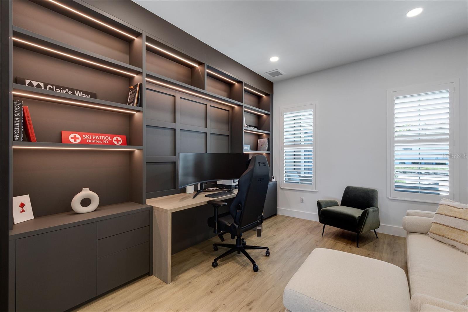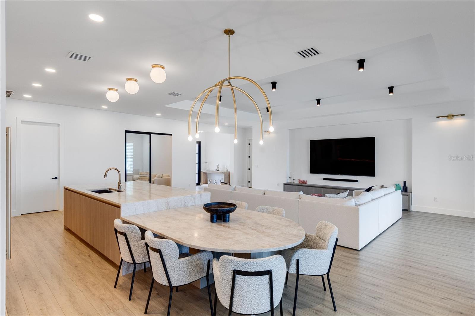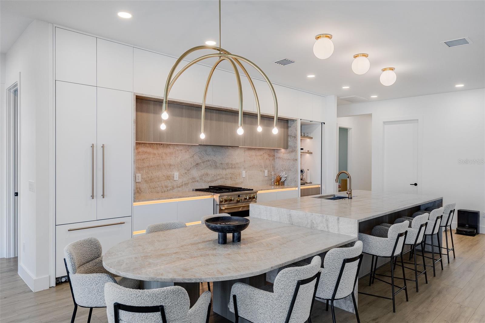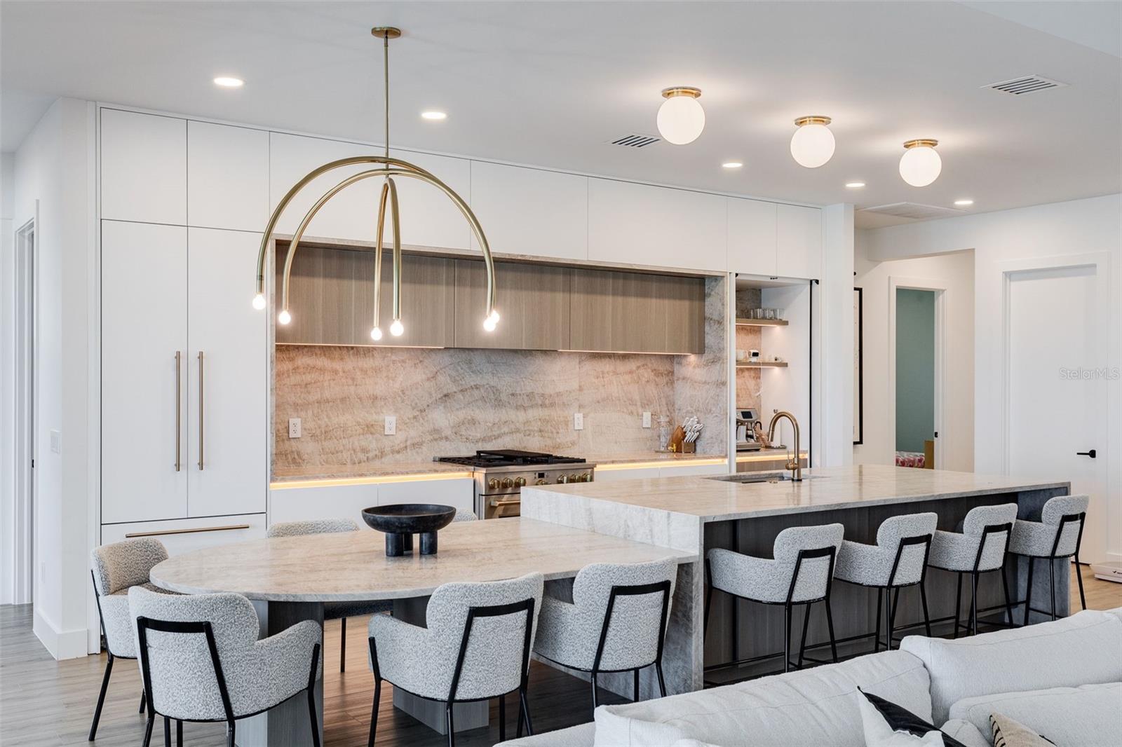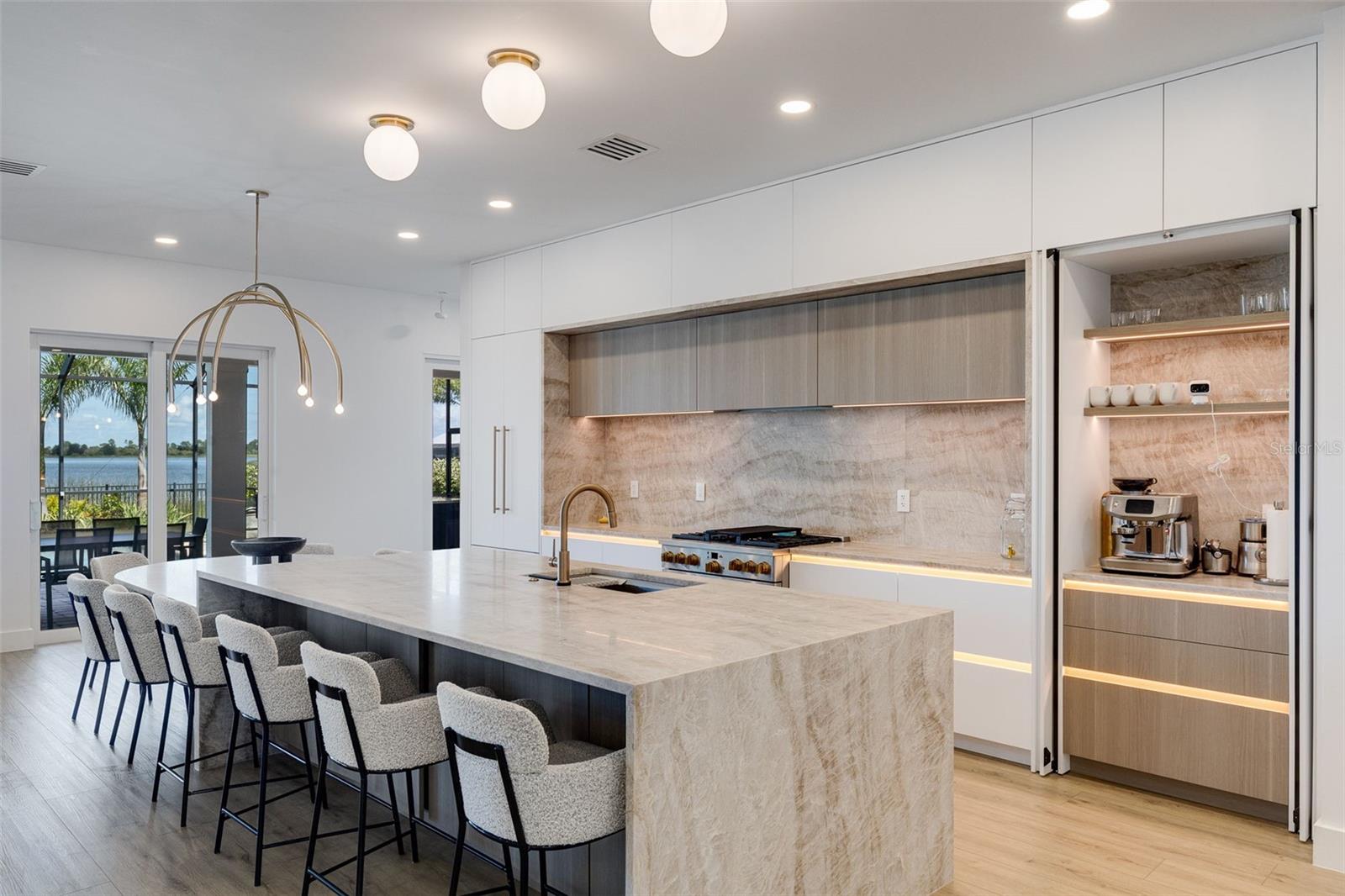 Stunning lakefront residence in Lake Babcock Estates, one of Babcock Ranch’s most desirable enclaves. Enjoy sweeping water views and direct sightlines to Founder’s Square from your own backyard. This fully renovated 3-bedroom + den home features a custom chef’s kitchen with Taj Mahal brushed quartzite countertops, panel-ready Fisher & Paykel appliances, and sleek, European-imported custom cabinetry. The open-concept design is tailored for modern living, offering a seamless indoor-outdoor flow perfect for entertaining. Thoughtfully upgraded throughout, the home includes a new 5-ton A/C system, pool water heater, tankless water heater, Tesla charger, and high-end plumbing fixtures. A rare opportunity to own a premium waterfront homesite in America’s first solar-powered town.