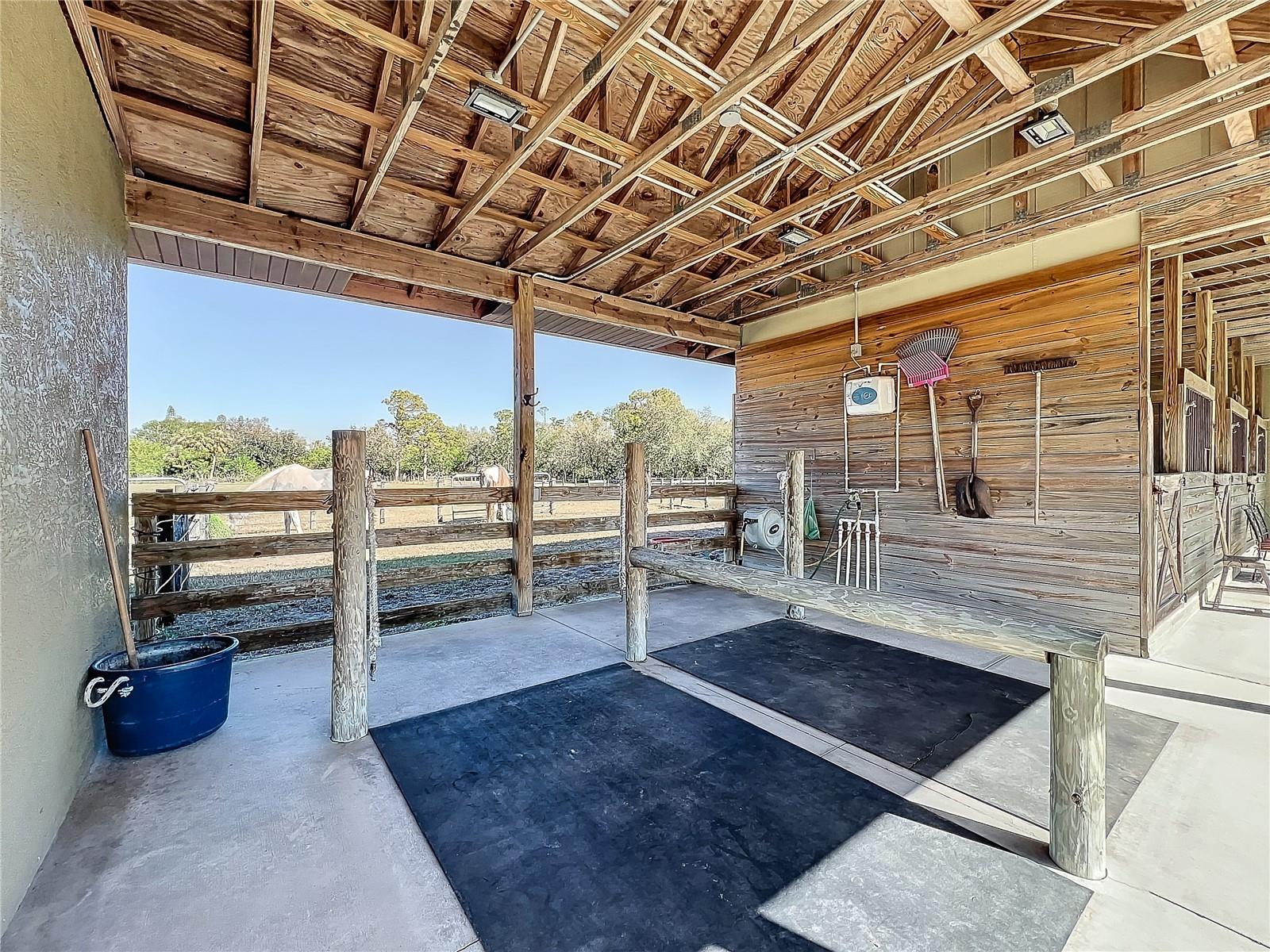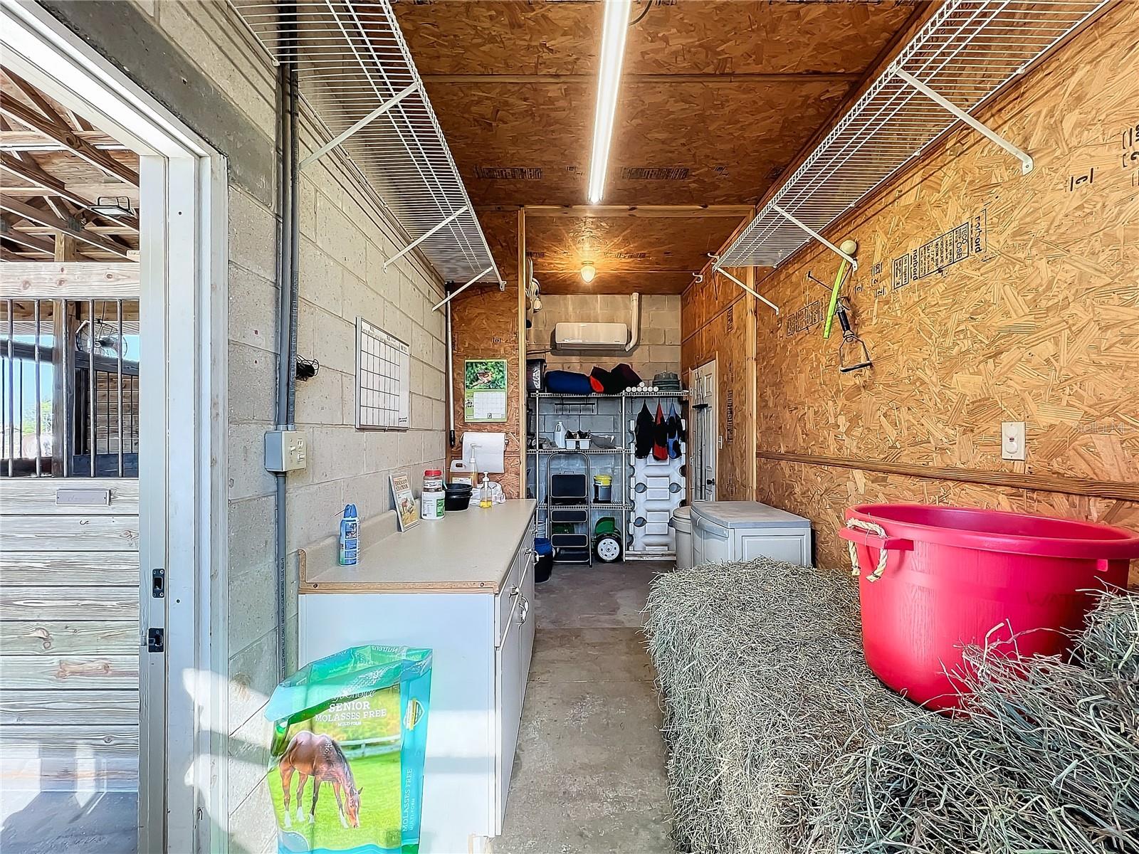 This beautiful 8.48-acre horse farm is a true gem, thoughtfully designed and meticulously maintained. The front 5.2 acres welcomes you with a long, scenic drive through towering oaks, leading to a well-kept 3-bedroom, 2-bath home. The property features an impressive barn with 3 spacious stalls, an air-conditioned tack and separate air-conditioned feed room, a workshop, and an additional air-conditioned storage room. Conveniently located next to the stalls is a covered wash station with hot water, ideal for grooming after a ride. Up front, you’ll find a top-notch arena, perfect for training or simply enjoying time with your horses. Moving to the back of the property, there are 4 more stalls available for boarding, along with another tack and feed room and an additional wash station for convenience. The property is fenced with electric fencing and boasts 9 fenced-in paddocks, each equipped with gates that allow horses to move freely between sections. This thoughtfully designed layout offers ample space for horses to graze and roam comfortably, making it an ideal location for any equestrian enthusiast.