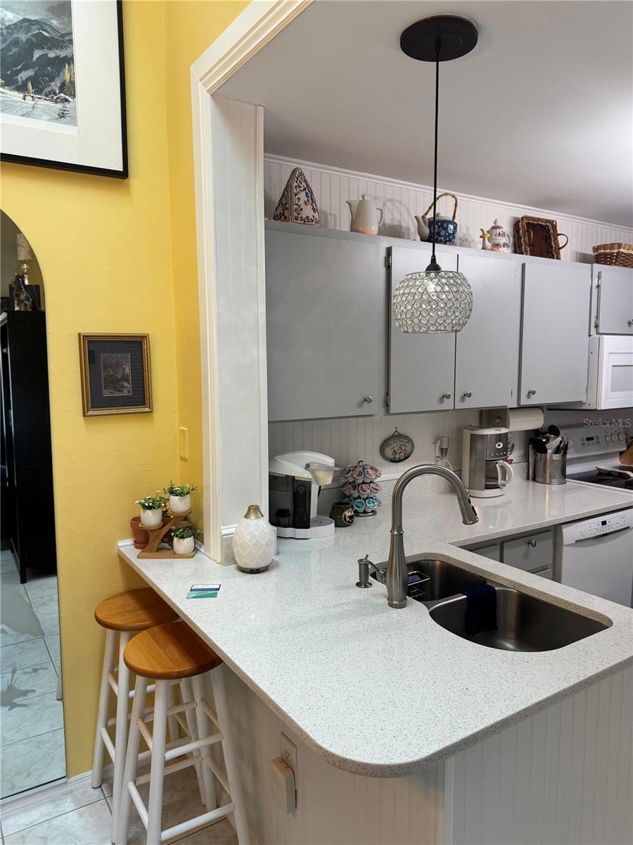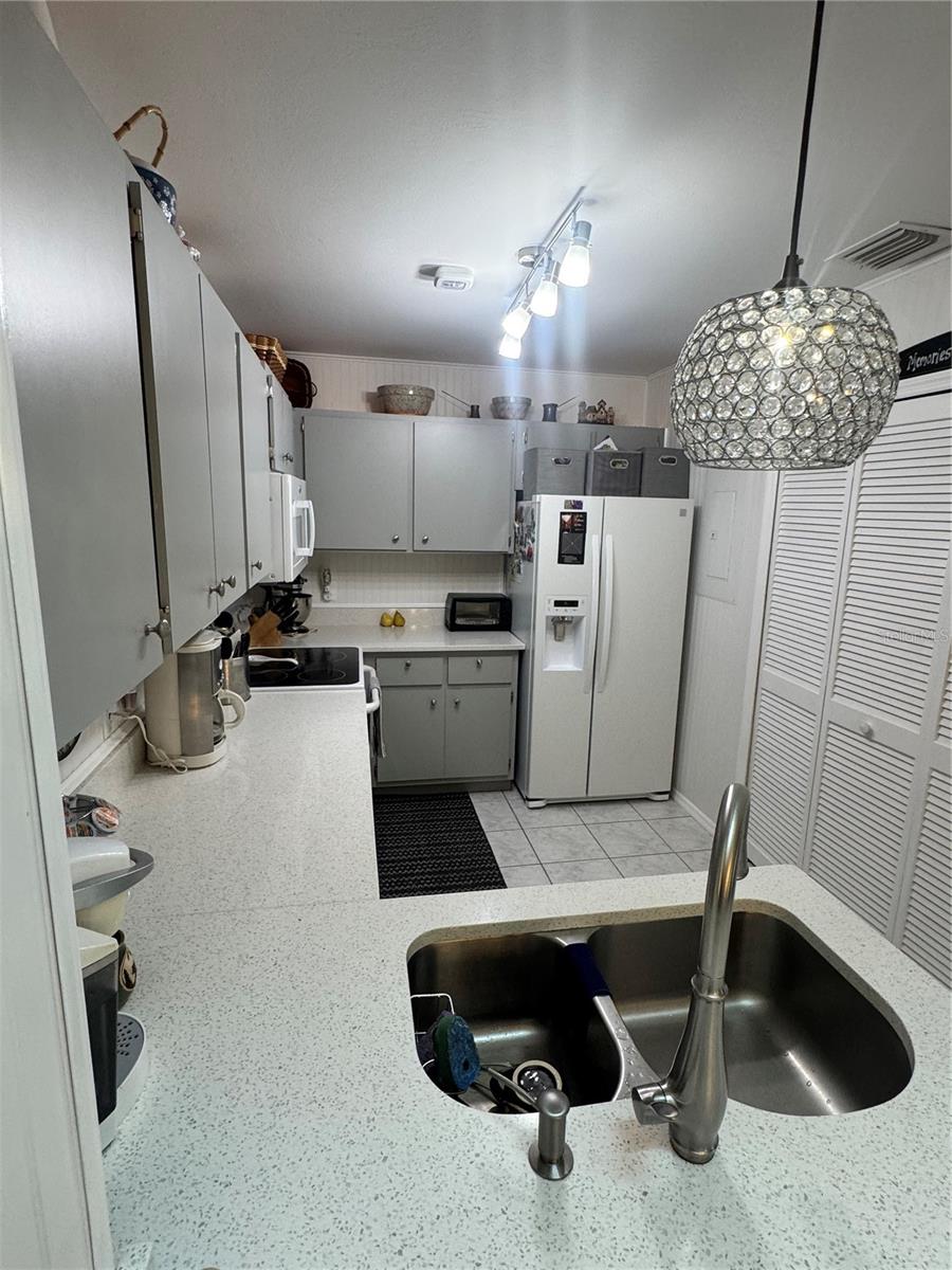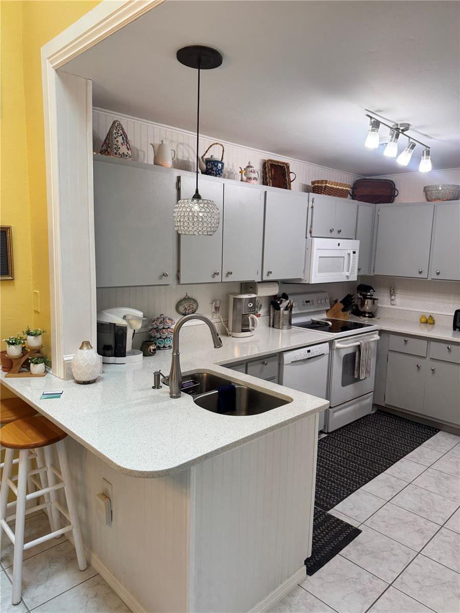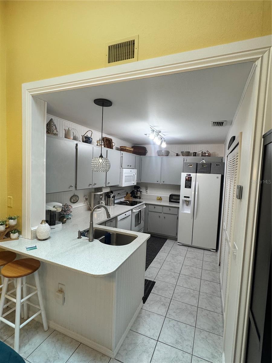 STUNNING 2/2 VILLA UPDATED BEAUTIULLY. NEW PAINT INSIDE, TILE FLOORS THROUGHOUT VILLA WITH HURRICANE IMPACT SLIDERS 3 SETS AS WELL AS WINDOWS, ALL NEW FIXTURES, NEW PLUMBING IN THE WHOLE HOUSE, QUARTZ COUNTERS IN KITCHEN AND BATHS, GLASS FRONT DOOR WITH ELECTRONIC LOCK. UPDATED WI-FI FIRE SYSTEM FOR KITCHEN FOR SMOKE OR EXTREME HEAT AND ATTIC, PLUS SMOKE DETECTOR WATER BUG IN WATER HEATER, WHEN ANYTHNG HAPPENS IT ALERTS YOUR MOBILE PHONE WHILE YOU ARE NOT HOME. WIFI-THERMOSTAT AS WELL, TO TURN YOUR AIR DOWN BEFORE ARRIVAL. NEW ROOF, SKYLIGHT AND ALL NEW SIDING. UPGRADED SHELVING IN ALL CLOSETS. PULL OUT KITCHEN CABNIETS. NEW FENCING IS ALREADY ORDERED AND WILL MATCH ALL PROPERTIES, COMING SOON.OWNERS TO PAY FOR FENCE. BOSCH DISHWASHER, SAMSUNG DRYER AND MAYTAG WASHER THIS UNIT ALSO HAS MAGNETIC DOORSTOPS, THESE OWNERS HAVE THOUGHT OF EVERYTHINNG, VILLA SHOWS LIKE A MODEL