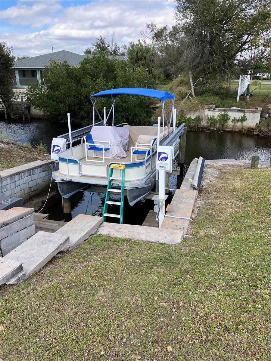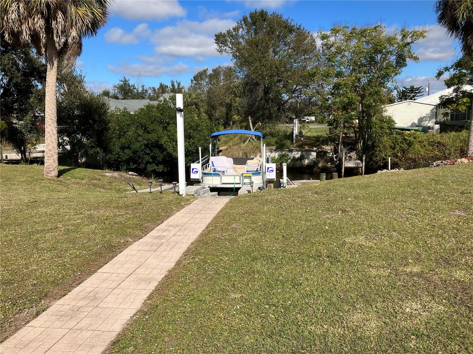 Turn key home on canal, Boat hoist, View sunsets on your 14x24 lanai overlooking Jim Long Lake, Double lot with 10x12 Guest house & 10x20 outbuilding, 22 Ft Pontoon in great shape & Golf Cart, Clubhouse, Park & boat launch, Great get away from cold weather or vacation rental, Excellent credit? Land contract considered