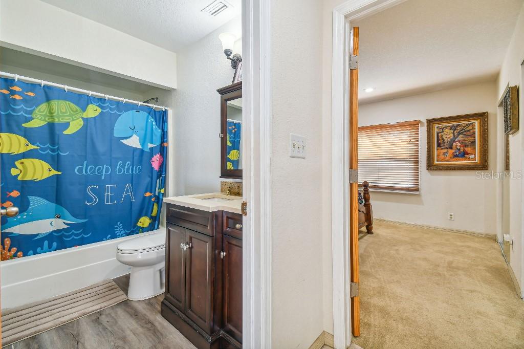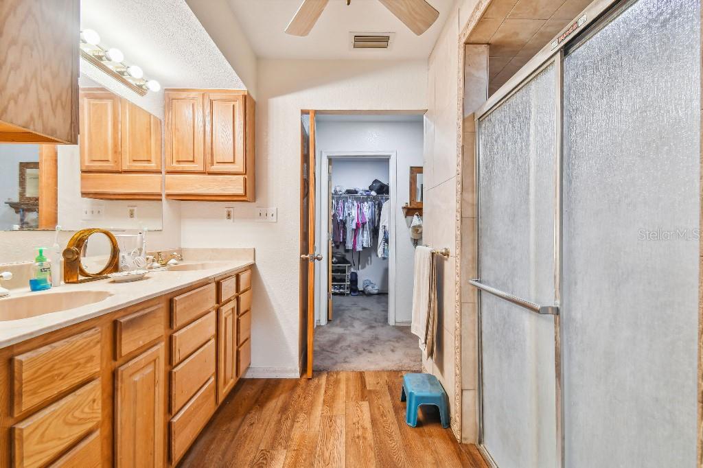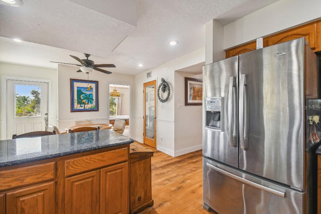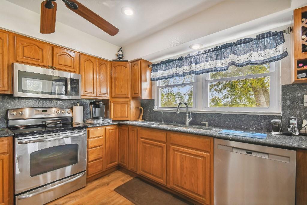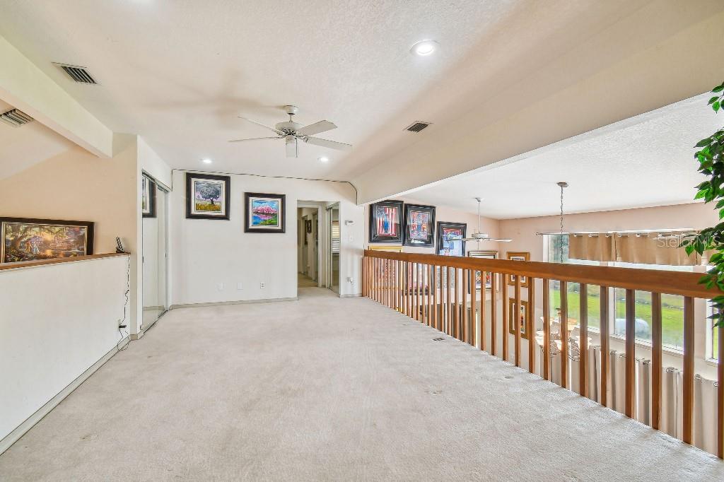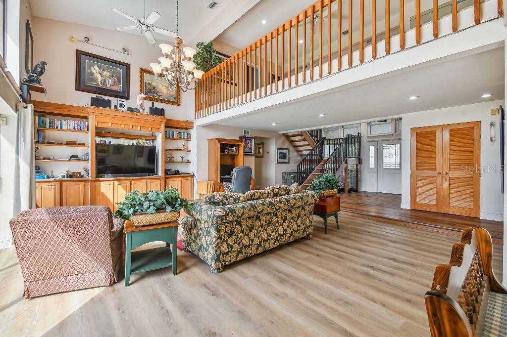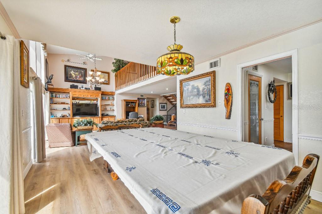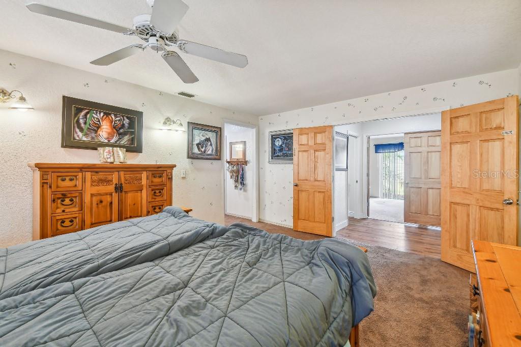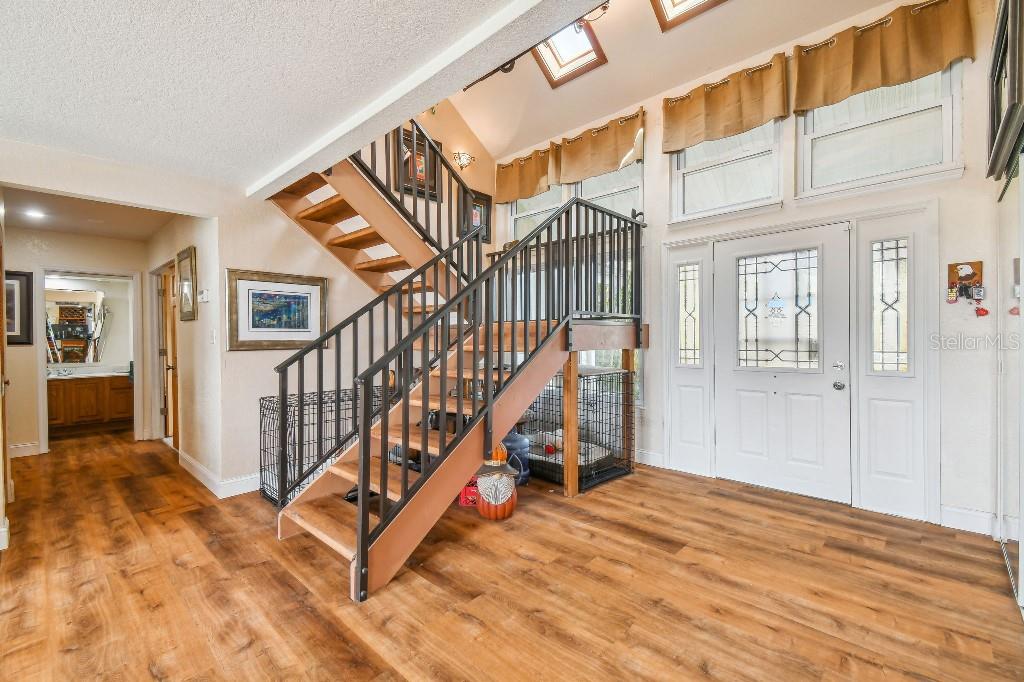 Welcome to country living on this 5 acres in the equestrian deed restricted community of Prairie Creek Park. This property features 3,308 sf of air conditioned living space with a heated bonus room that is an additional 480 sf off of the inground pool. This home offers many updates – recently resided with Hardie Board (12/23) has a 15 year color warranty and 30 year materials warranty, metal roof was repainted in 2022 and all new screws replaced (8/23), new LVP flooring in the living and dining rooms (10/23), kitchen, entry, hallway, bathrooms and laundry room have LVP as well. Kitchen has updated granite counter tops with hardwood cabinets that accentuate the stainless steel appliances. There is a large walk in pantry in the kitchen. The open living room dining room has abundant natural light coming into the home through five sliding glass doors and three oversized windows that lead to the vaulted ceiling. There are built in cabinets for your TV with shelves for books and collectibles. The master suite has a walk in closet, walk in shower dual sinks and dual toilets. A second bedroom with dual closets is on the main floor as well. The two other bedrooms are upstairs separated by a large loft that can be a game room, exercise room or anything else you want it to be. There is a full bathroom with tub upstairs. There is a large amount of the backyard fenced for peace of mind with young ones or pets to play in. A 2.5 car garage fits two vehicles nicely with room for toys and a workshop. The RV garage out front will fit a 40 ft RV and has power in the garage.
