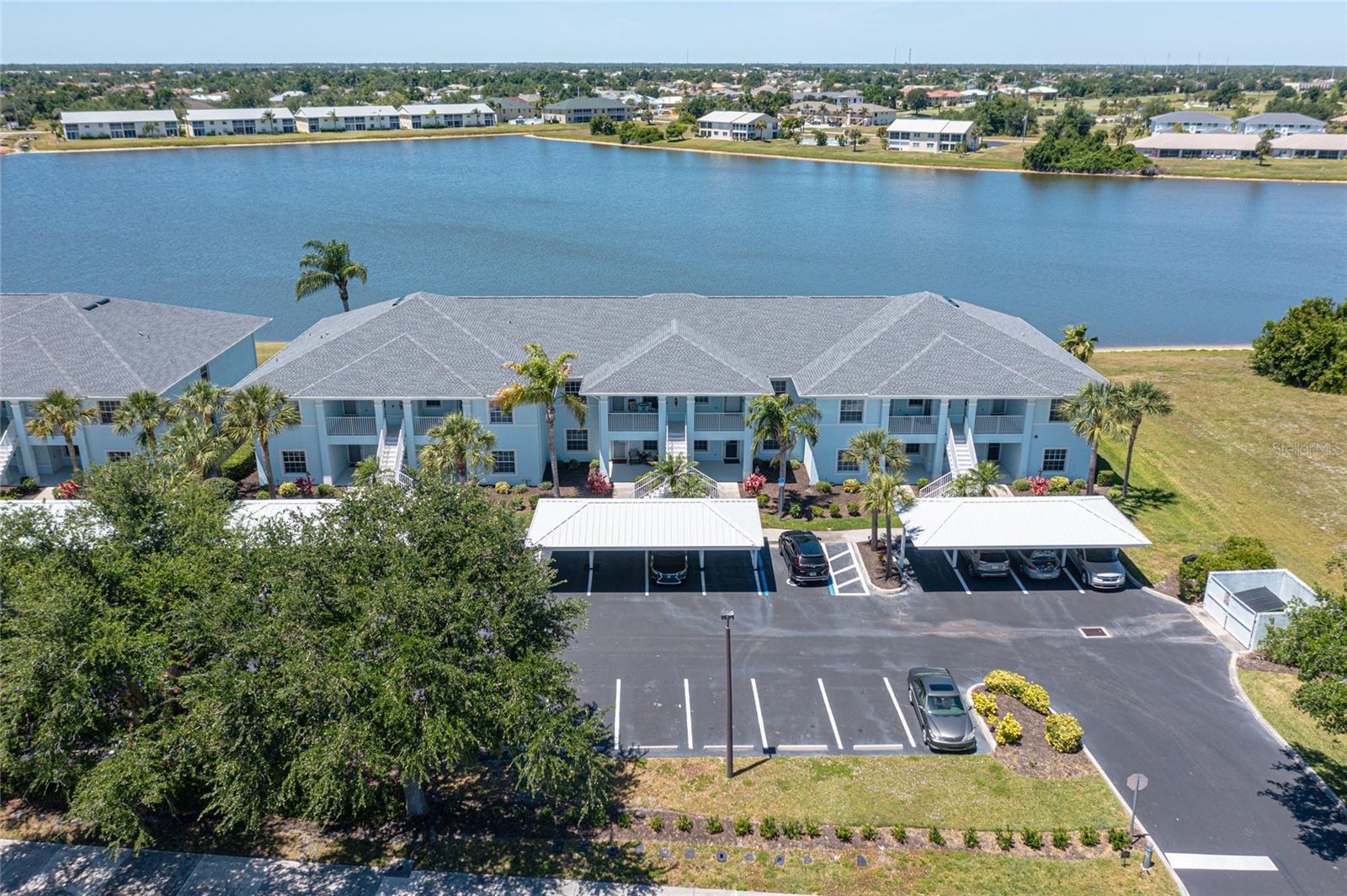 Adorably furnished, top floor, waterfront condominium in Deep Creek in Punta Gorda! The condo features a great open plan with plenty of natural light and ample living space! This unit comes with 2 bedrooms plus a bonus room that could function as an office or as an additional guest bedroom. The beautiful kitchen offers plenty of cabinets for storage, stainless steel appliances, pantry and a breakfast bar. In addition, the condo has two bathrooms, inside utility, storage room and covered parking. There are multiple upgrades throughout which include granite countertops, new kitchen cabinets, vinyl flooring , updated master shower, fresh paint, new air conditioning, new dishwasher, new microwave hood, new roof and a fancy automatic window shade in the living room. The screened lanai offers a spectacular view of Lake Rio where you will enjoy watching the beautiful sunsets and your morning coffee! This condo is moving-in ready! The property is conveniently located a short drive from shopping, golf courses, medical facilities, beaches and restaurants, I-75 and Fort Myers airport is just 45 minutes away. Call and make your appointment today to see this beautiful property and start living the Florida Lifestyle!!