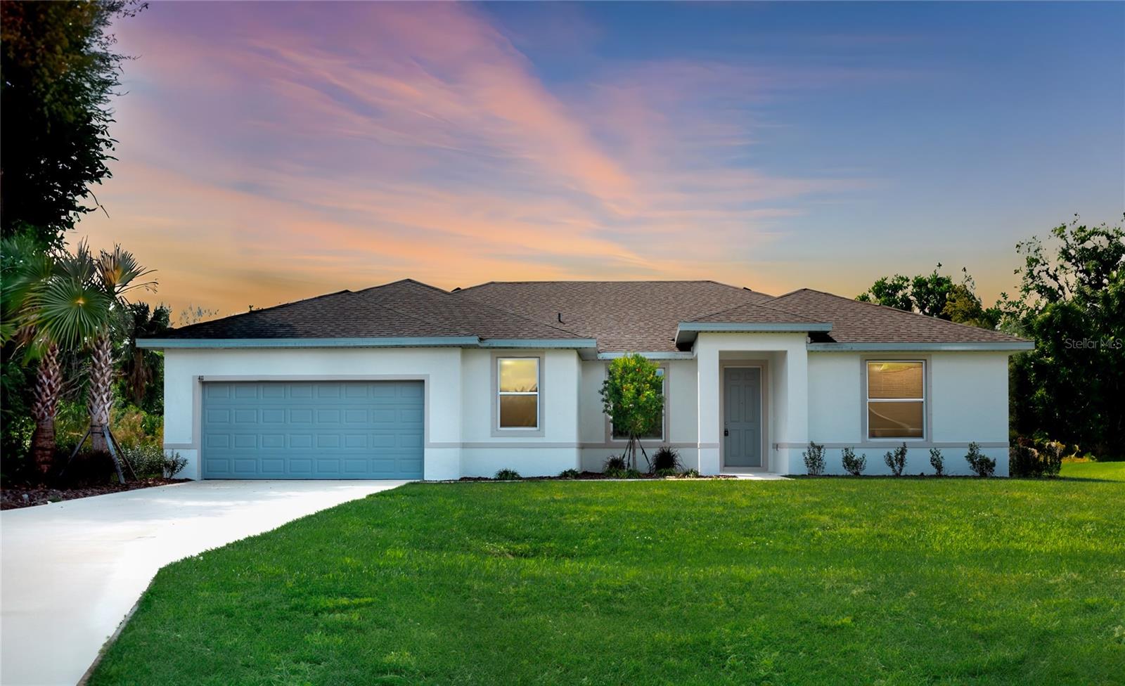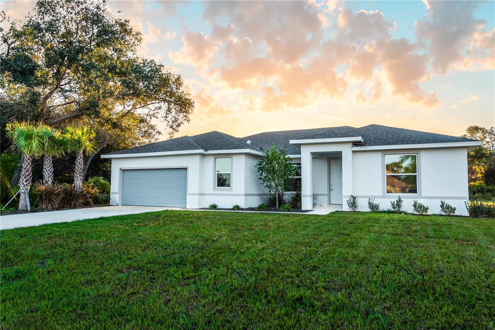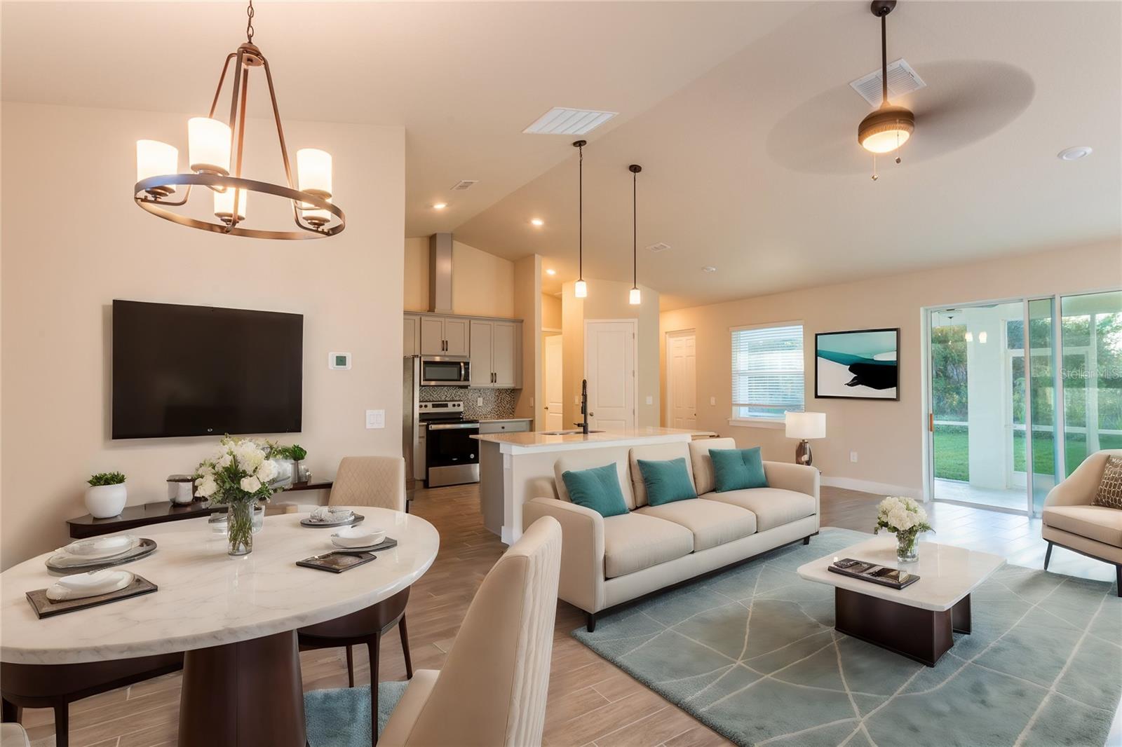 ***NEW CONSTRUCTION, NO WAIT, MOVE IN READY!*** (+$15,000 FLEX CASH incentive!) Elevate your lifestyle with the opulence of the Boca floorplan presented by Carpenter Homes—a masterpiece within the Signature Series, certified by the Florida Green Building Coalition (FGBC). This home features 3 bedrooms plus an oversized office/flex room and 2 full bathrooms. This dream home is designed and built to immerse you in luxury. As you enter, a beautiful kitchen welcomes you with an expansive, oversized island that seamlessly flows into the living and dining area. The finesse of soft-close, Painted Shale 42" cabinets, Anatolia Bliss Glass & Stone 5/8"x5/8" mosaic tile backsplash, and upgraded Lyra quartz countertops add a functional touch of luxury to the kitchen. More kitchen upgrades include a Moen Align matte black kitchen faucet, garbage disposal, and sleek stainless steel energy efficient appliances. This home exudes sophistication with a vaulted ceiling and sliding glass doors that unveil a spacious, large lanai, creating an indoor-outdoor haven. Additionally, Carpenter Homes provides an upgraded bronze lighting package, including chandeliers over the breakfast nook and dining room, pendants over the kitchen island, and vanity fixtures in both bathrooms accenting the overall lighting design. Bronze finish ceiling fans in each bedroom, as well as the great room, helps to circulate air flow and keep you cool in the Florida weather. Complimenting the expansive living area are Glen Arbor Grey 6x26 ceramic plank flooring. We continue our dedication to excellence to our clients with high quality blinds for the windows for privacy and to help keep the Florida sun out. The Owner's suite is a sanctuary of indulgence, showcasing dual sinks, impeccably tiled SoHo Canvas White 3x6 walls in the upgraded glass enclosed shower, and two large walk-in closets! The home boasts SoHo Cement Chic 3x6 upgraded tiled walls in in the second bath/shower, a Lyra quartz vanity top, and Moen Genta LX chrome faucets and shower/tub trim kits. The ampleness of this home continues with a utility room that features its own wash basin, and thoughtful additions such as energy-efficient R-4.1 insulation on concrete exterior walls, Taexx tubes for pest control, and fabric hurricane shutters for every window. The Florida friendly landscaped yard is complemented by an irrigation system with a rain sensor to help maximize efficiency. The expansive 2.5-car garage, complete with electronic door opener and 2 remotes, not only provides ample space for your everyday needs but also ensures the utmost convenience and versatility for all your storage and parking requirements. Step into a world where extravagance meets eco-conscious living—your forever home awaits you, a testament to timeless elegance and modern sustainability. Available to view anytime!