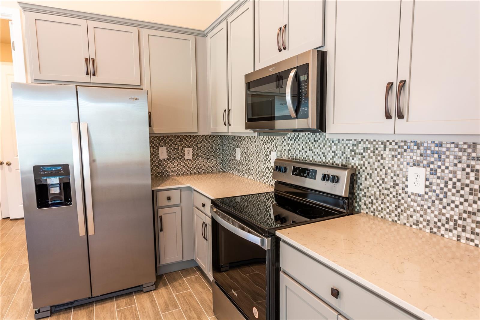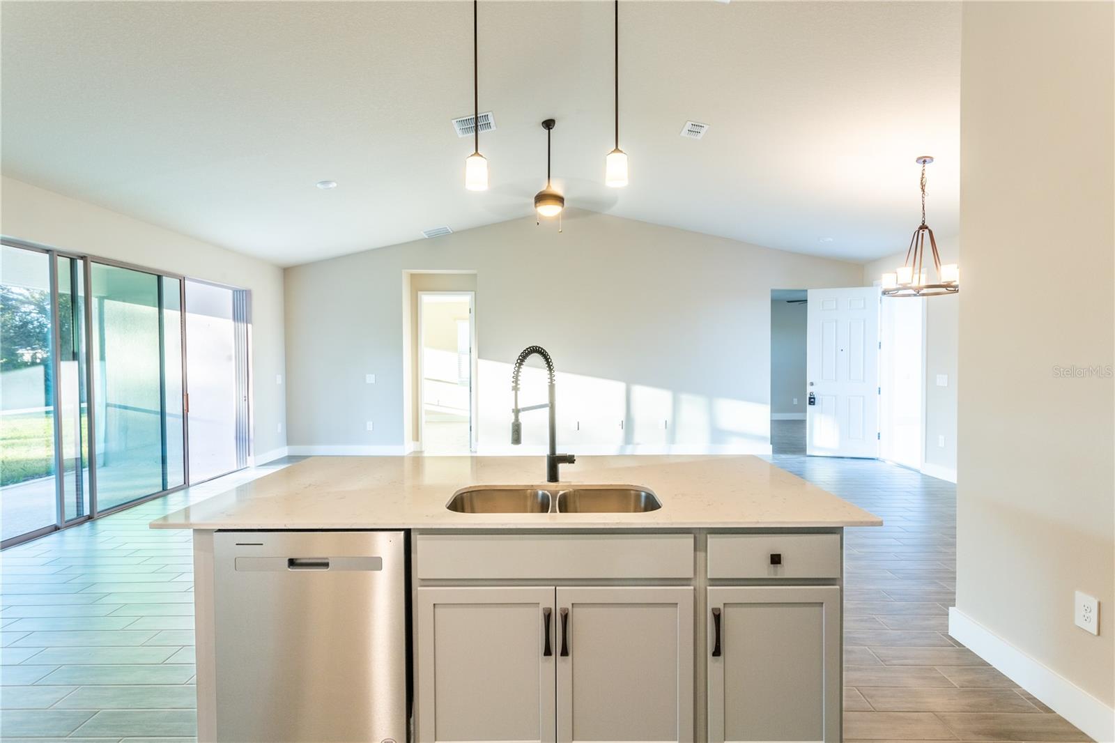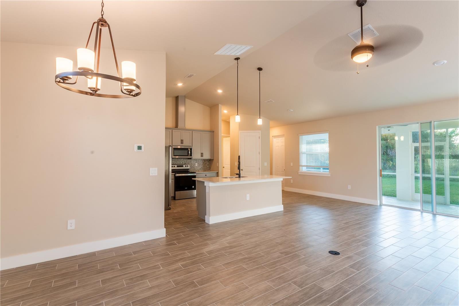 ***NEW CONSTRUCTION, NO WAIT, MOVE IN READY!*** (+$15,000 FLEX CASH incentive!) Elevate your lifestyle with the opulence of the Boca floorplan presented by Carpenter Homes—a masterpiece within the Signature Series, certified by the Florida Green Building Coalition (FGBC). This home features 3 bedrooms plus an oversized office/flex room and 2 full bathrooms. This dream home is designed and built to immerse you in luxury. As you enter, a beautiful kitchen welcomes you with an expansive, oversized island that seamlessly flows into the living and dining area. The finesse of soft-close, Painted Shale 42" cabinets, Anatolia Bliss Glass & Stone 5/8"x5/8" mosaic tile backsplash, and upgraded Lyra quartz countertops add a functional touch of luxury to the kitchen. More kitchen upgrades include a Moen Align matte black kitchen faucet, garbage disposal, and sleek stainless steel energy efficient appliances. This home exudes sophistication with a vaulted ceiling and sliding glass doors that unveil a spacious, large lanai, creating an indoor-outdoor haven. Additionally, Carpenter Homes provides an upgraded bronze lighting package, including chandeliers over the breakfast nook and dining room, pendants over the kitchen island, and vanity fixtures in both bathrooms accenting the overall lighting design. Bronze finish ceiling fans in each bedroom, as well as the great room, helps to circulate air flow and keep you cool in the Florida weather. Complimenting the expansive living area are Glen Arbor Grey 6x26 ceramic plank flooring. We continue our dedication to excellence to our clients with high quality blinds for the windows for privacy and to help keep the Florida sun out. The Owner's suite is a sanctuary of indulgence, showcasing dual sinks, impeccably tiled SoHo Canvas White 3x6 walls in the upgraded glass enclosed shower, and two large walk-in closets! The home boasts SoHo Cement Chic 3x6 upgraded tiled walls in in the second bath/shower, a Lyra quartz vanity top, and Moen Genta LX chrome faucets and shower/tub trim kits. The ampleness of this home continues with a utility room that features its own wash basin, and thoughtful additions such as energy-efficient R-4.1 insulation on concrete exterior walls, Taexx tubes for pest control, and fabric hurricane shutters for every window. The Florida friendly landscaped yard is complemented by an irrigation system with a rain sensor to help maximize efficiency. The expansive 2.5-car garage, complete with electronic door opener and 2 remotes, not only provides ample space for your everyday needs but also ensures the utmost convenience and versatility for all your storage and parking requirements. Step into a world where extravagance meets eco-conscious living—your forever home awaits you, a testament to timeless elegance and modern sustainability. Available to view anytime!